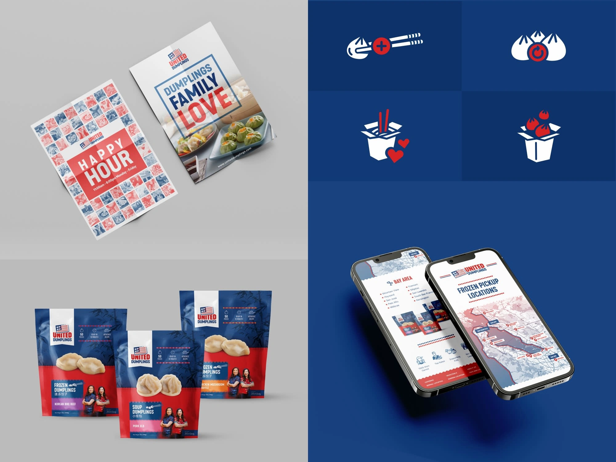 Branding developments for new Chinese restaurants in San Fransisco. Designs include logo, packaging, promotional material print and digital, menus, and more..