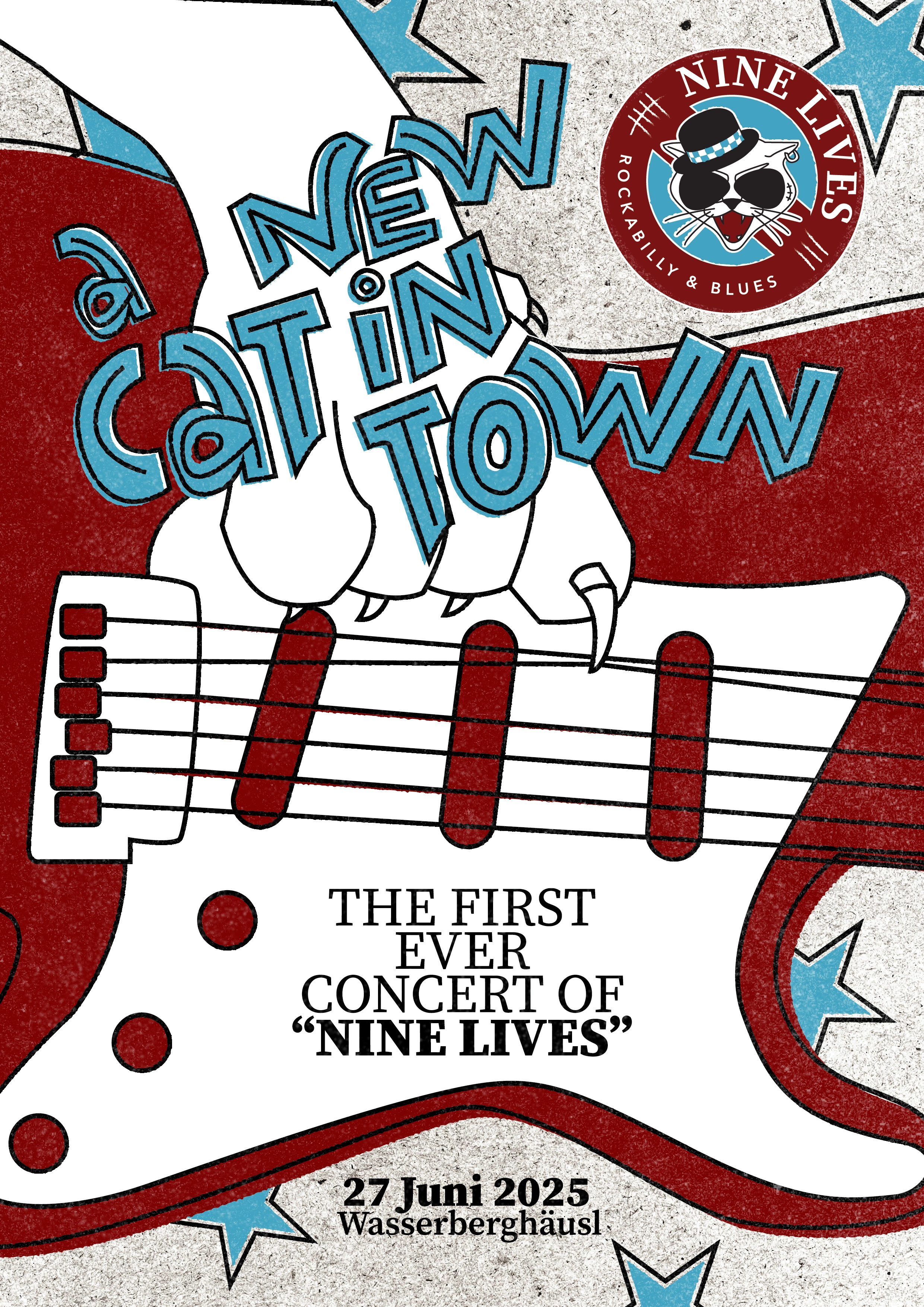 Hand-drawn illustration, edited and coloured digitally for a rockabilly band in Germany.