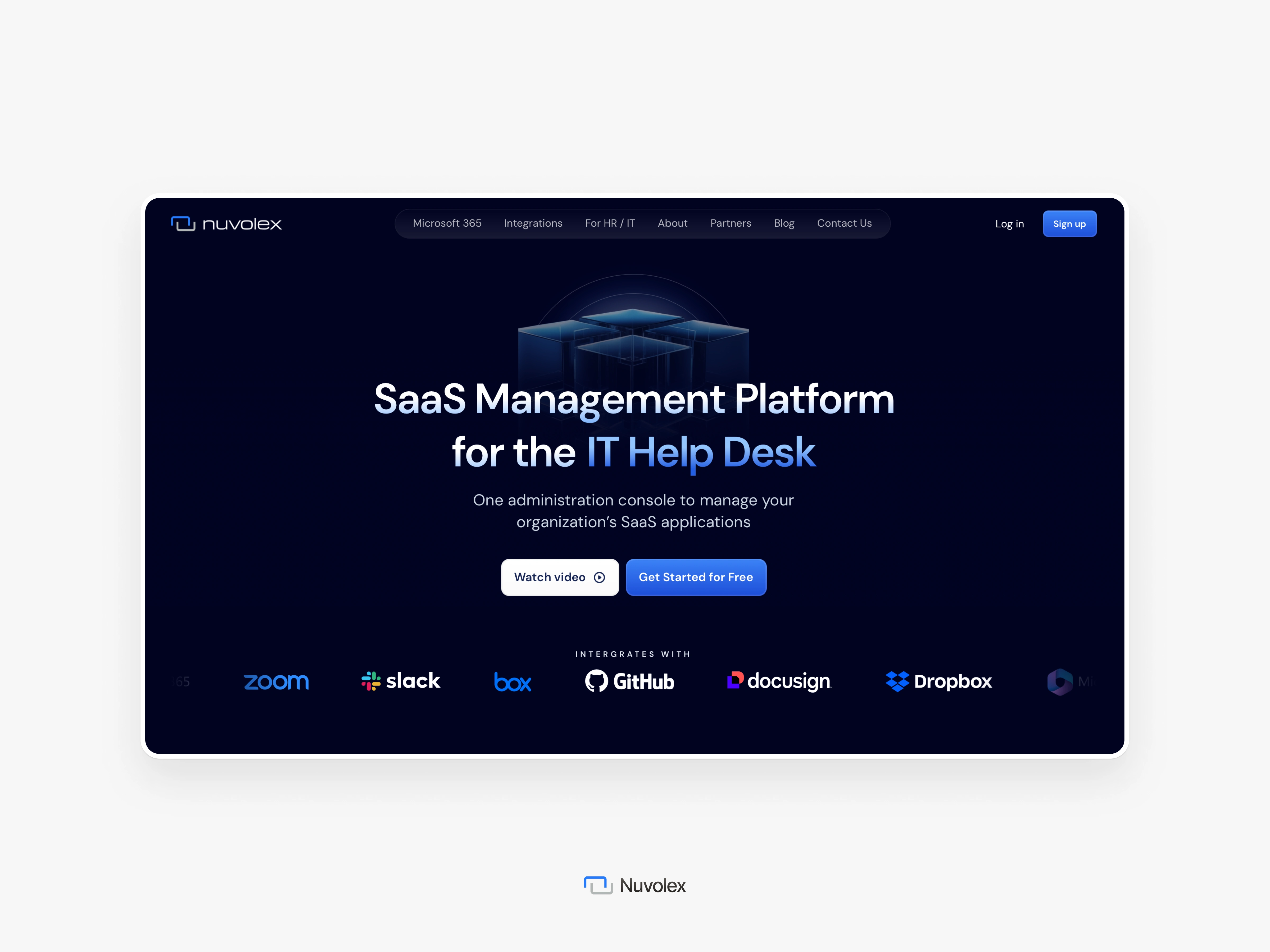 Framer design and development for SaaS management platform Nuvolex, helping IT teams manage their users with onboard/offboarding.