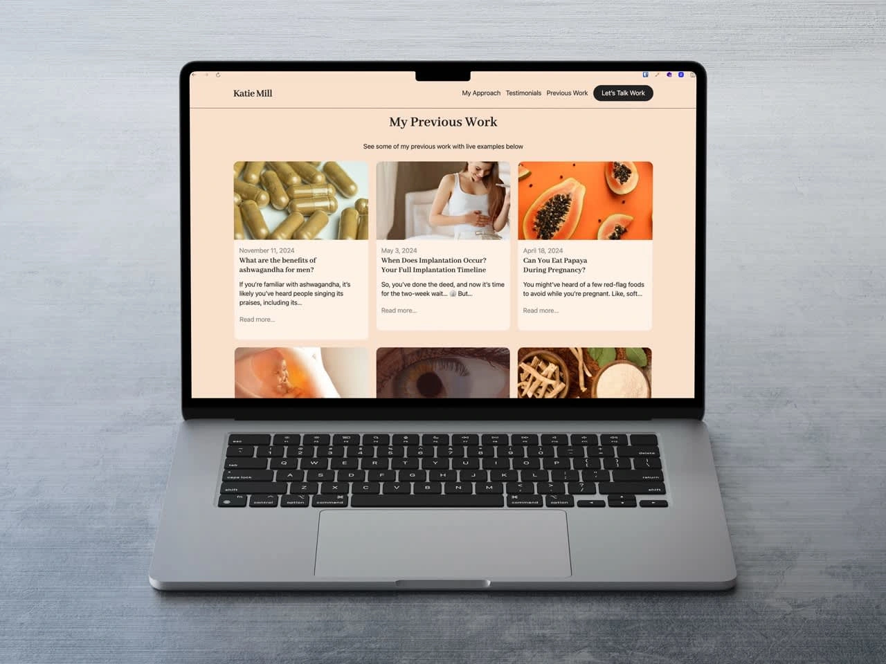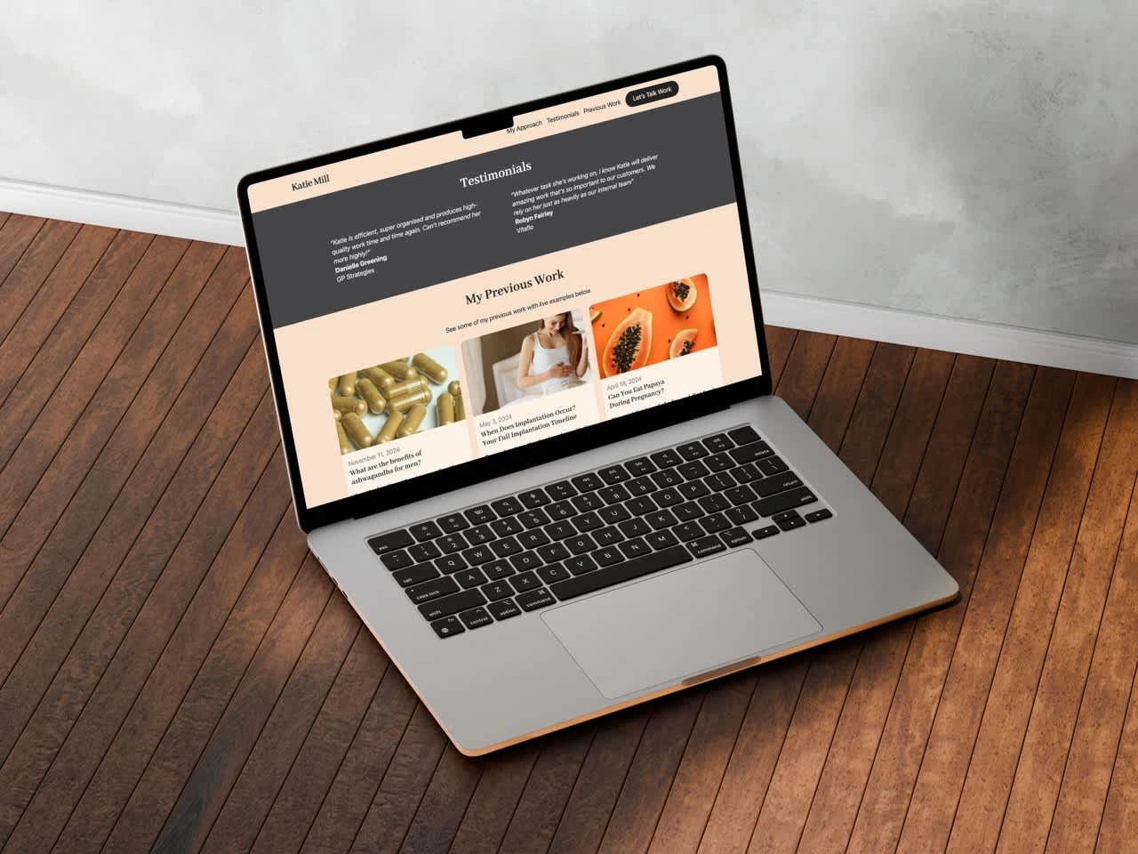 The final site was a winner! Katie was very happy with the site and, after handing it over and providing training, was able to update her blogs and site content herself without needing my help anymore.