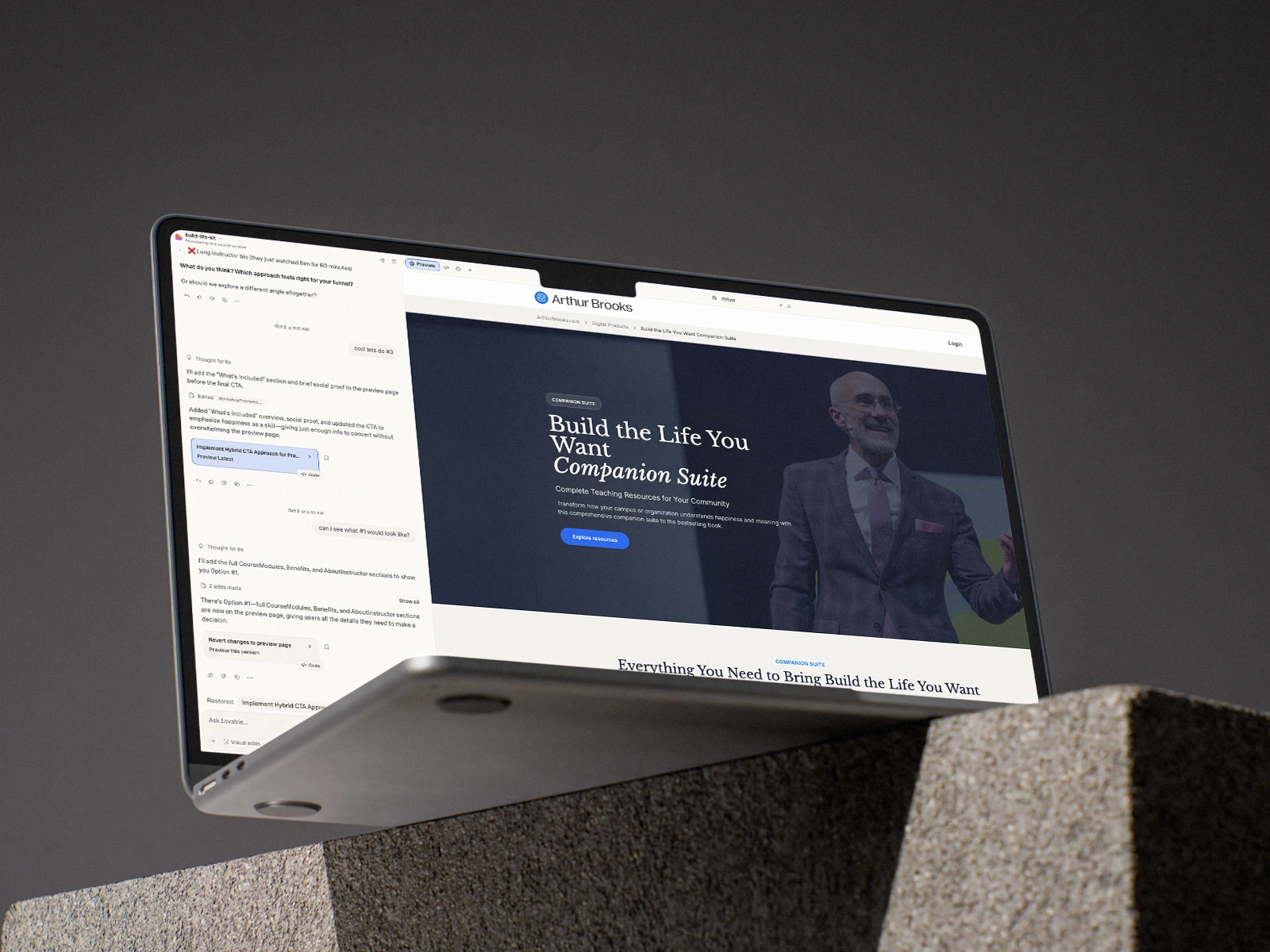 To give the course a distinct, cinematic first impression, I used Flora to generate a custom hero image tailored to the client’s updated brand.