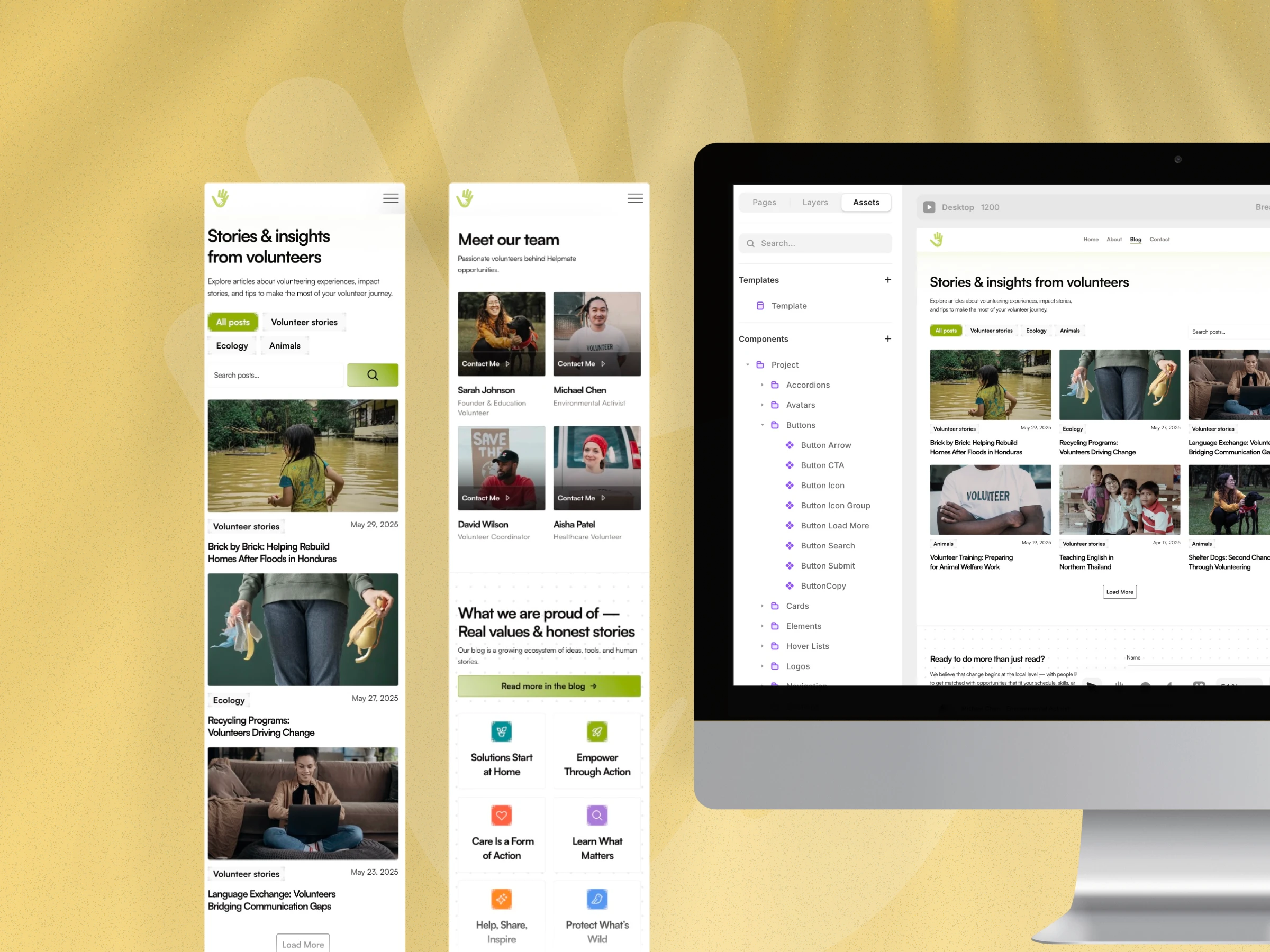 Helpmate — responsive Framer template designed specifically for volunteer organizations, community projects, and nonprofit initiatives.