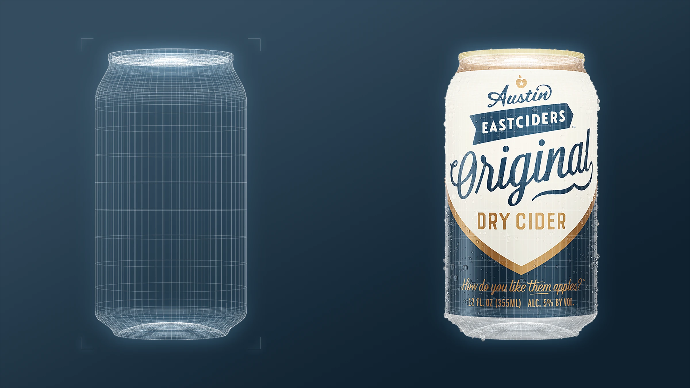 I created 3D product renders of different varieties of cider cans for Austin Eastciders, including modeling, lighting, and retouching.