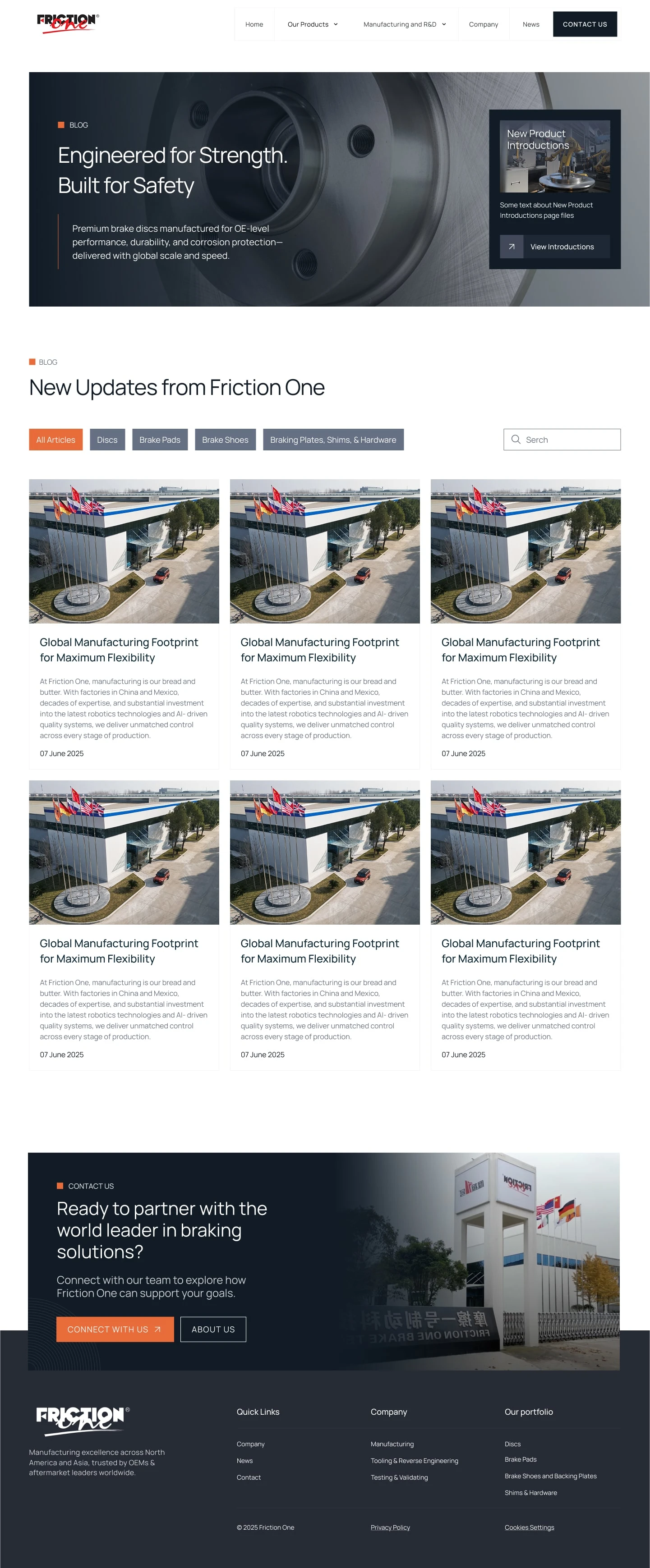 Redesigned and rebuilt a manufacturing company’s website using Webflow, focusing on modern design, improved CMS integration for Brake Pads, Discs & Shoes.