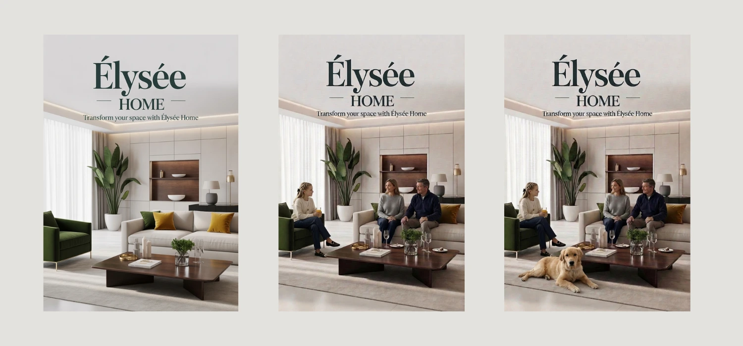 This project showcases a 100% AI-generated marketing campaign for Élysée Home, a premium interior and furniture brand. By utilising advanced generative AI, I developed a cohesive brand identity that combines high-end industrial design with lifestyle "hero" imagery, evoking a sense of warmth and modern luxury without a physical showroom or photoshoot.