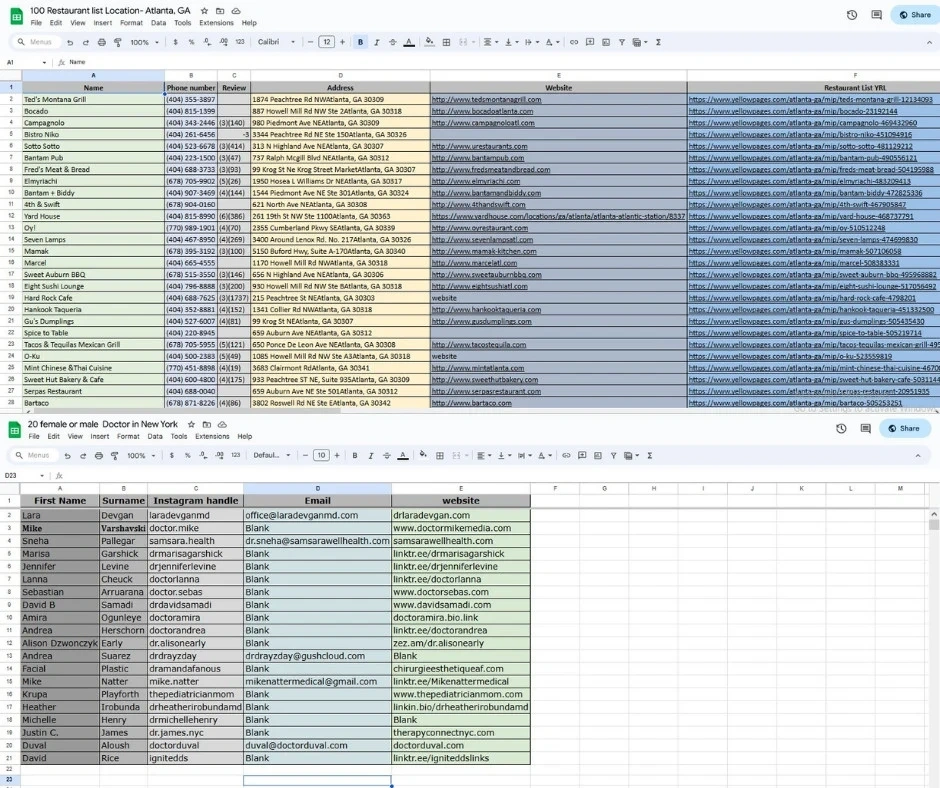 I provided comprehensive data compilation and lead generation services, creating highly organized and verified datasets tailored to distinct client needs.