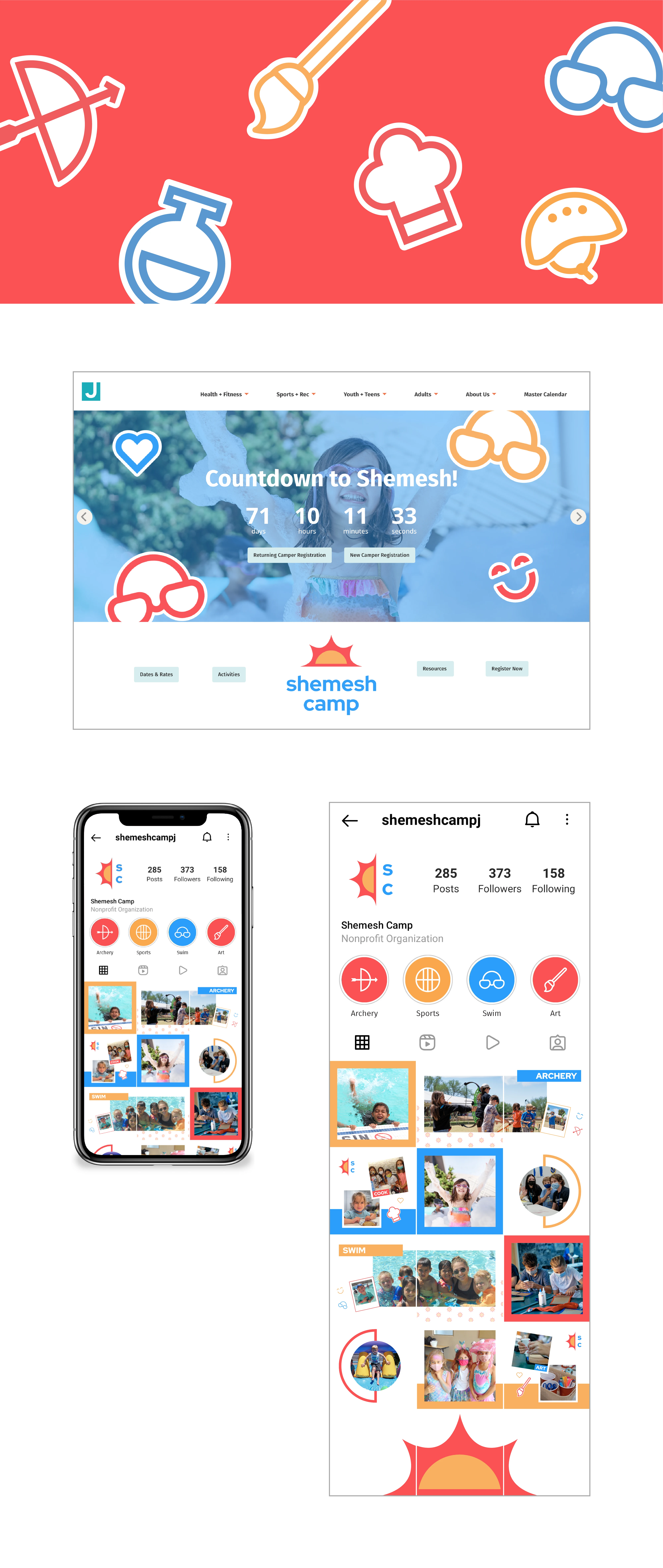 The J’s Shemesh Camp provides a safe summer home where campers are encouraged to try new activities, gain new skills, build self-confidence, have limitless laughs and build forever friendships. As a Senior Graphic Designer at The J, I proposed the opportunity to rebrand this summer camp. The state of the Shemesh Camp brand no longer meet the overall brand standards of The J, it had an outdated logo and needed a refresh in order to go after a new audience.