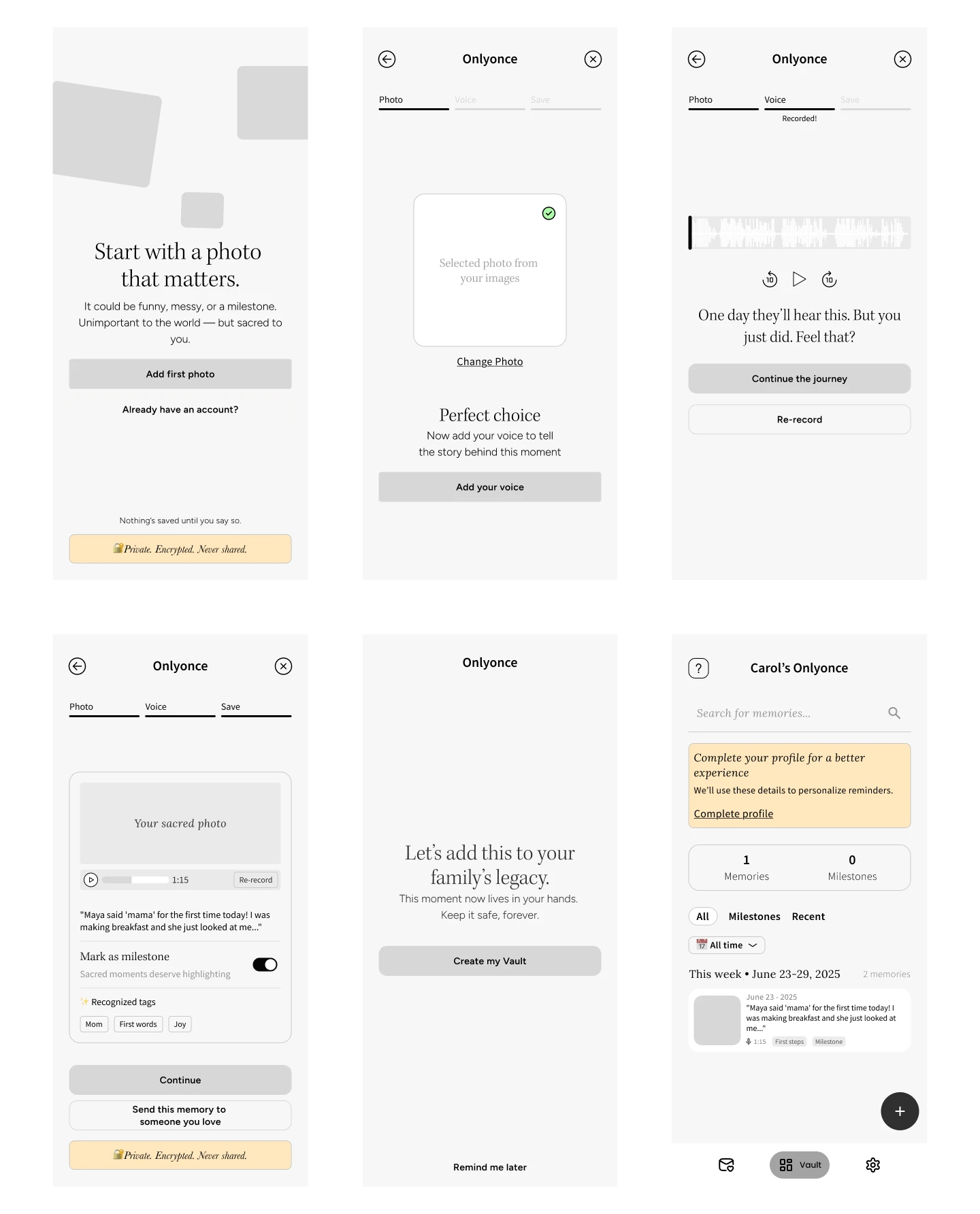 Lead designer for OnlyOnce, a voice-first web app for preserving life's fleeting moments. Currently focused on families, designed for any meaningful memory.