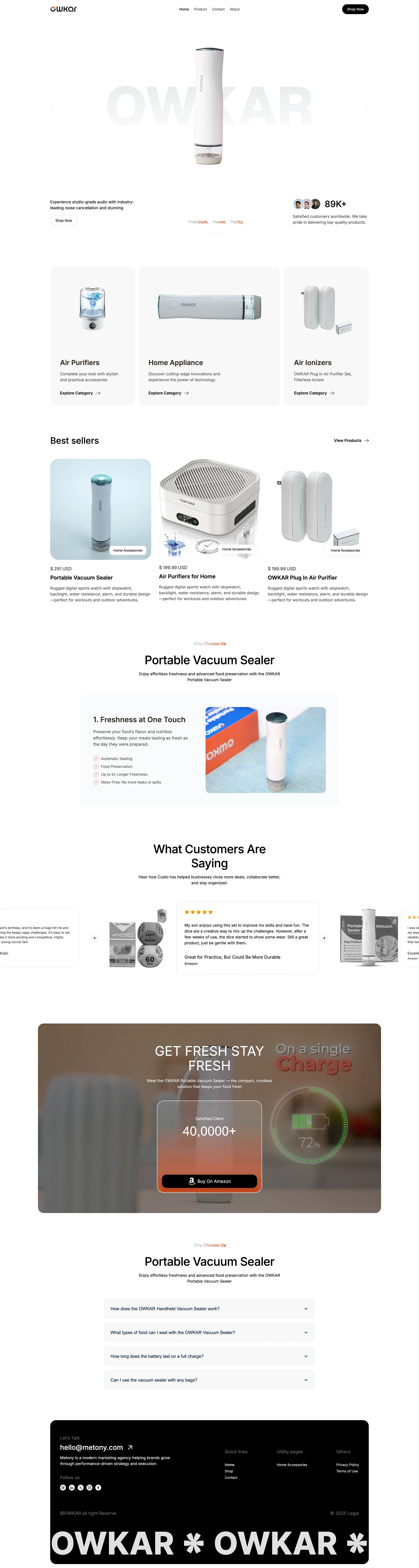 Worked with the client to craft a sleek e-commerce landing experience that showcases product categories with bold visuals and engaging animations. The goal was to deliver a premium, brand-driven page that aligns with OWKAR’s identity and drives conversions.