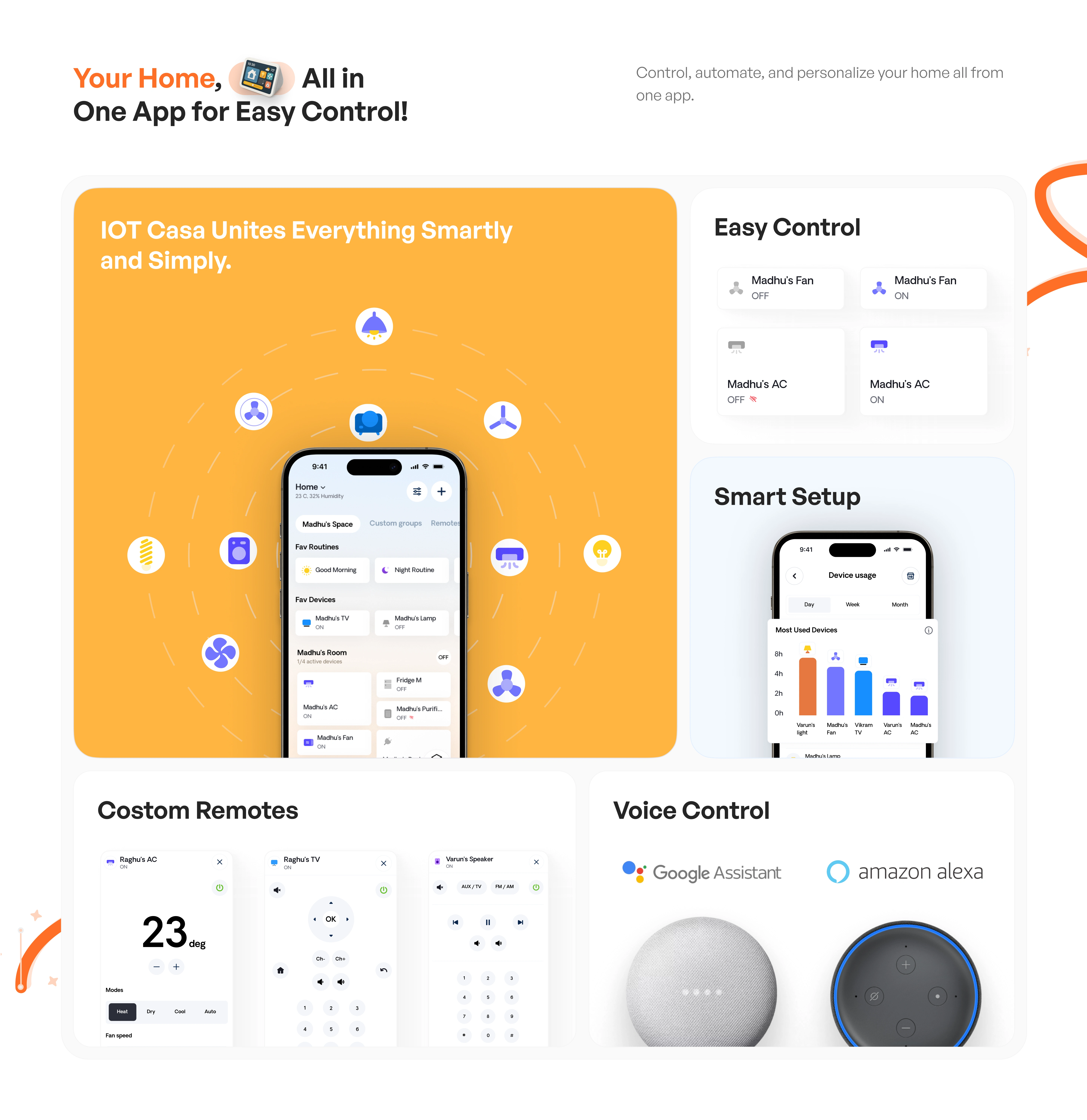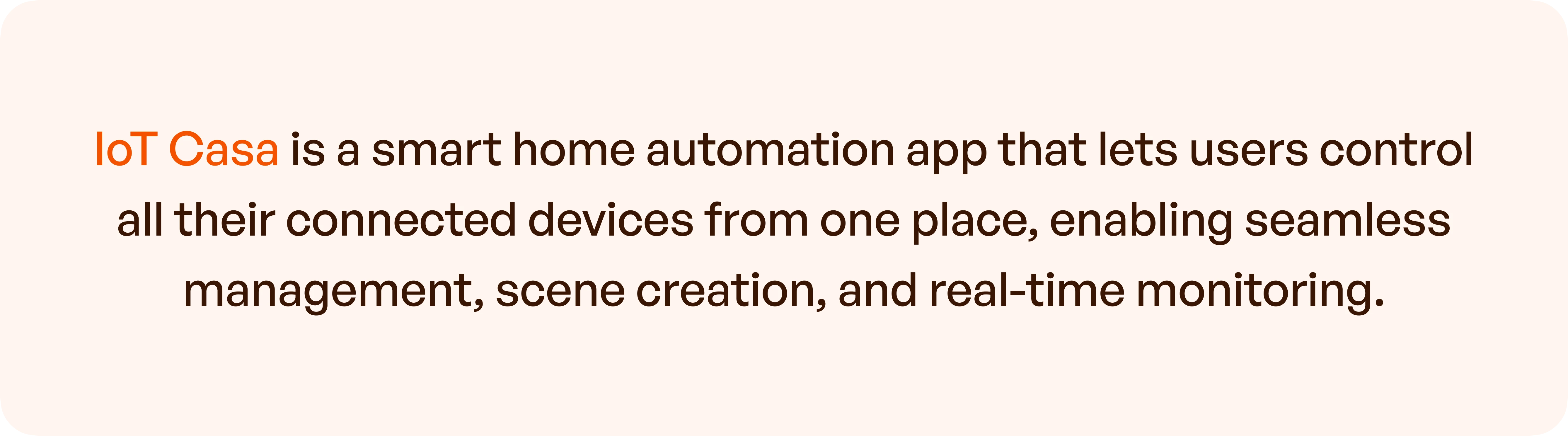 IoT Casa is a smart home automation app that allows users to control all their connected devices from one place, enabling seamless management and monitoring.