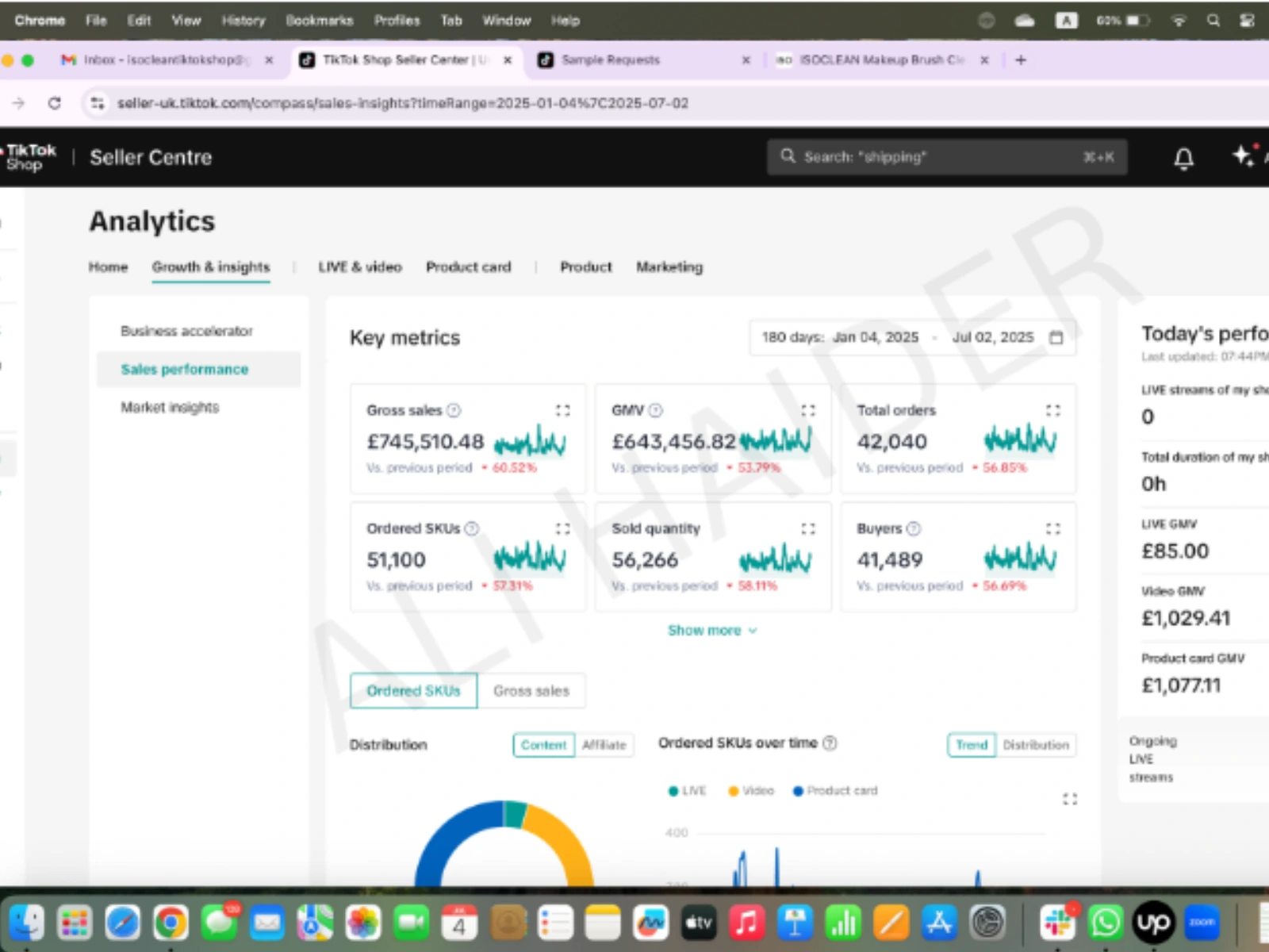 Achieved £643K GMV & 42K+ orders in 180 days by managing TikTok Shop sales, affiliate growth & influencer campaigns to scale eCommerce revenue.