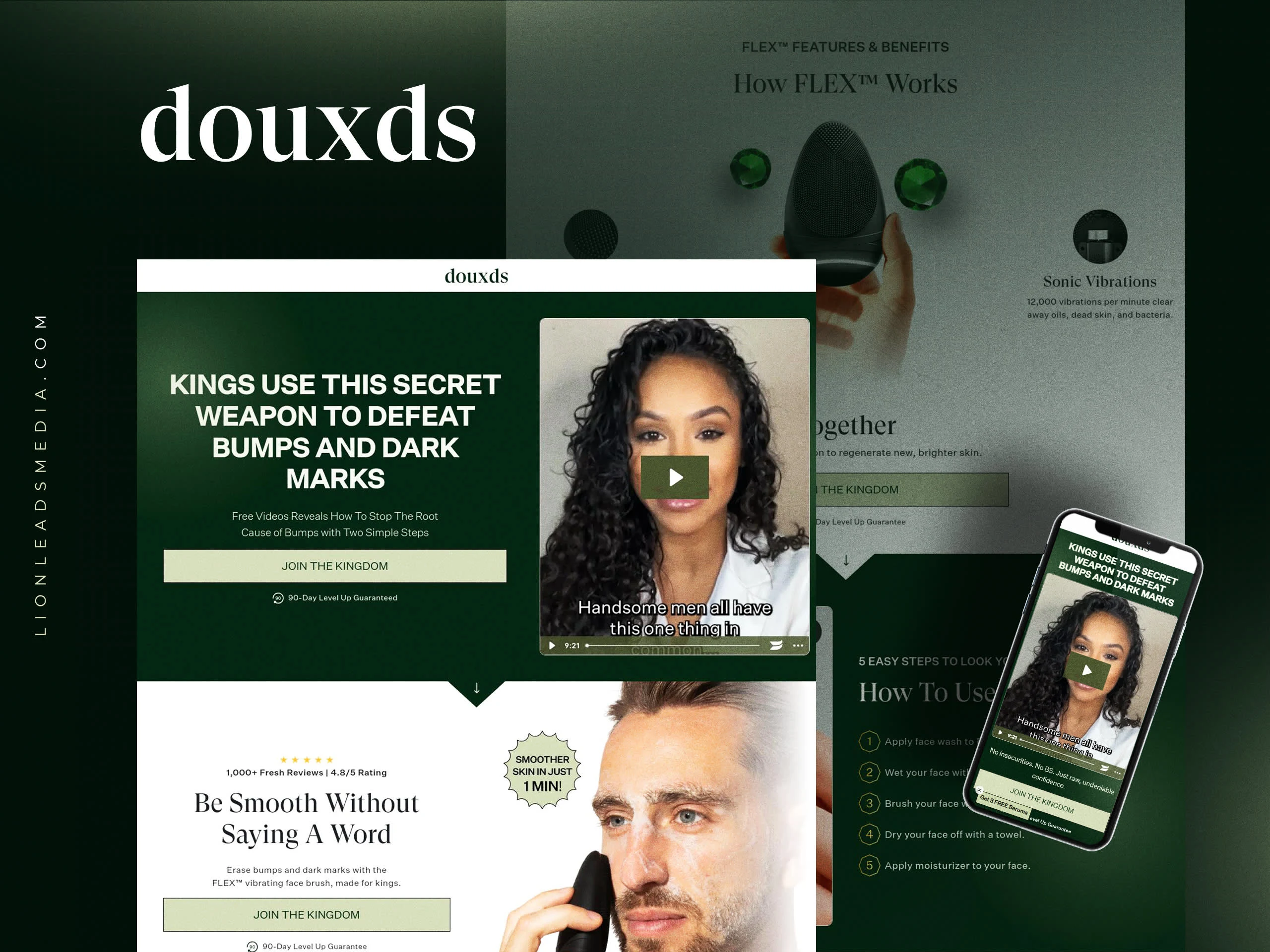 Complete marketing funnel design and development for Douxds' flagship FLEX™ skincare product that generated $1M USD in sales within the first 8 months.