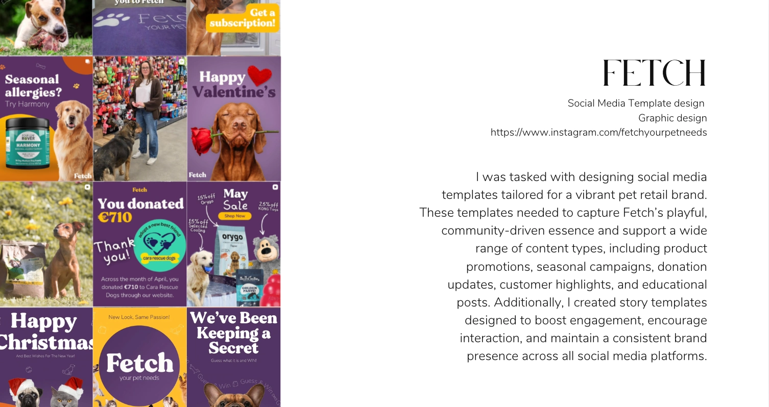 Fetch Your Pet Needs required a scalable social media design system to support ongoing campaigns, product promotions, and community content.