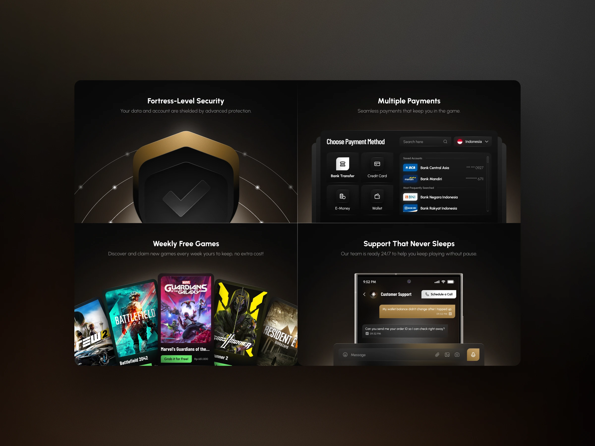 Modular "Bento" components for the PlayMuch website. Organizes complex gaming data (trends, user stats) into clear, flexible, and consistent visual blocks.