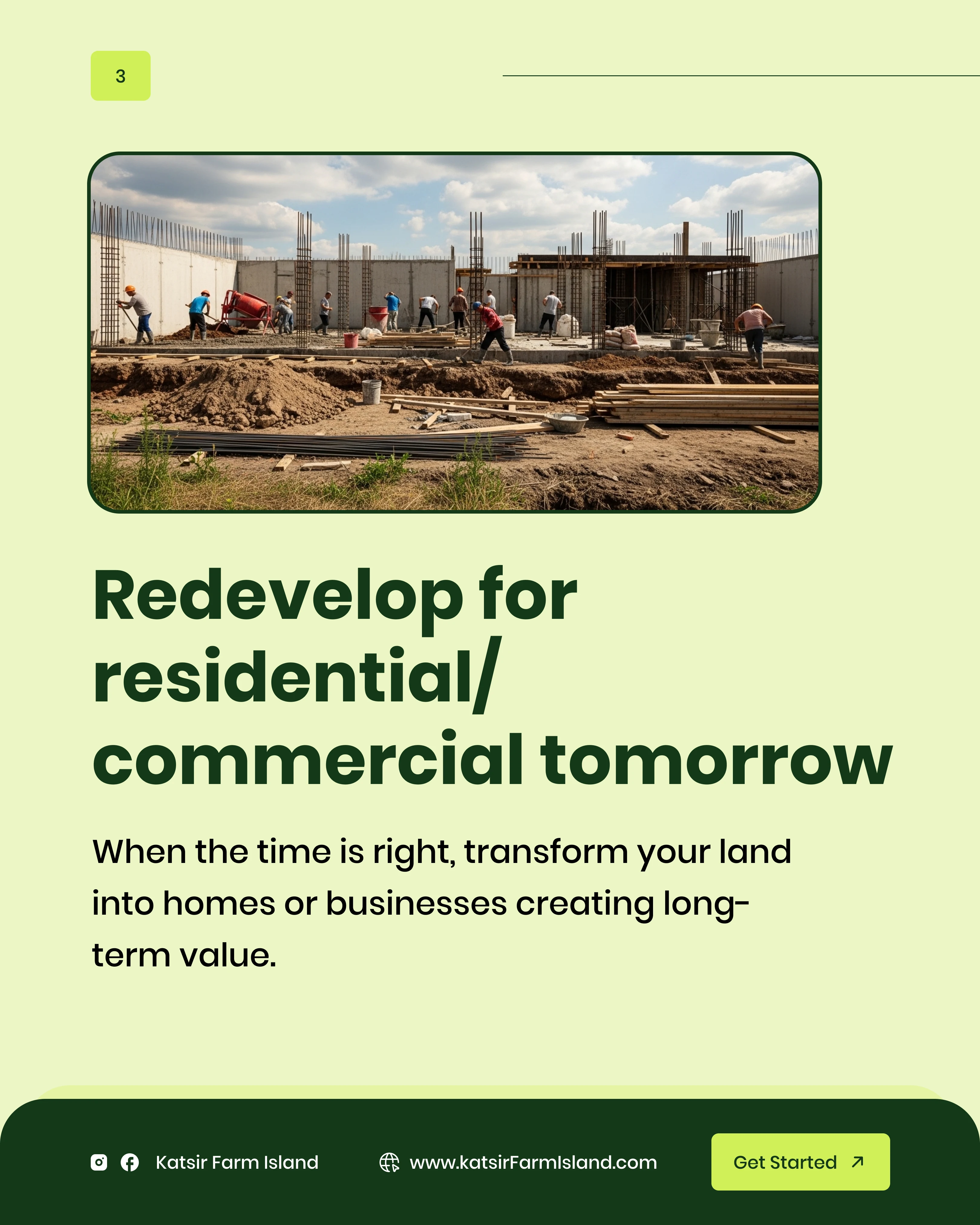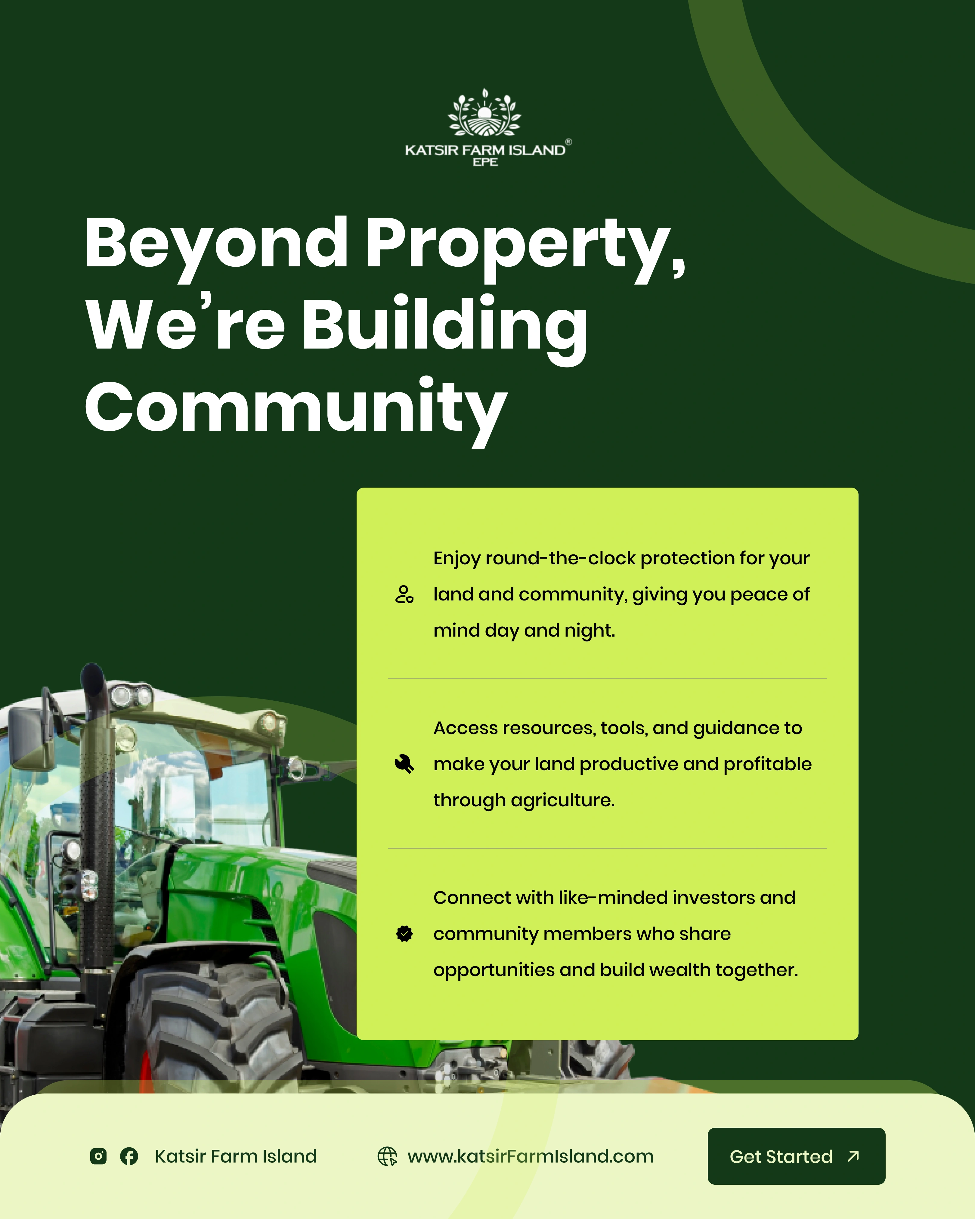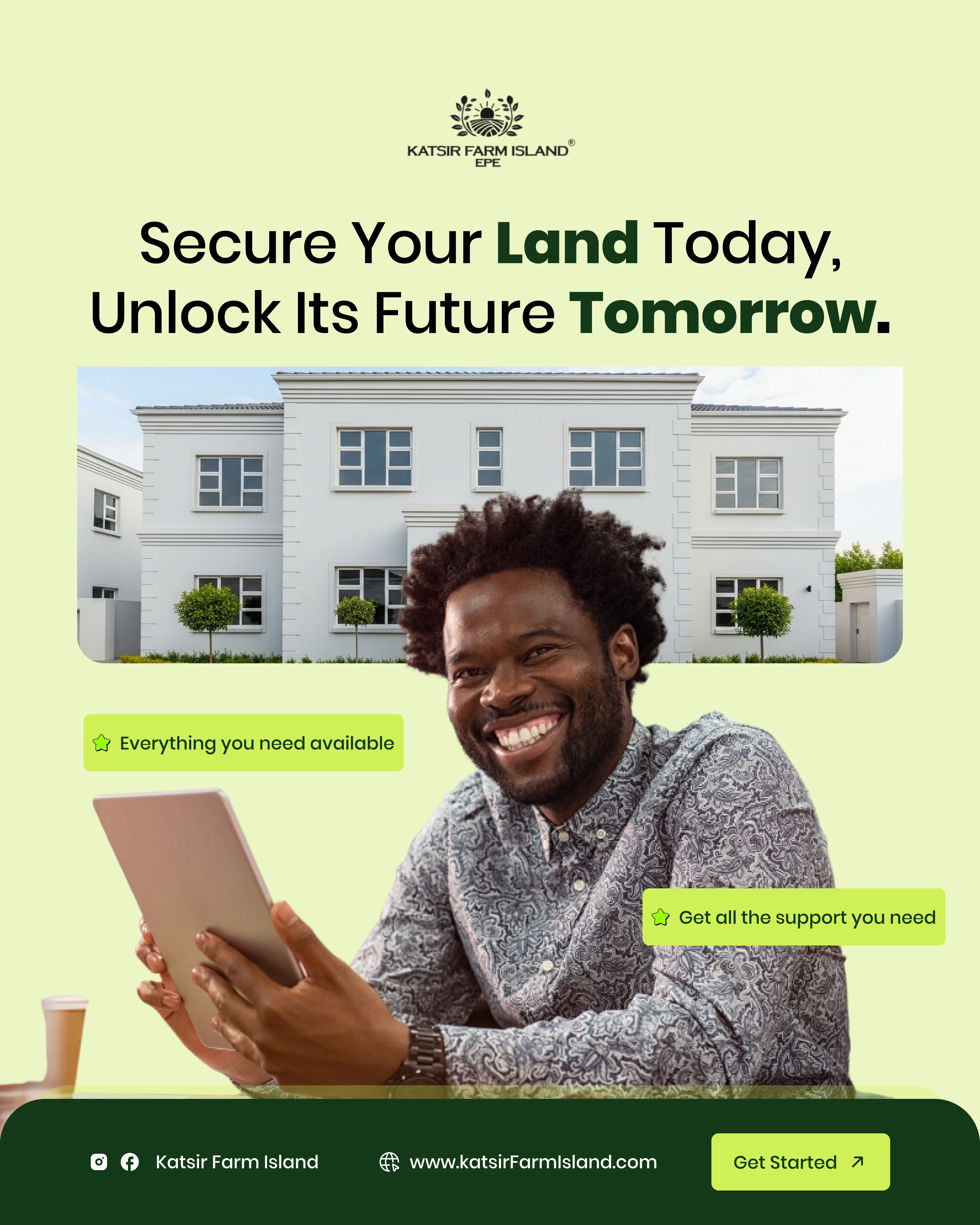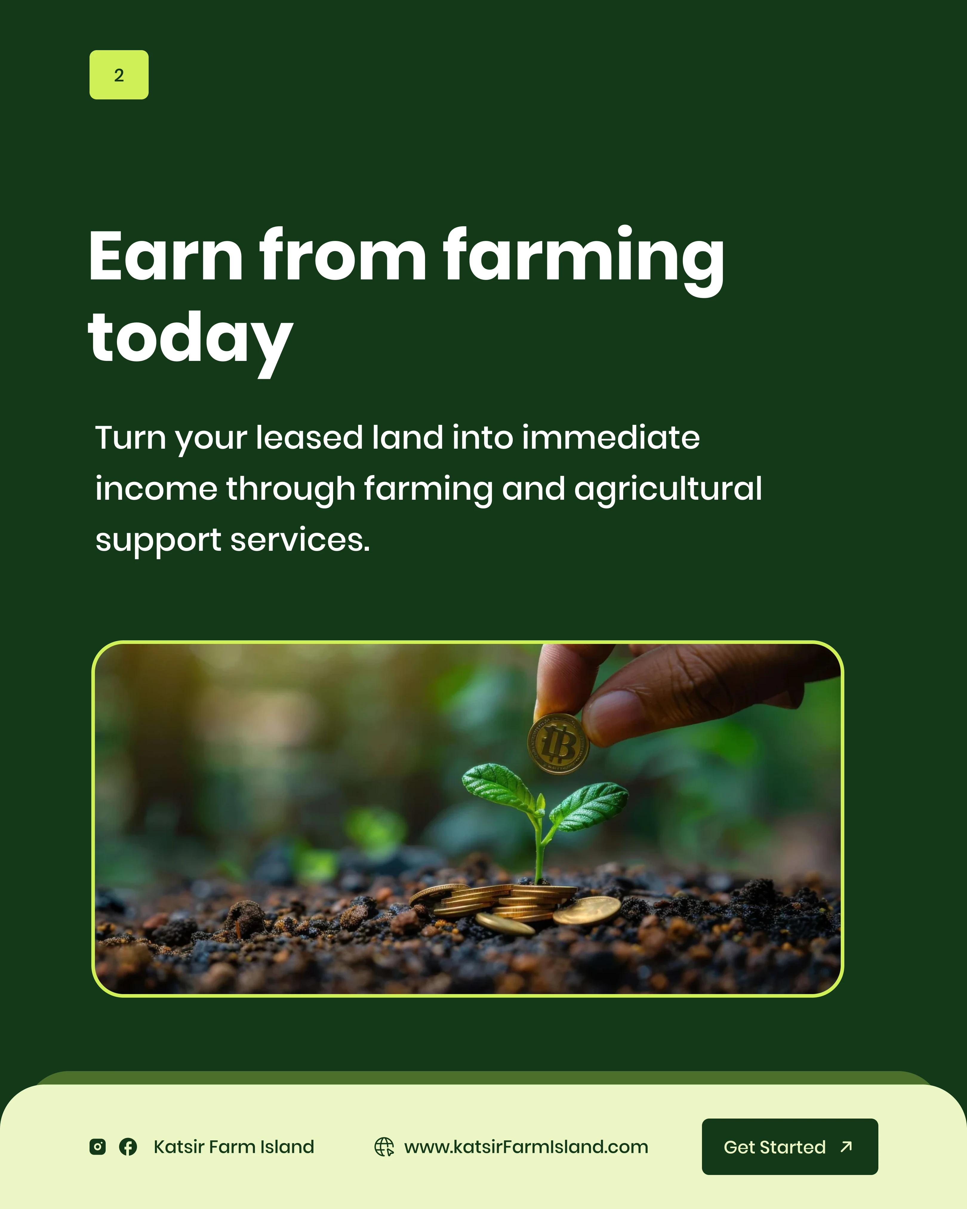 Project Description: Katsiri Farm Island - Investment & Lead Generation The Client: Katsiri Farm Island, a premium service offering managed agricultural land investment with a focus on future commercial transformation. The Goal: To design compelling digital assets to generate high-quality investor leads by clearly communicating the dual benefits of immediate agricultural income and long-term capital growth. My Solution (Creative Strategy): Trust & Value: Used a clean, deep-green and white color palette to symbolize growth, stability, and professionalism, which is essential for investment products. Strategic Communication: Focused content on key financial drivers: "Land First. Profits Next." and "Epe: The Fast-Rising Investment Corridor." Data Visualization: Created clear, simple map graphics and proximity indicators to prove the land's strategic value near major developments (e.g., Dangote Refinery, Universities). Long-Term Vision: Designed assets showcasing the progression from