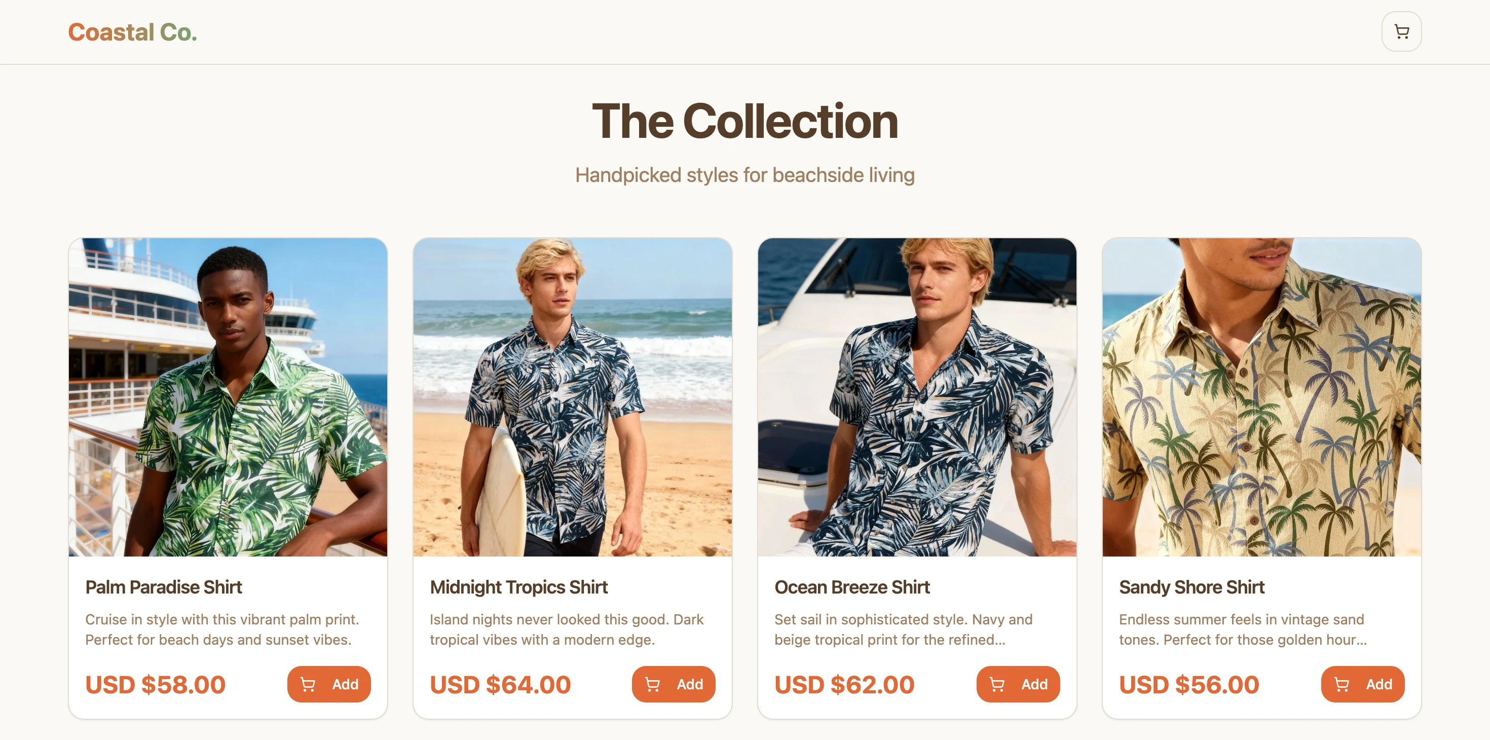 This project is a fully functional Shopify eCommerce store designed and built through Lovable, showcasing a unique collection of Hawaiian shirts generated, styled, and presented using AI-assisted creative workflows.