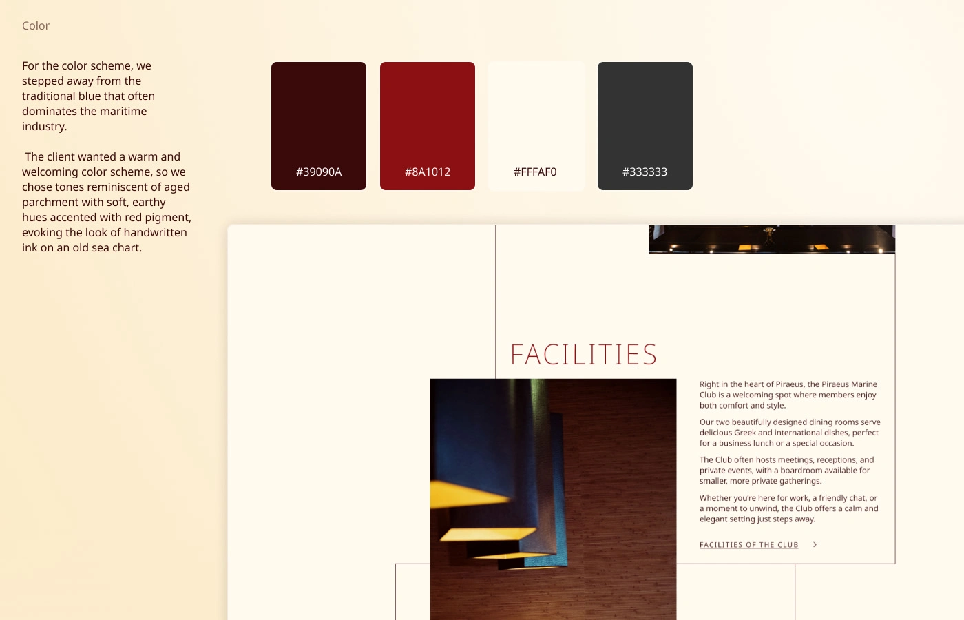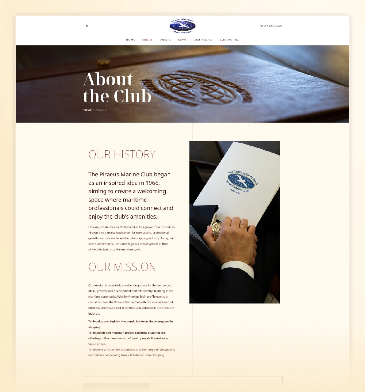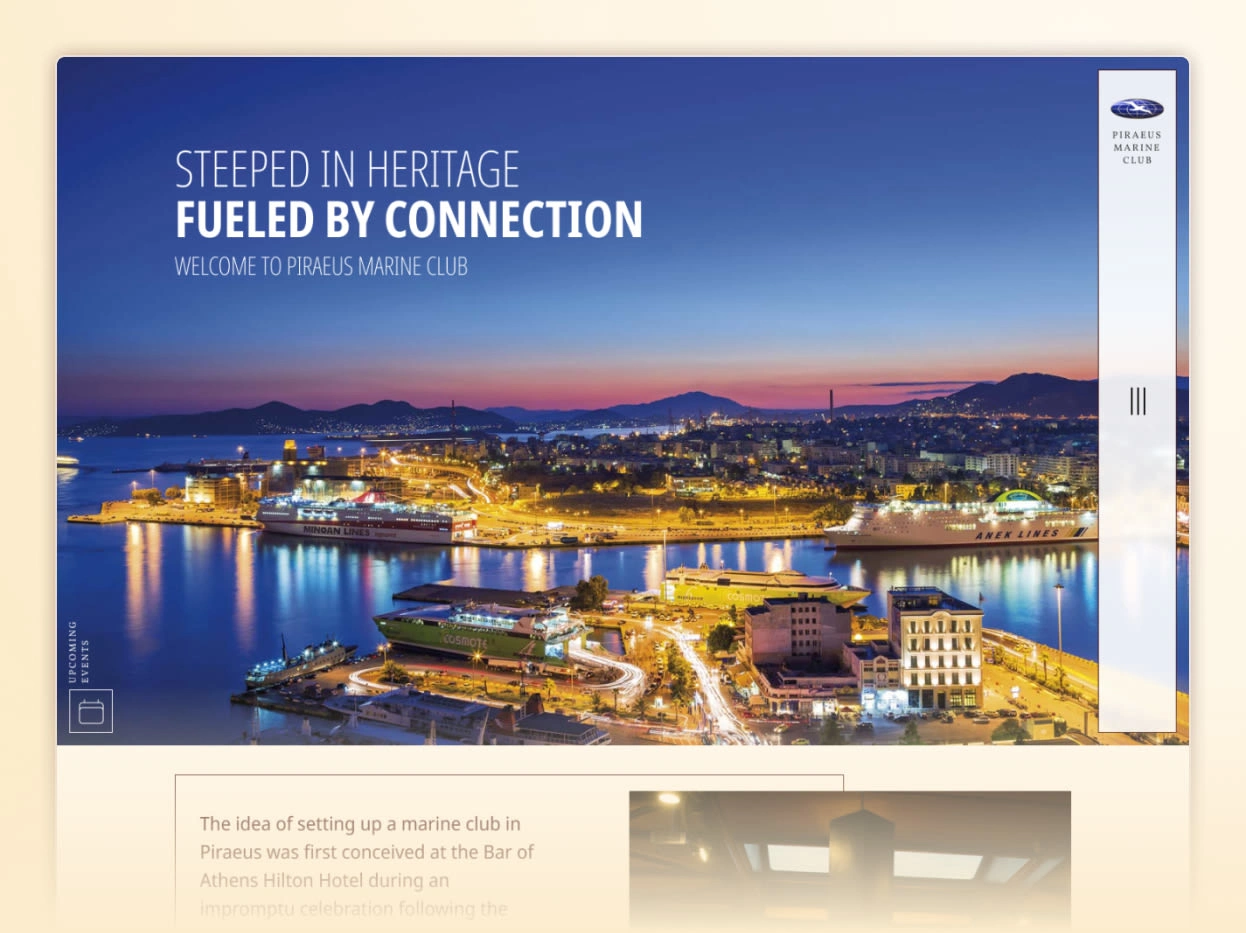 In mid 2025, we were tasked to redesign Piraeus Marine Club's Website. The client desired that we design the website with 3 points that we ended up calling "The 3H": Hospitality, History and Heritage.