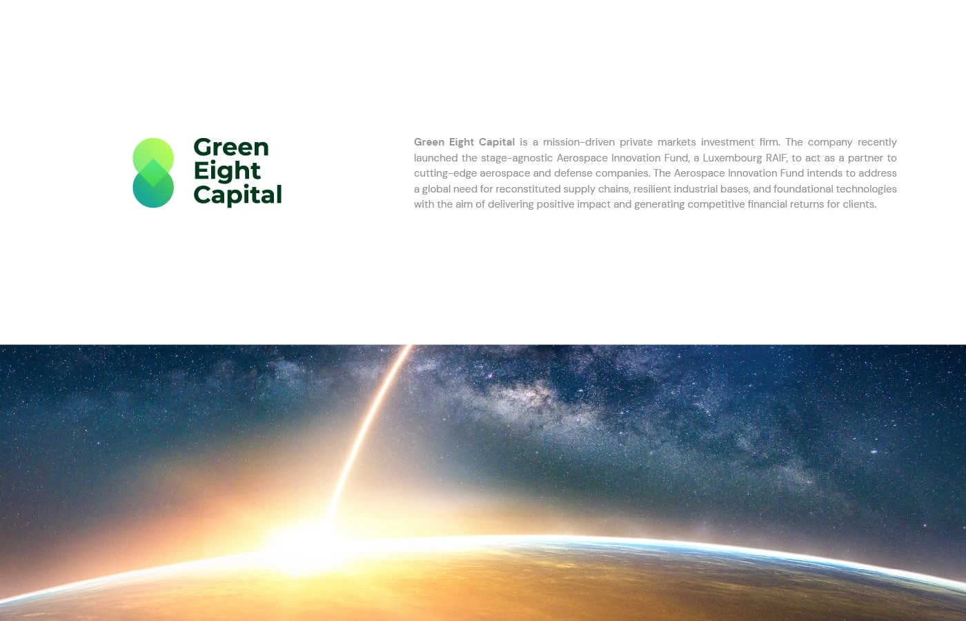 Green Eight Capital is a mission-driven private markets investment firm. The company recently launched the stage-agnostic Aerospace Innovation Fund.