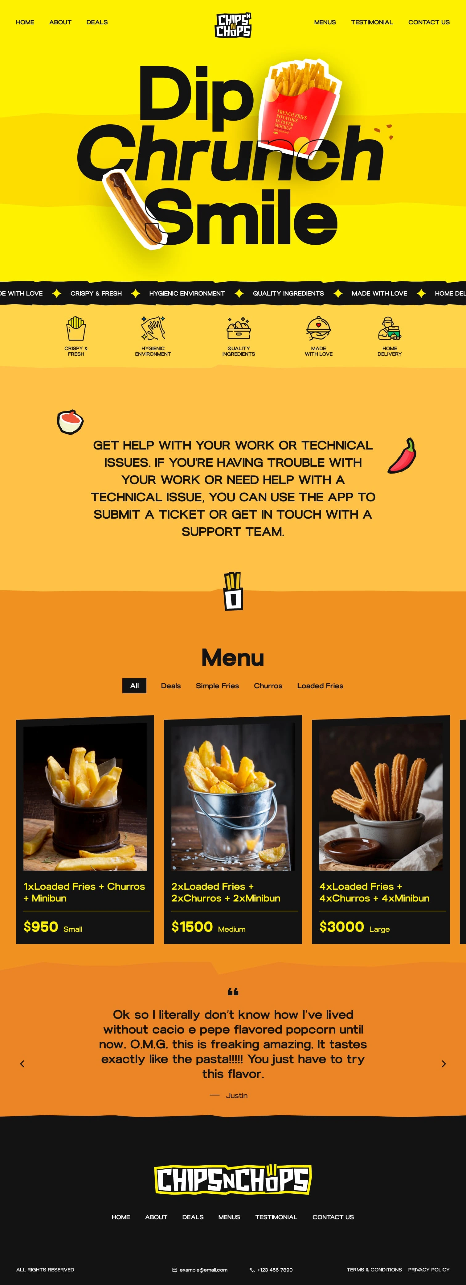 Chips N Chops revamped its website with a vibrant, responsive design, showcasing its fries and churros, boosting visibility and customer engagement.