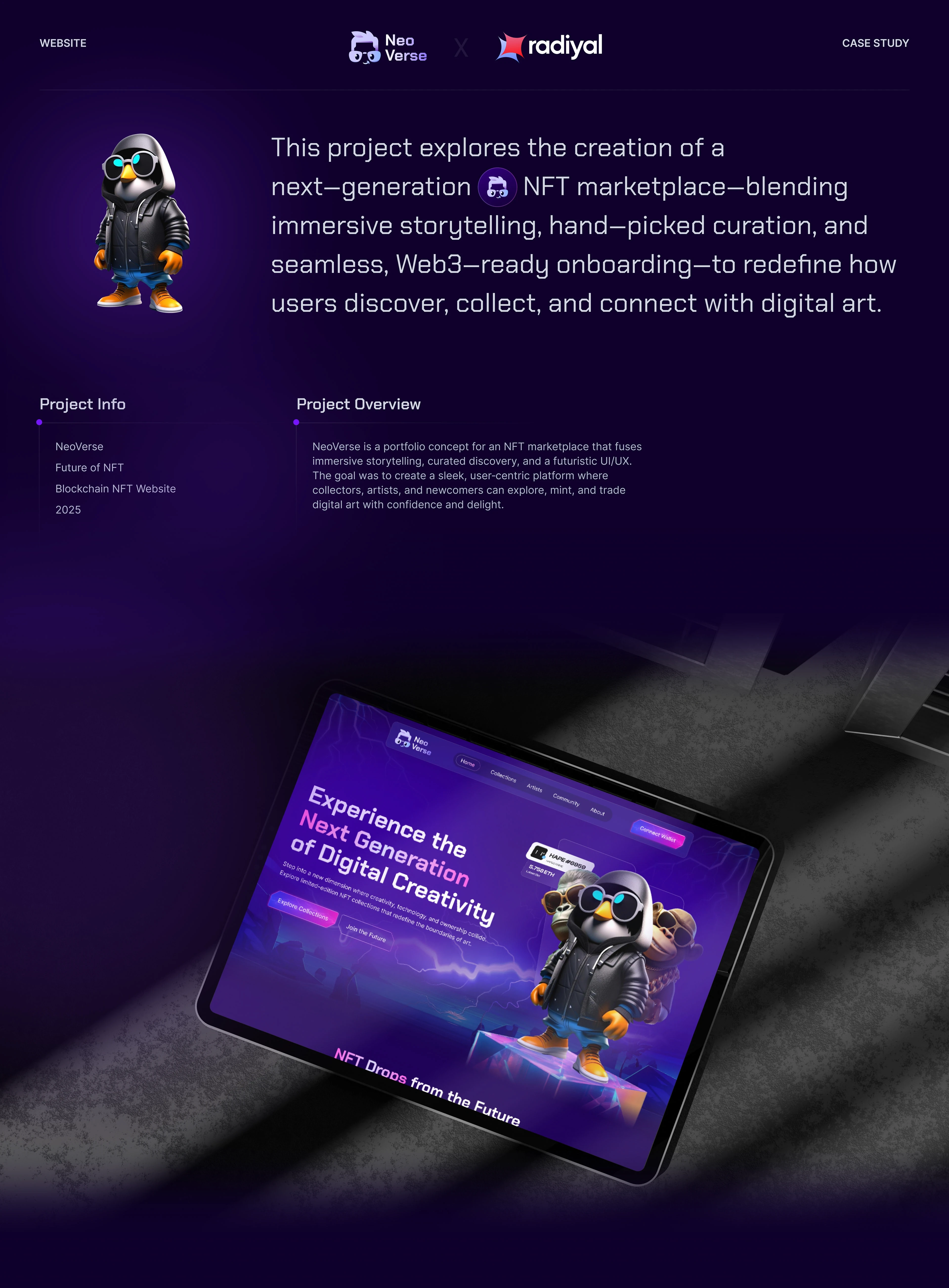 This project is a futuristic NFT website concept designed to redefine the digital art space.
