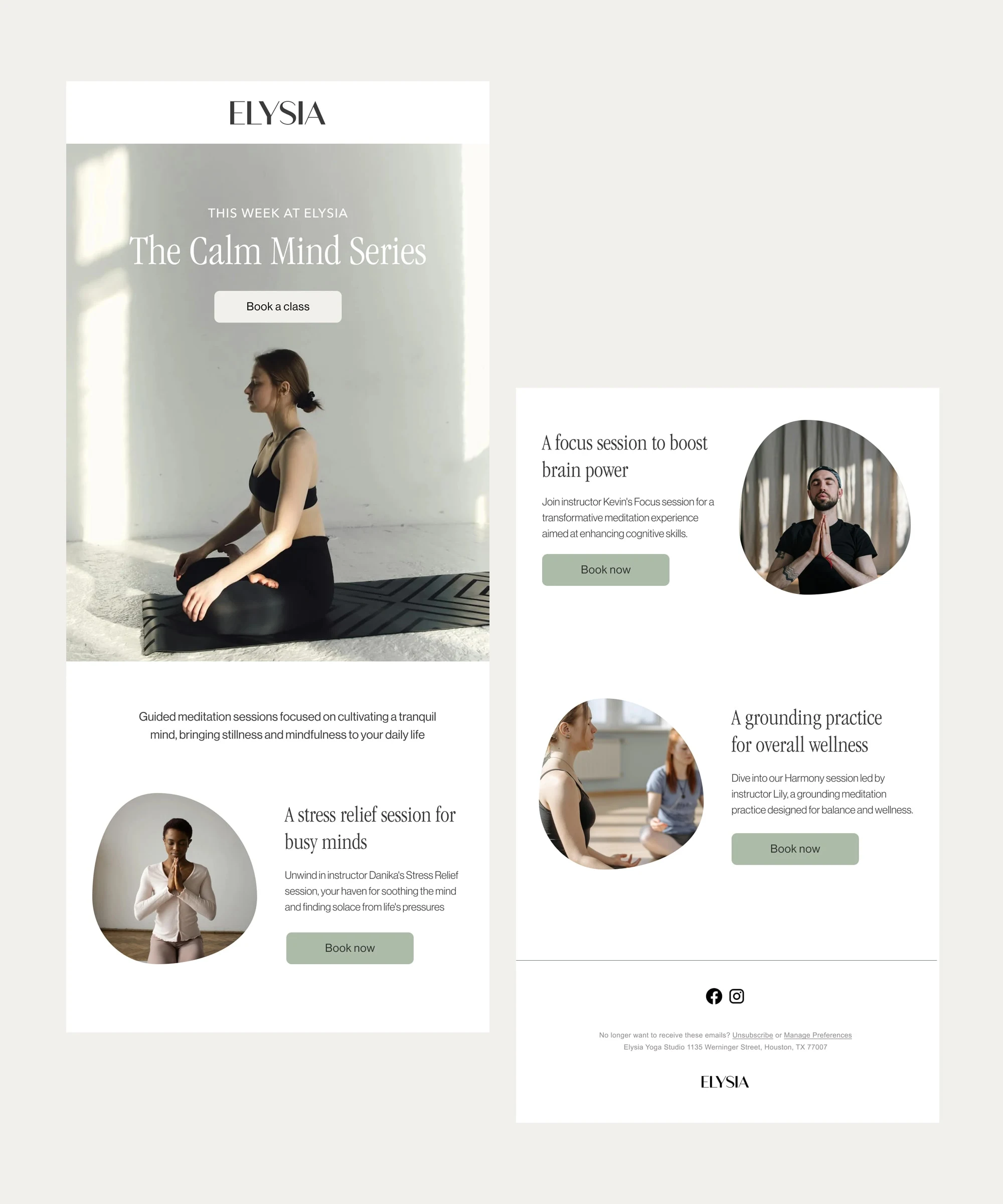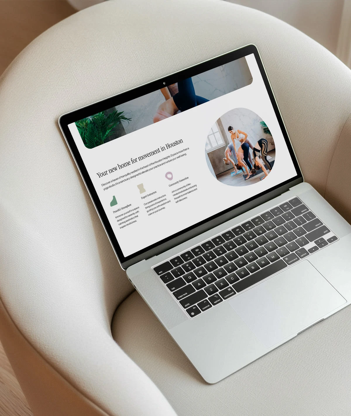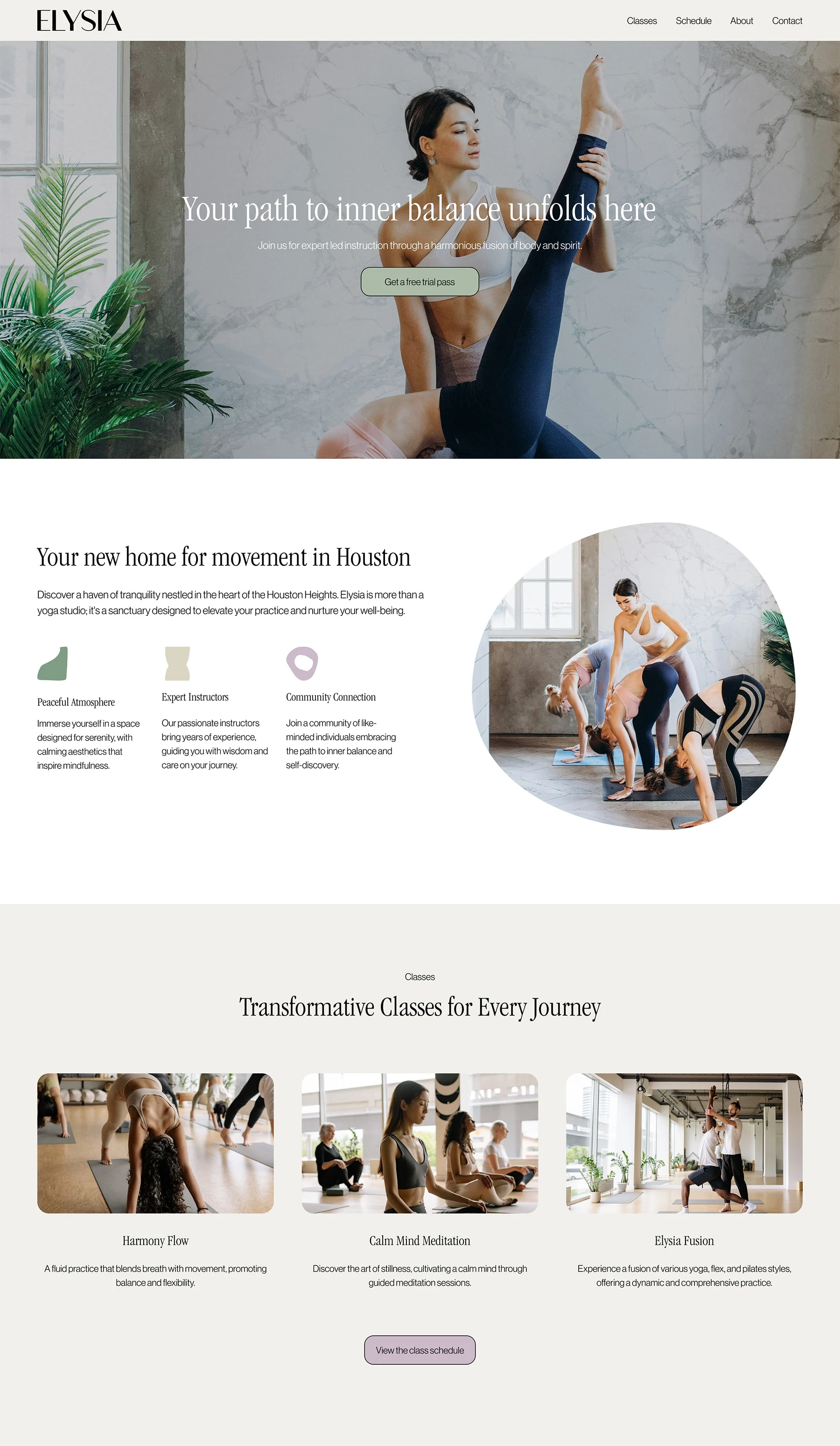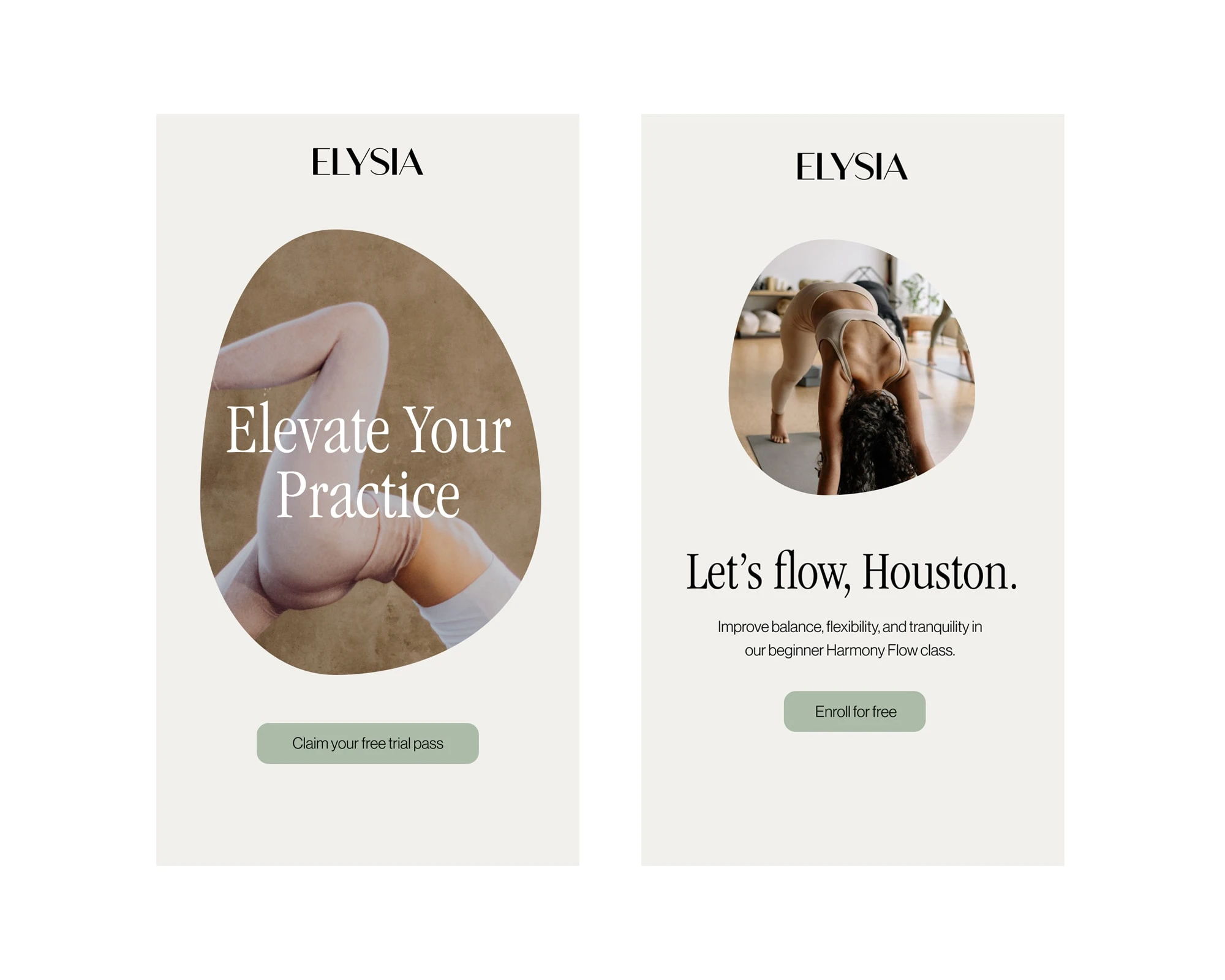 Logo, web, and digital design for Elysia, an intimate yoga and movement studio.