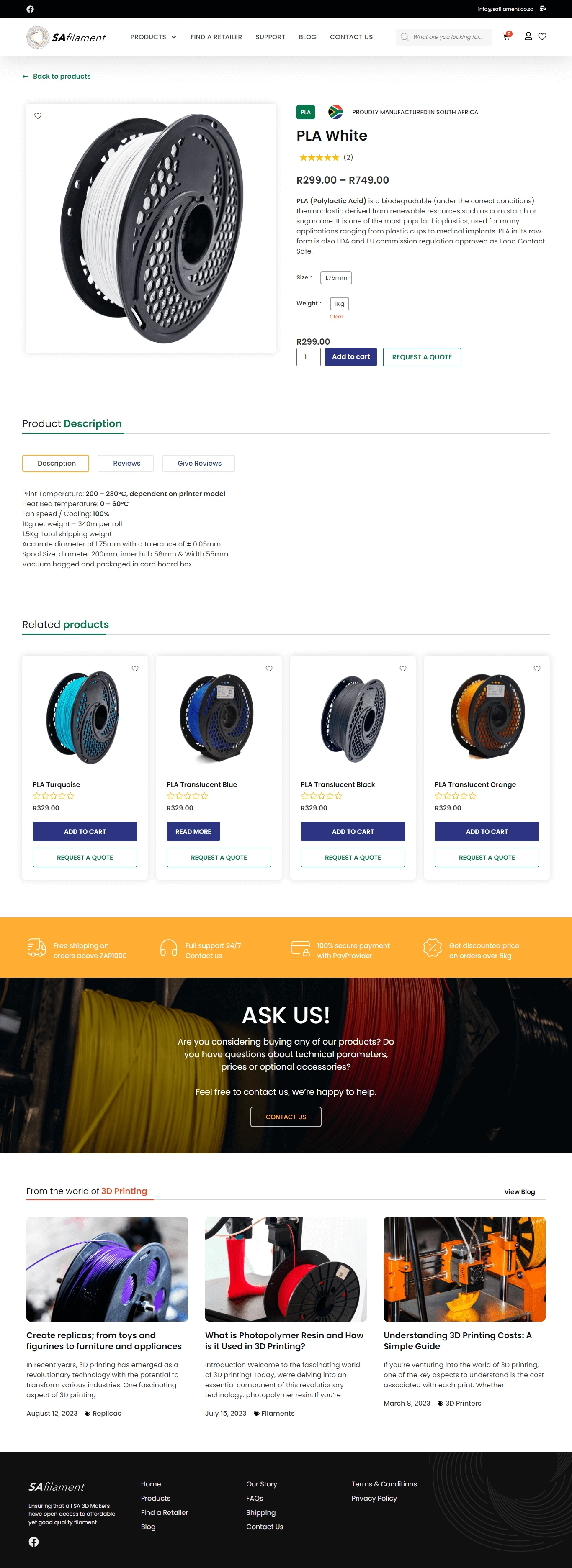 In this project, I've created a fully functional E-commerce website for my client to sell their 3D Printing Filaments. [Wholesale & Retail selling]