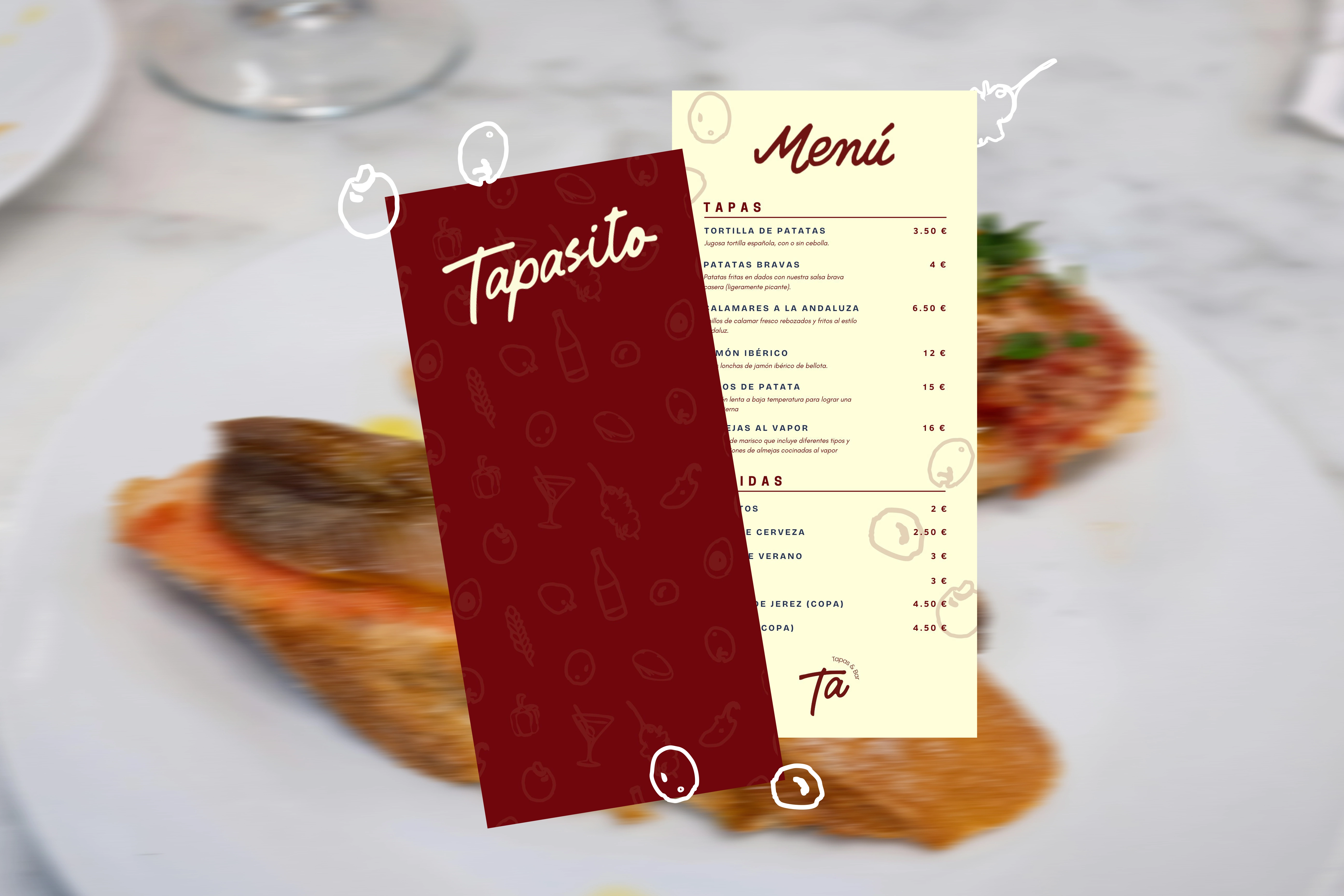 "Tapasito" seeks to capture the essence of a tapas bar with a fusion of rustic charm and Andalusian elegance. The flowing, handwritten logo in clean white stands out elegantly against rich, textured backgrounds, creating a personal and welcoming feel.