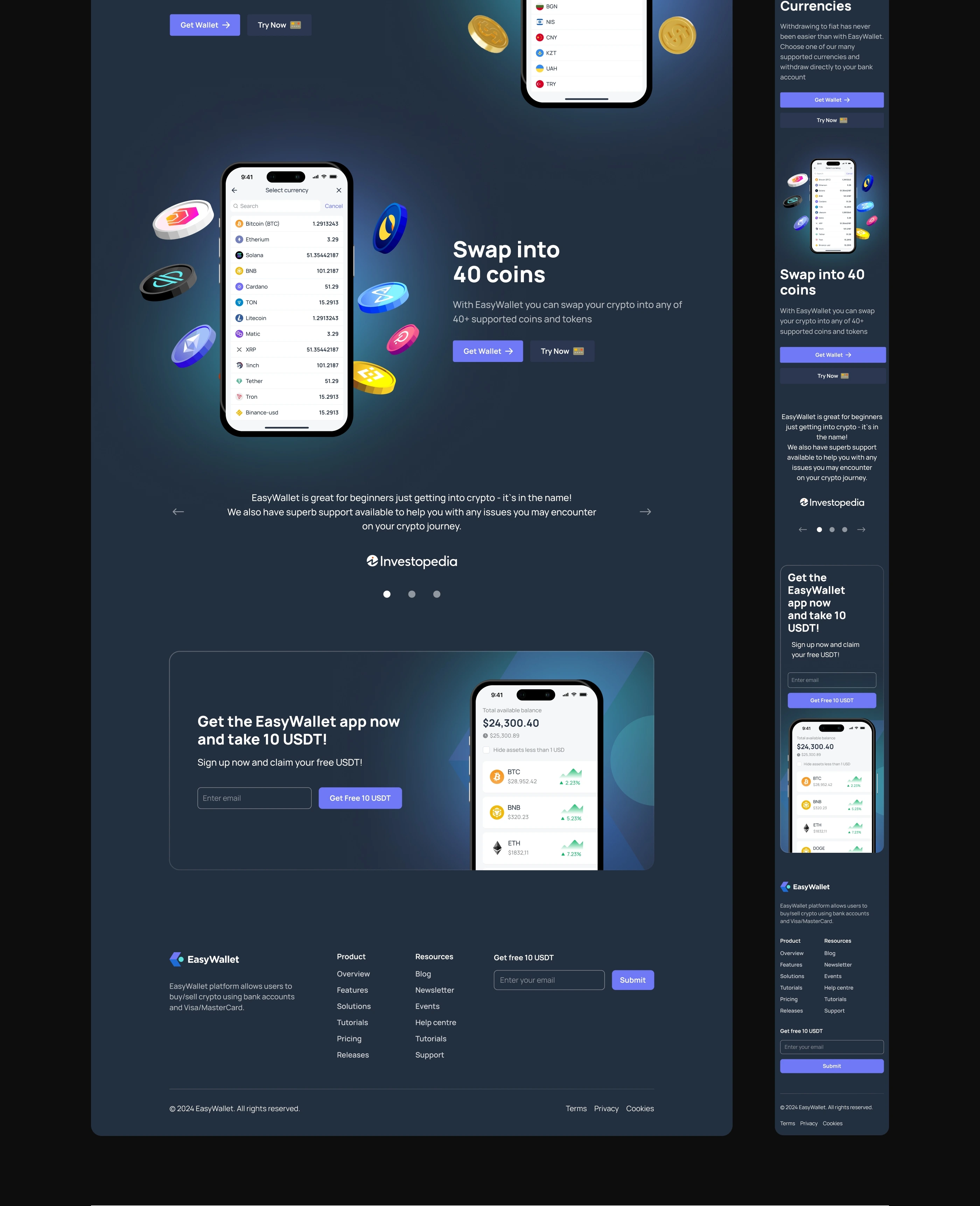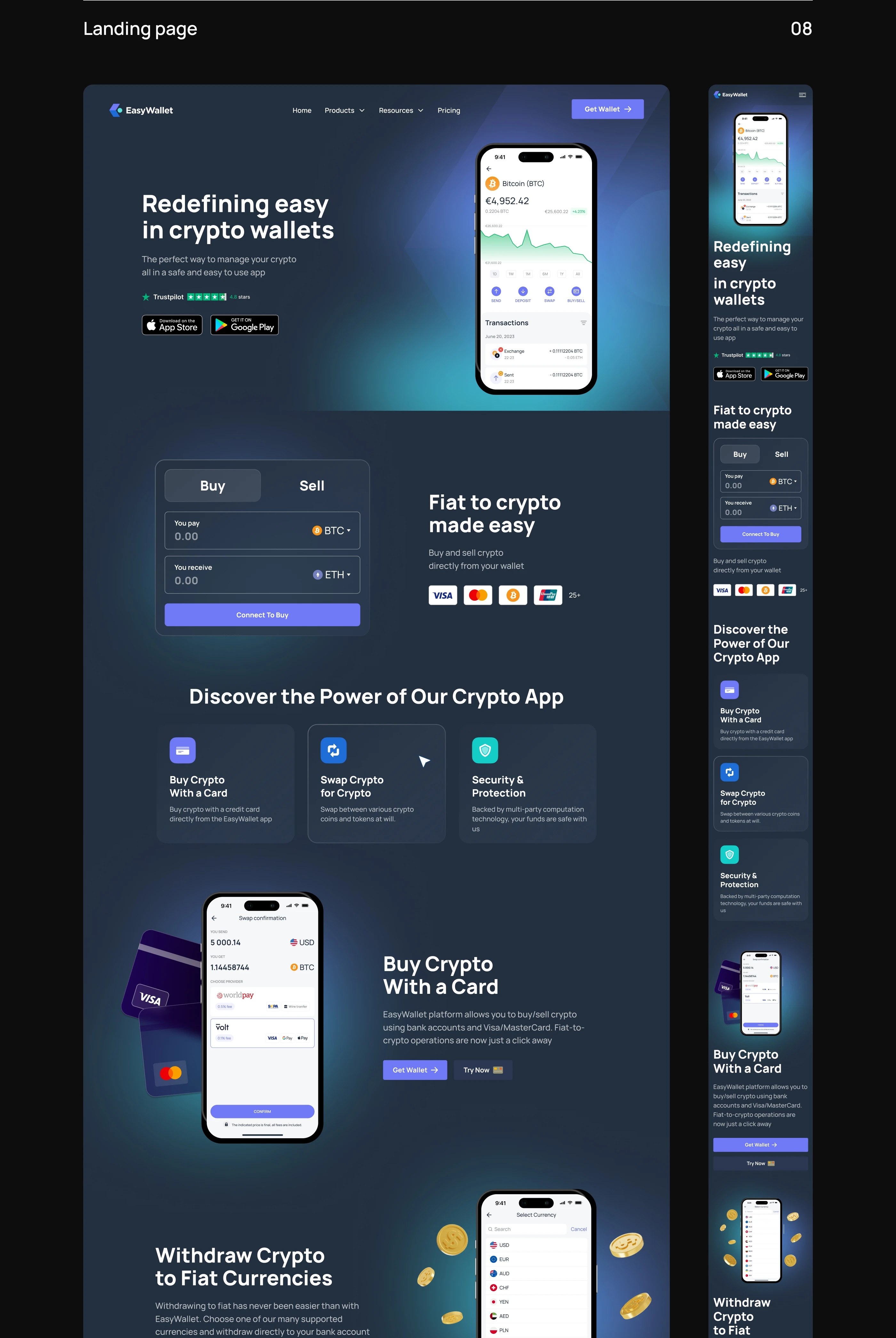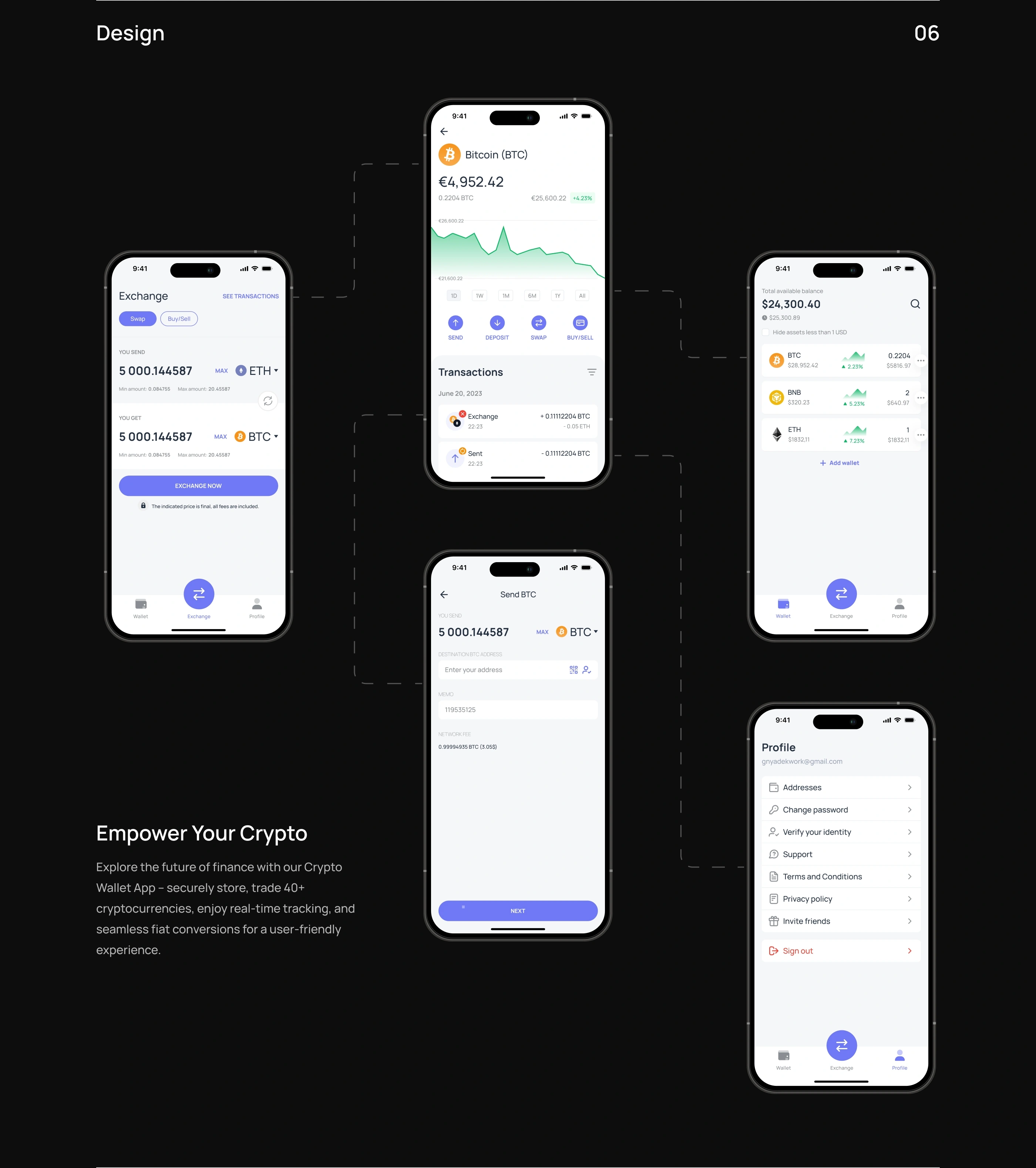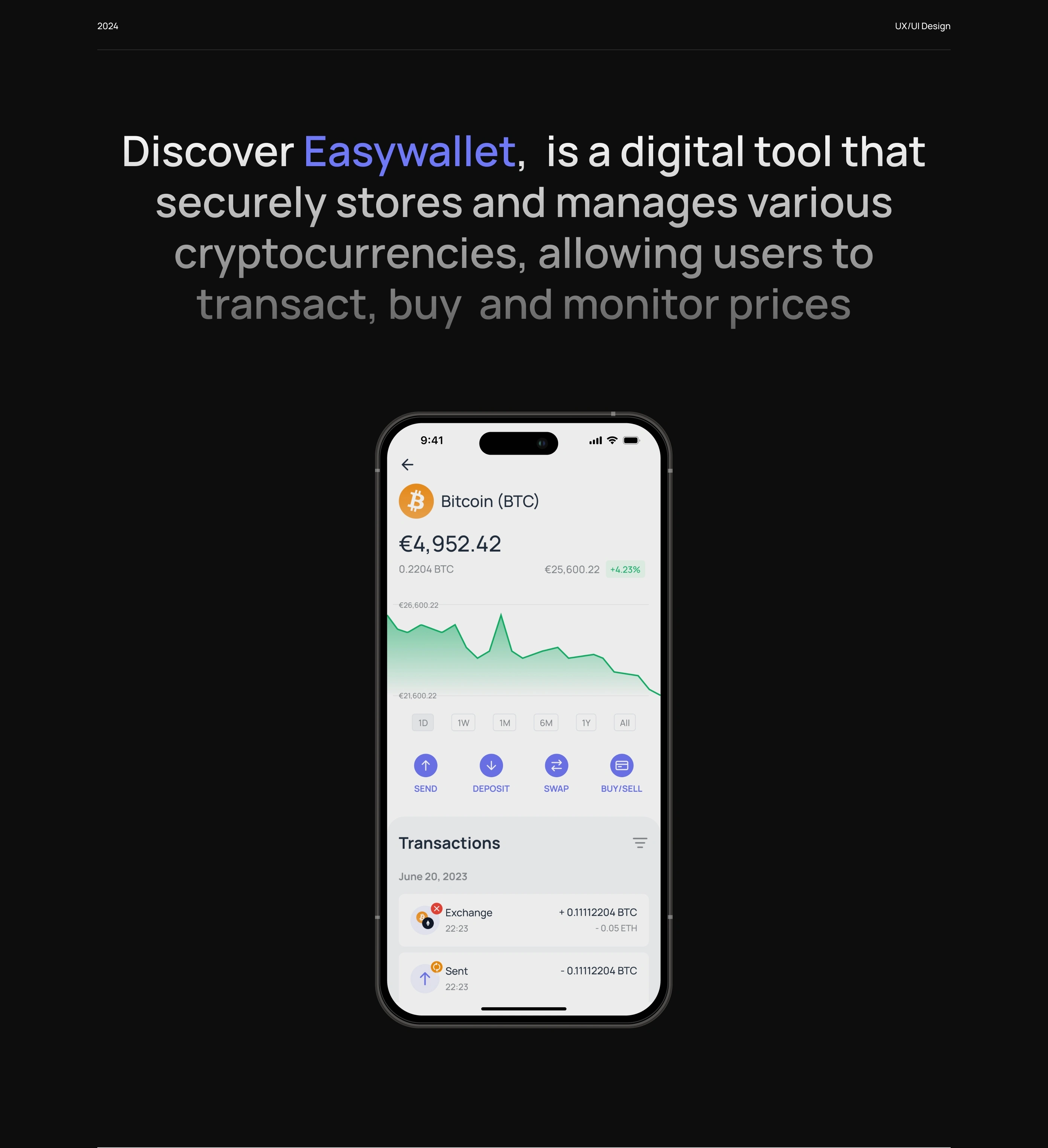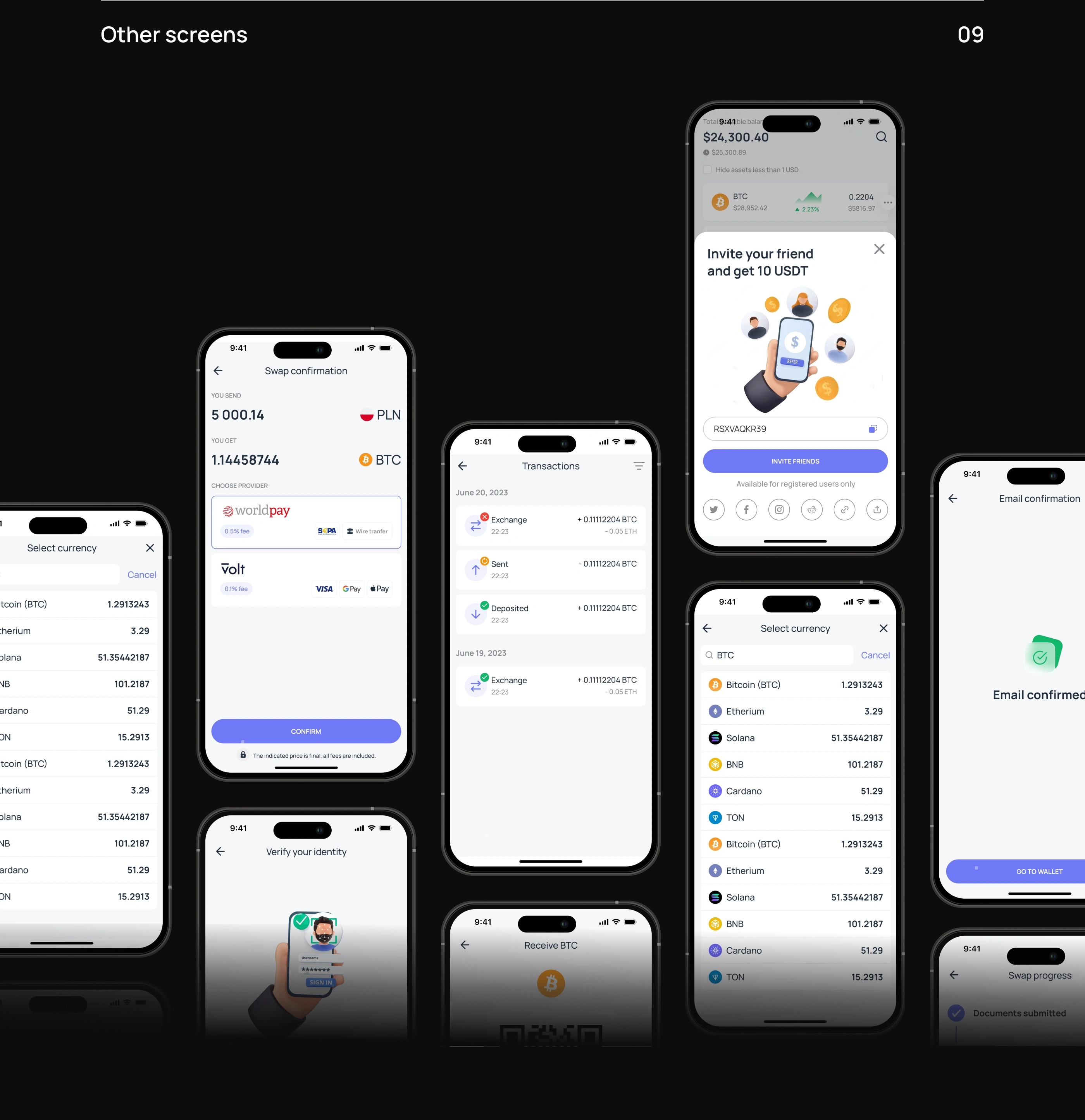 Modern crypto wallet app for buying, selling, and tracking assets. Secure, intuitive, and designed for effortless multi-currency management on any device.
