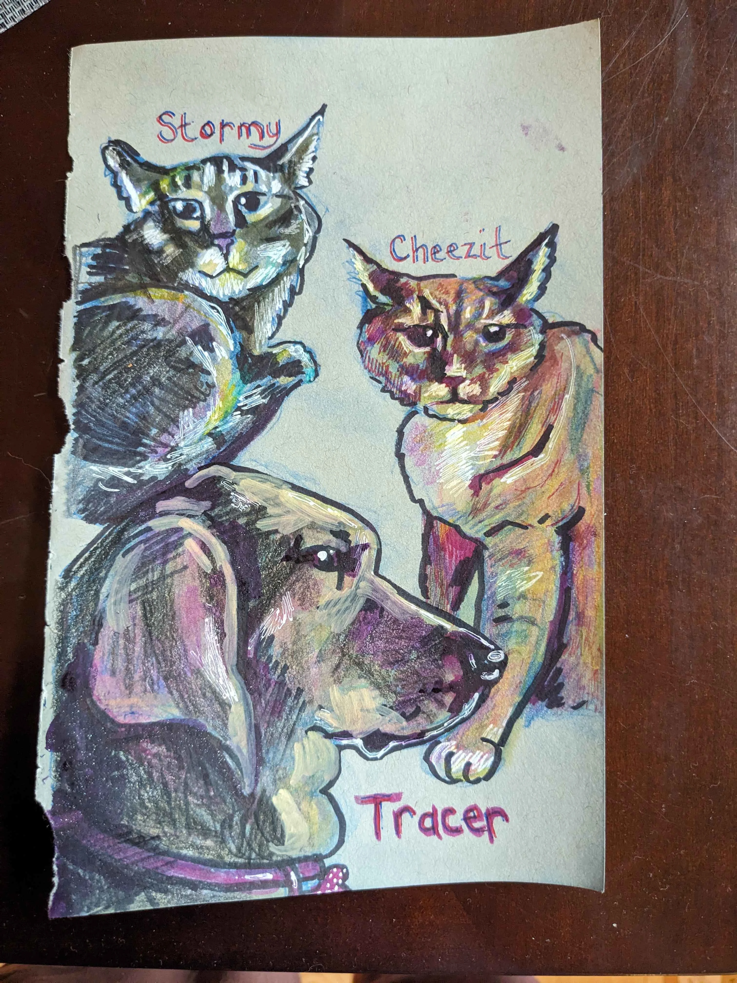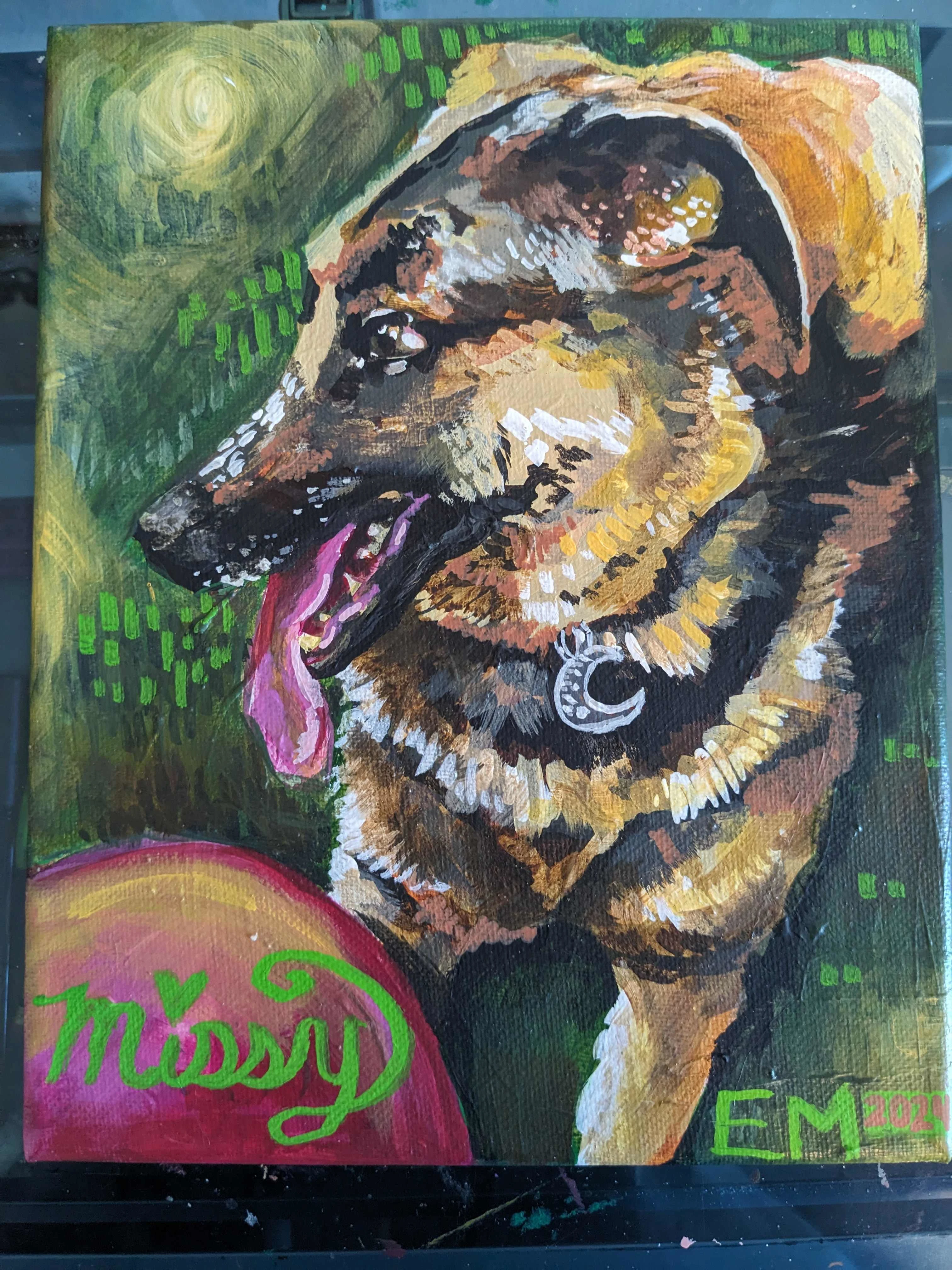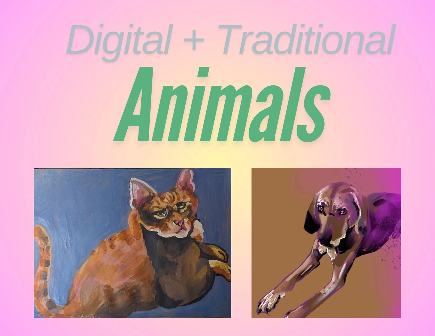 I love to create pet portraits and art of animals. I have included acrylic paintings and digital works in this gallery.