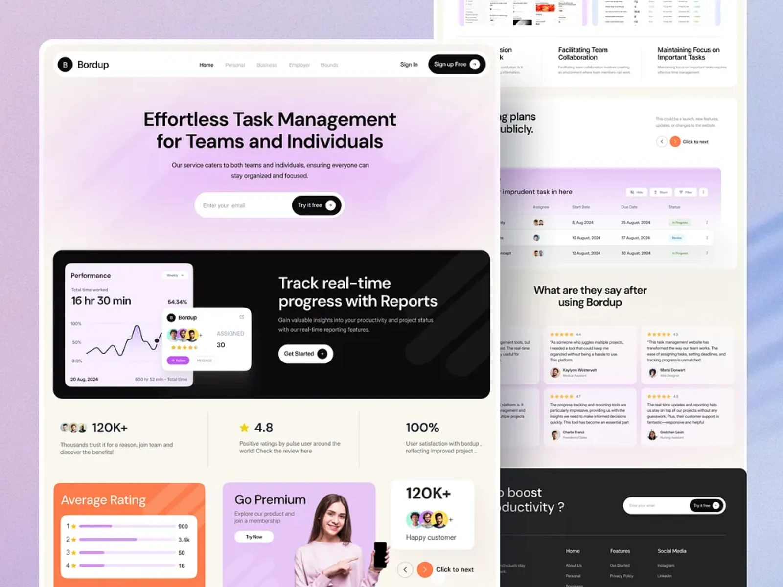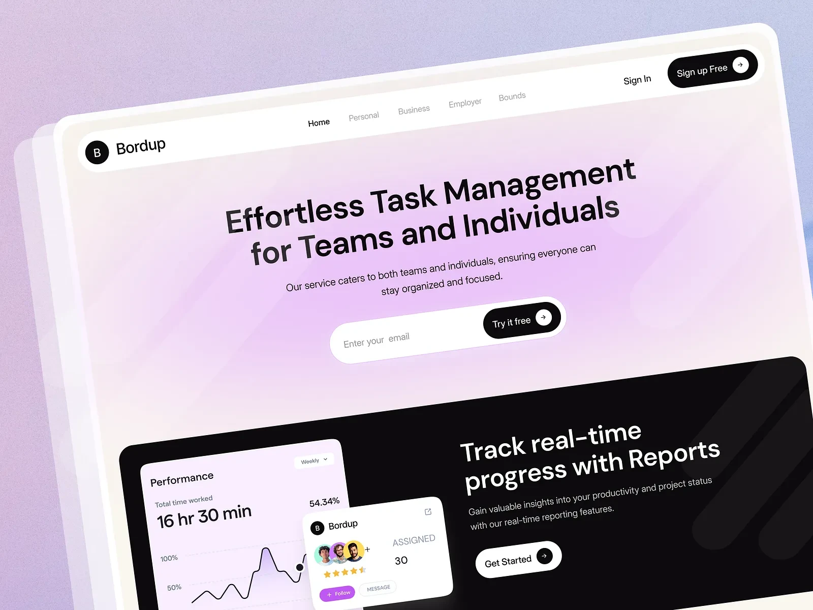 Designed Bordup, a task management platform that boosts team productivity, simplifies task tracking, and enhances collaboration with a user-friendly interface.