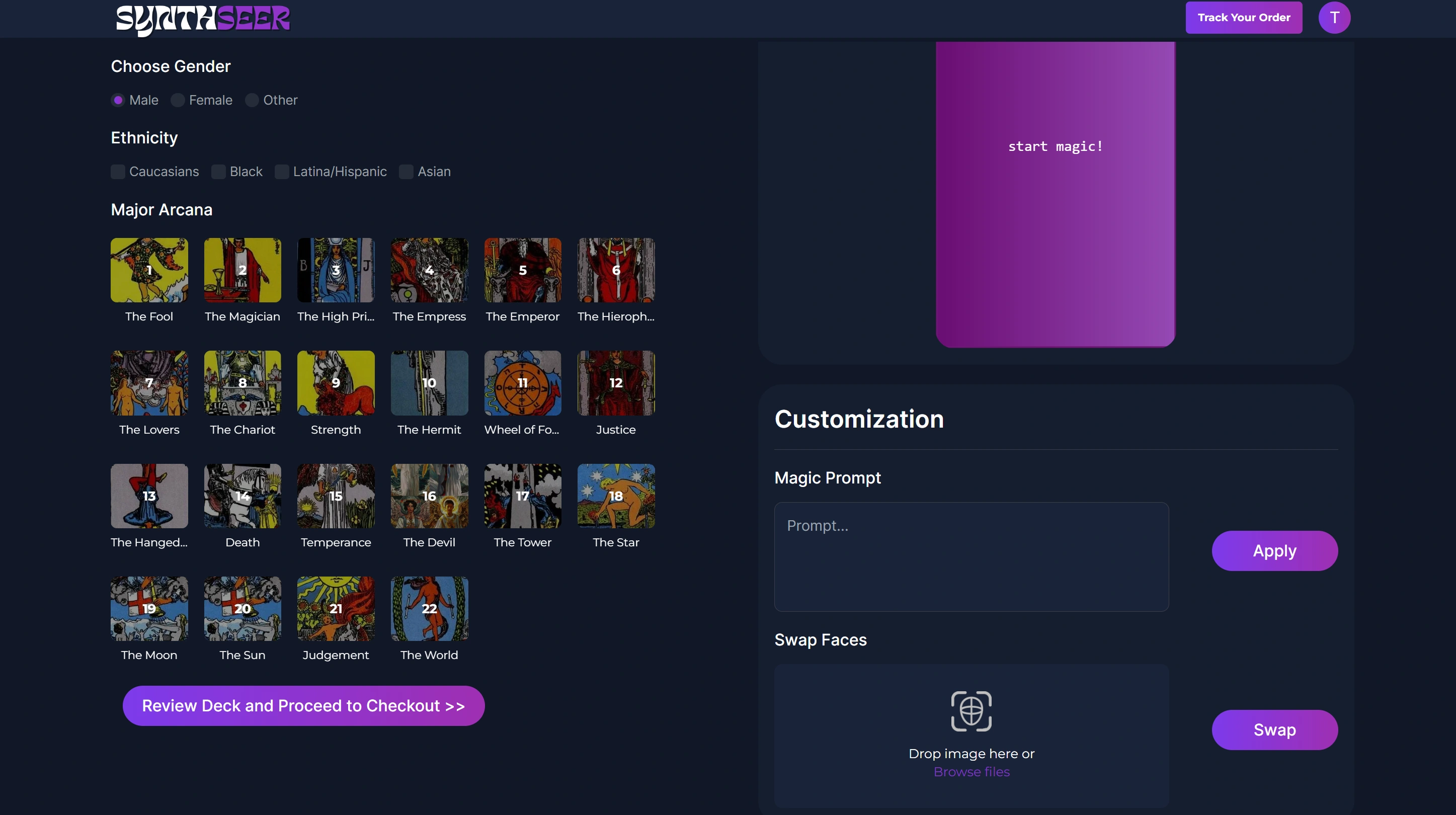 > Developed a dynamic, AI-driven tarot card generation platform that delivers personalized, interactive tarot readings based on user prompts and AI logic.