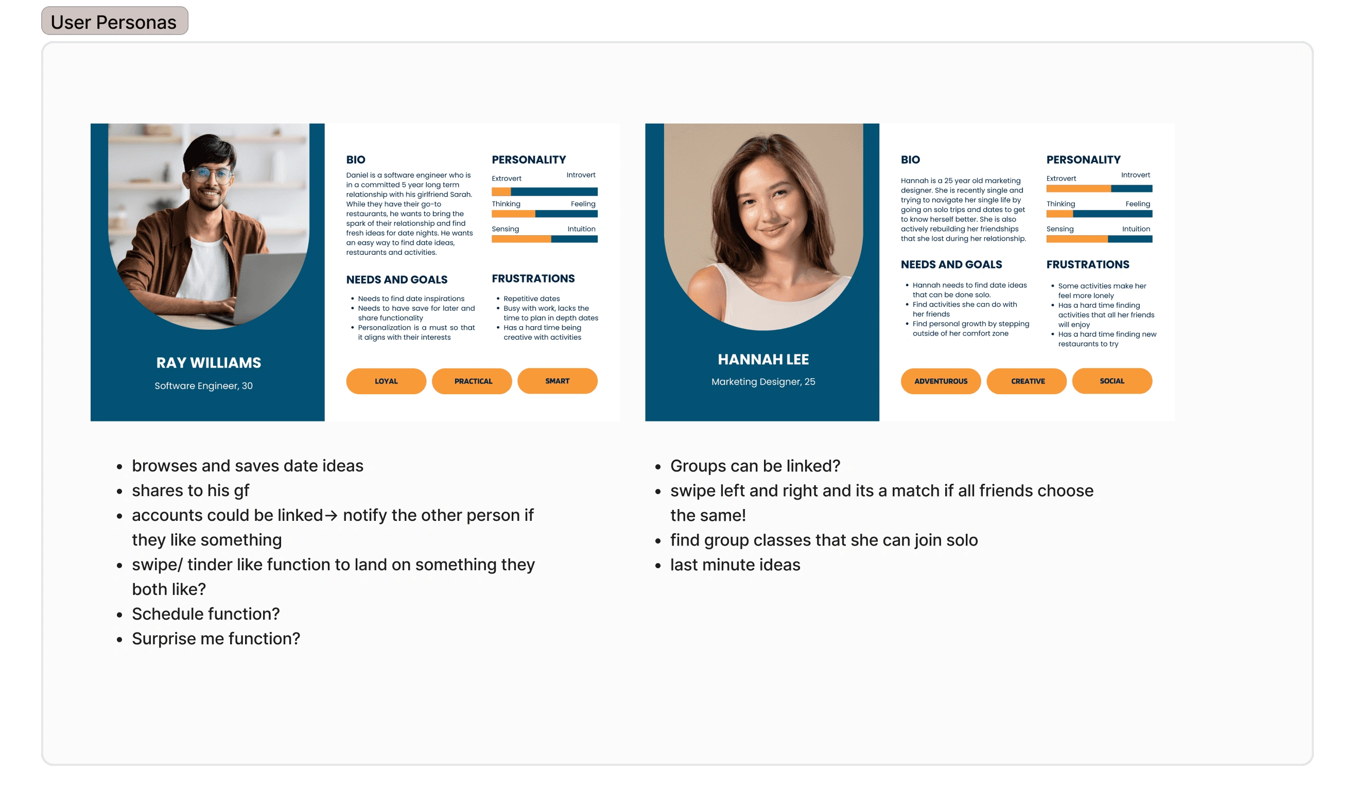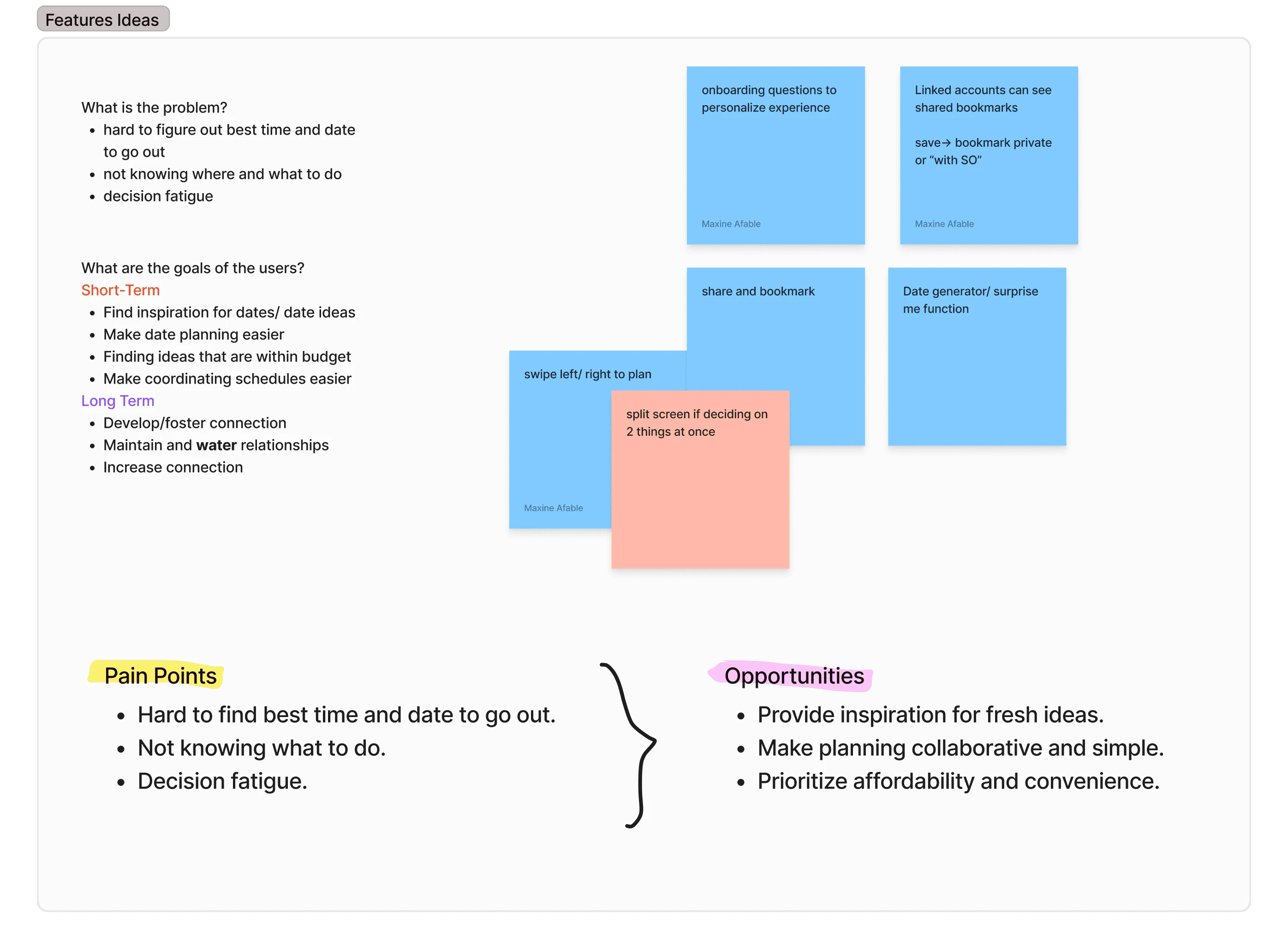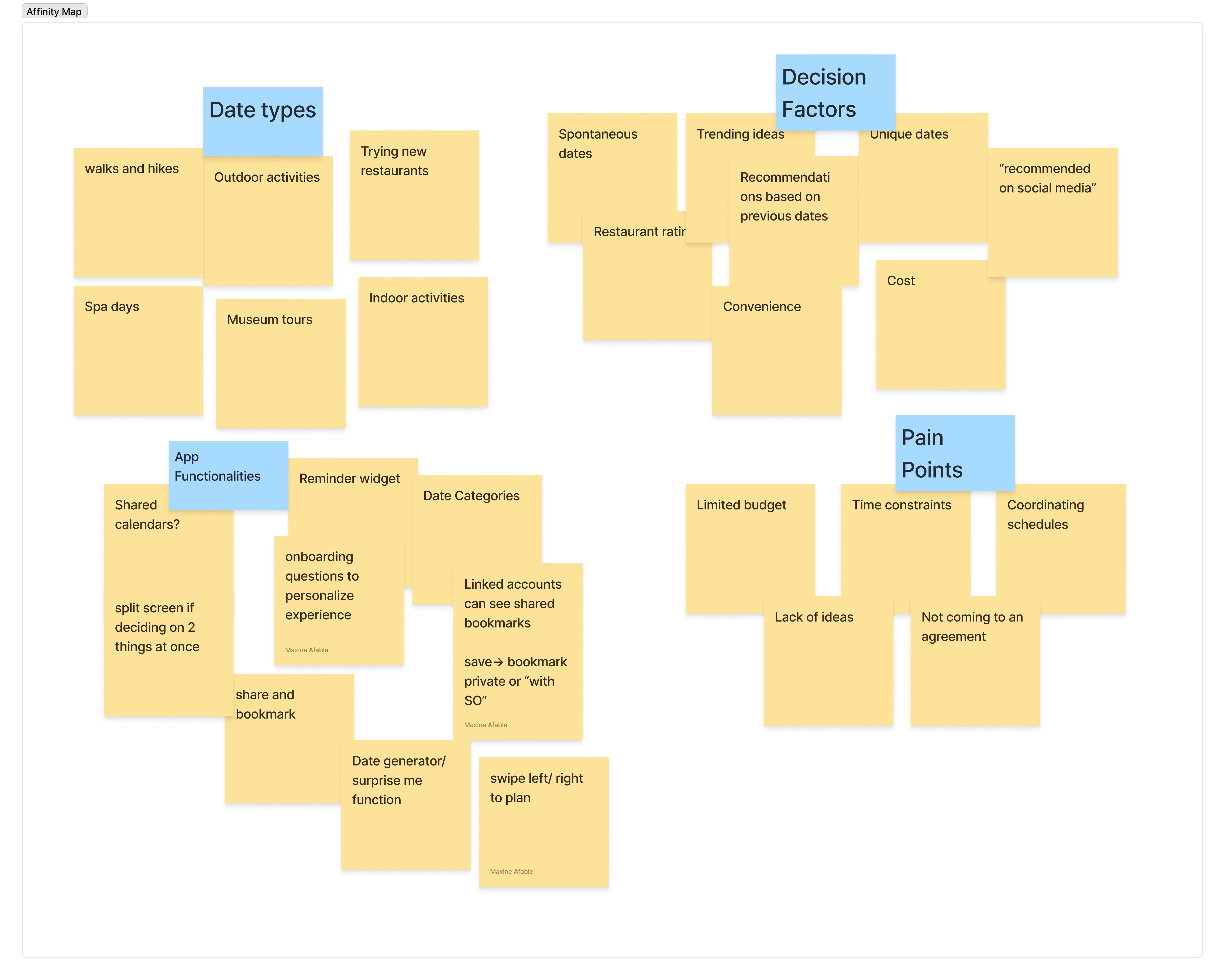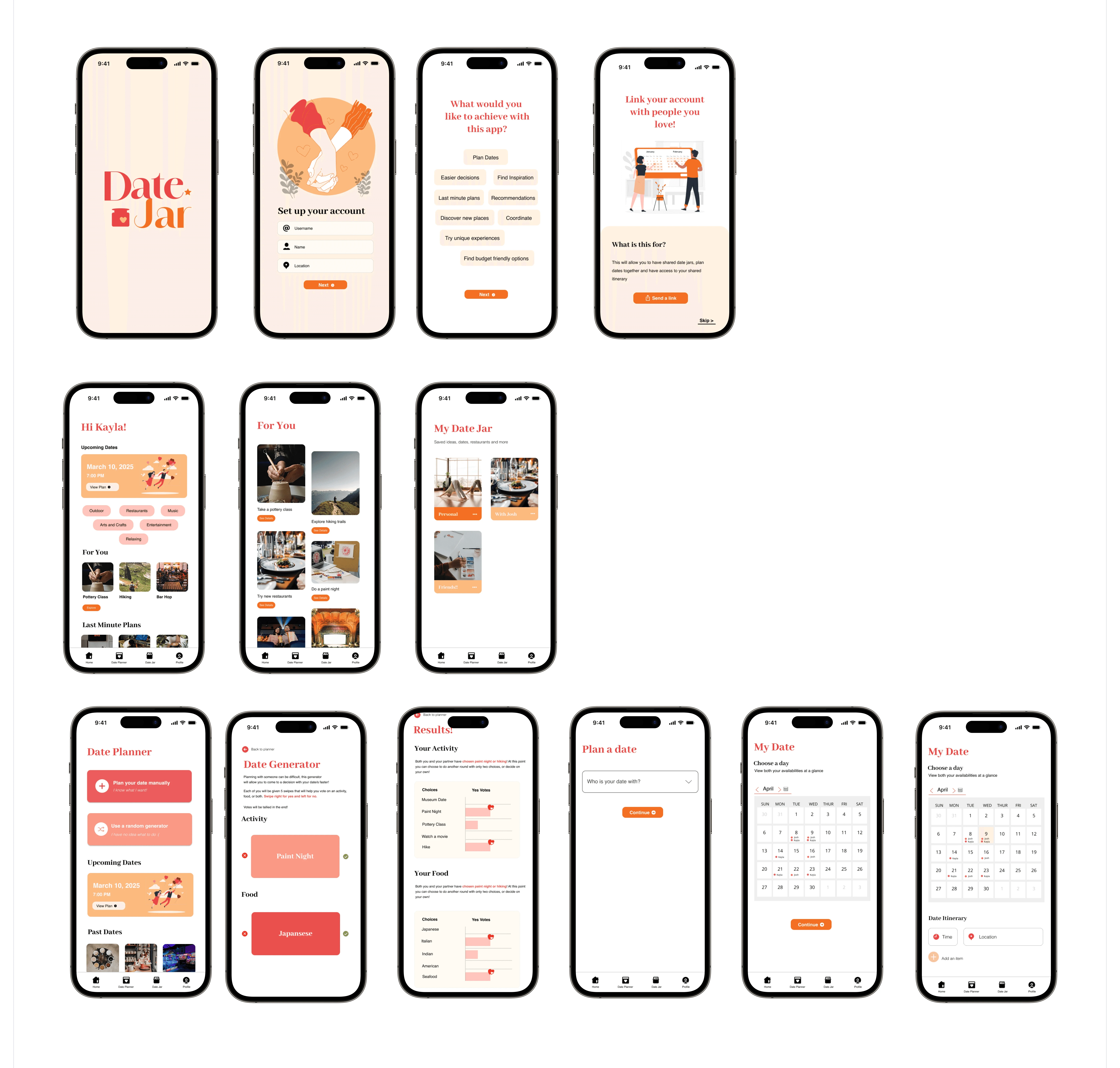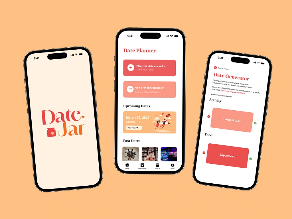 I designed a mobile app that helps couples, friends, and individuals easily discover and agree on date ideas through a swipe-based interface, personalized recommendations, and linked accounts—making planning less stressful, more collaborative, and fun.