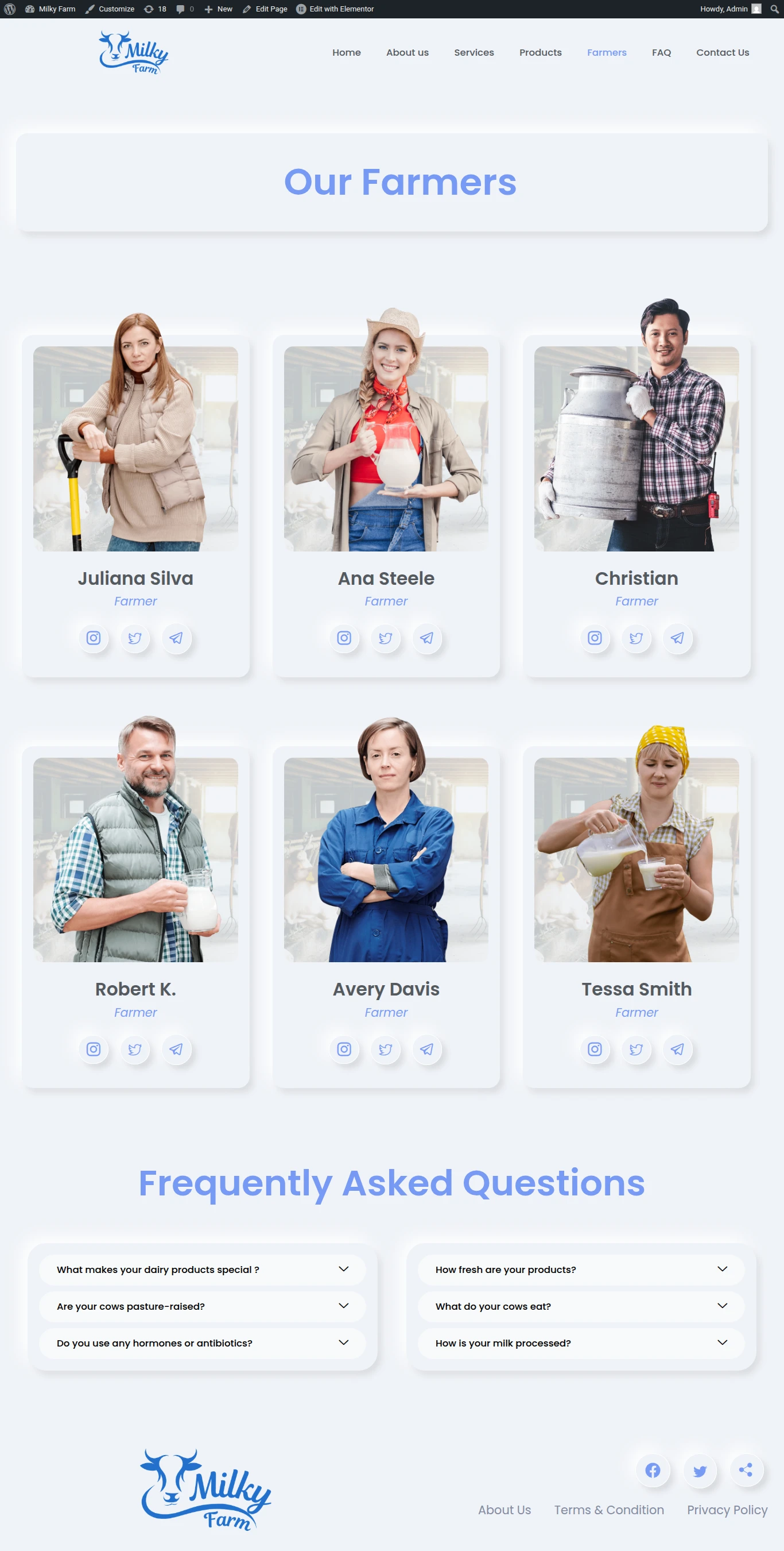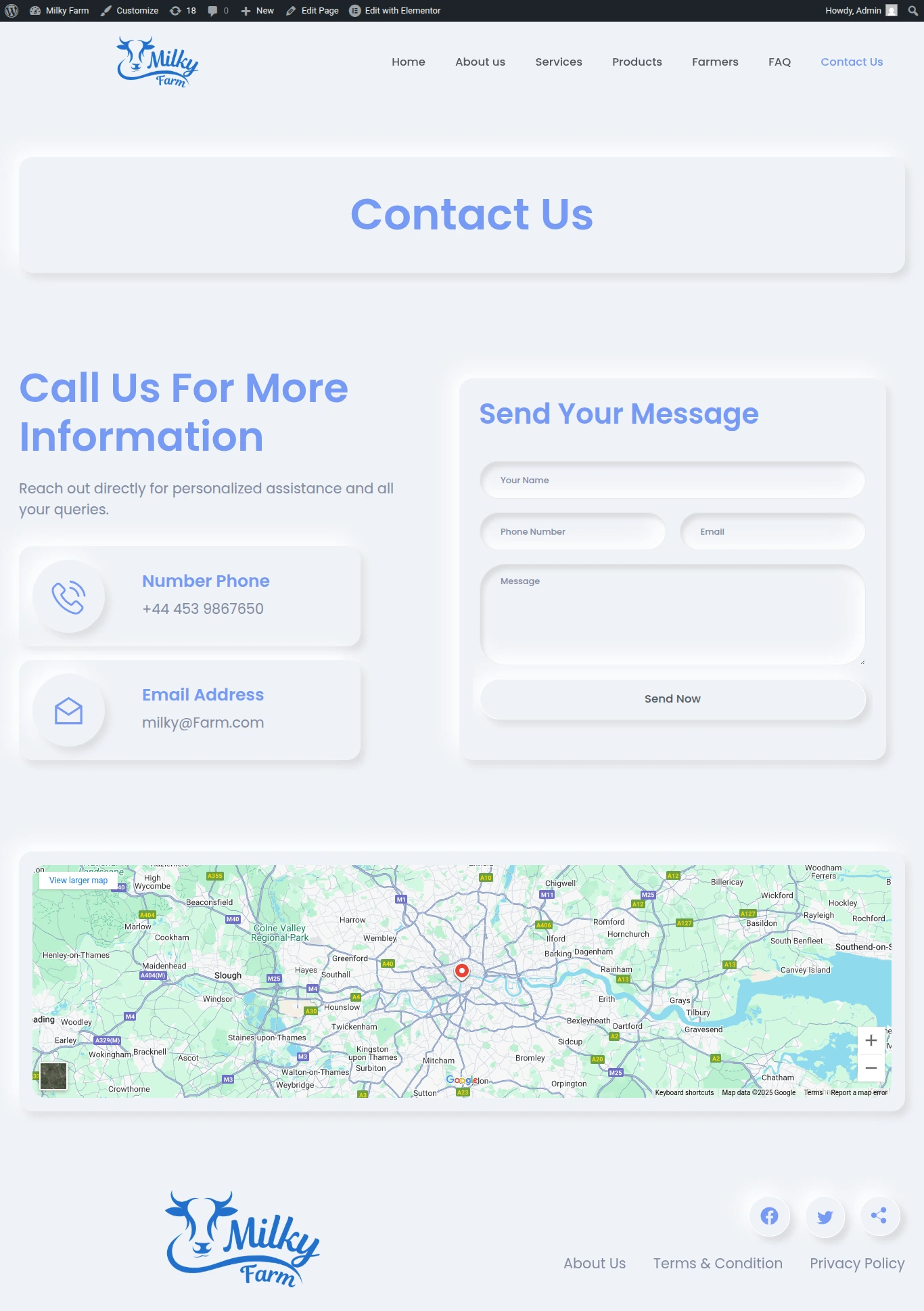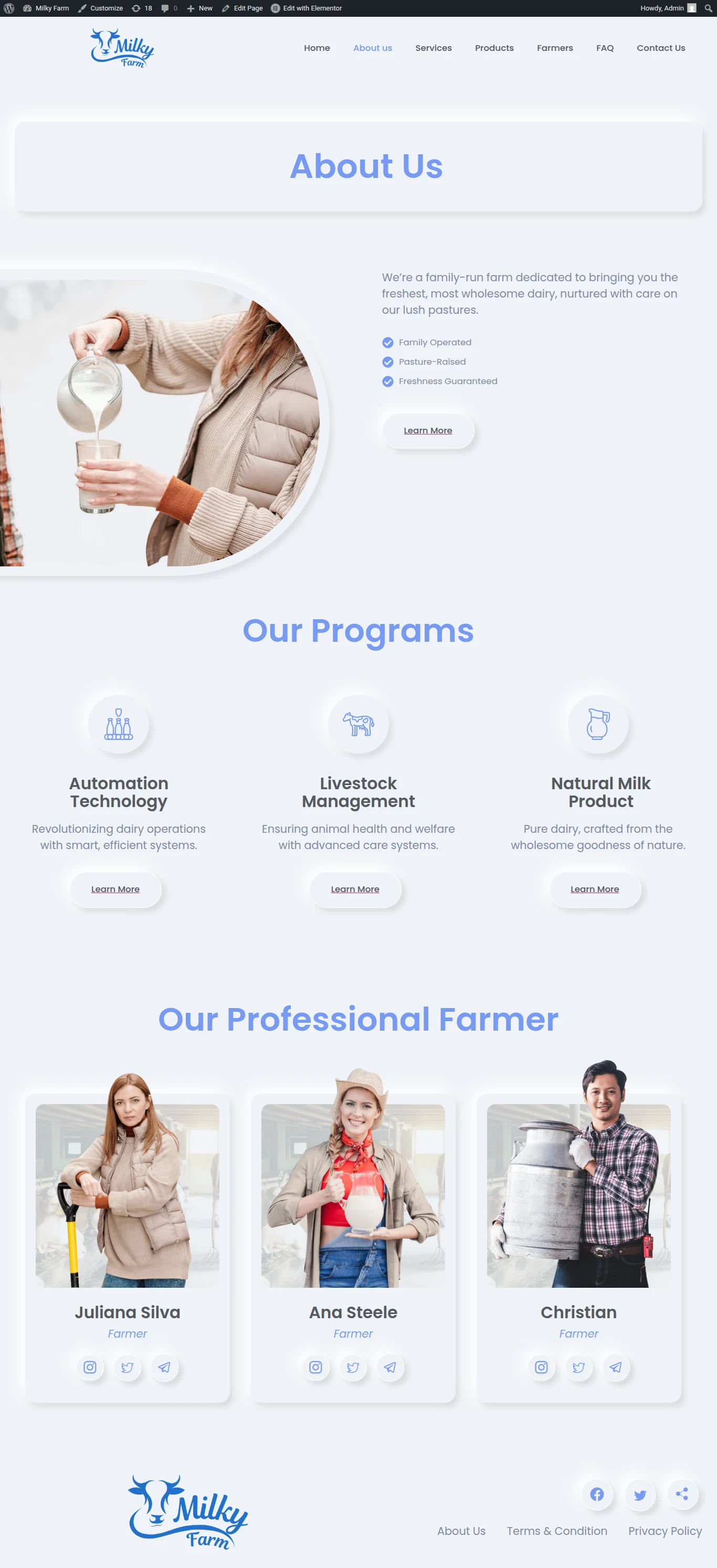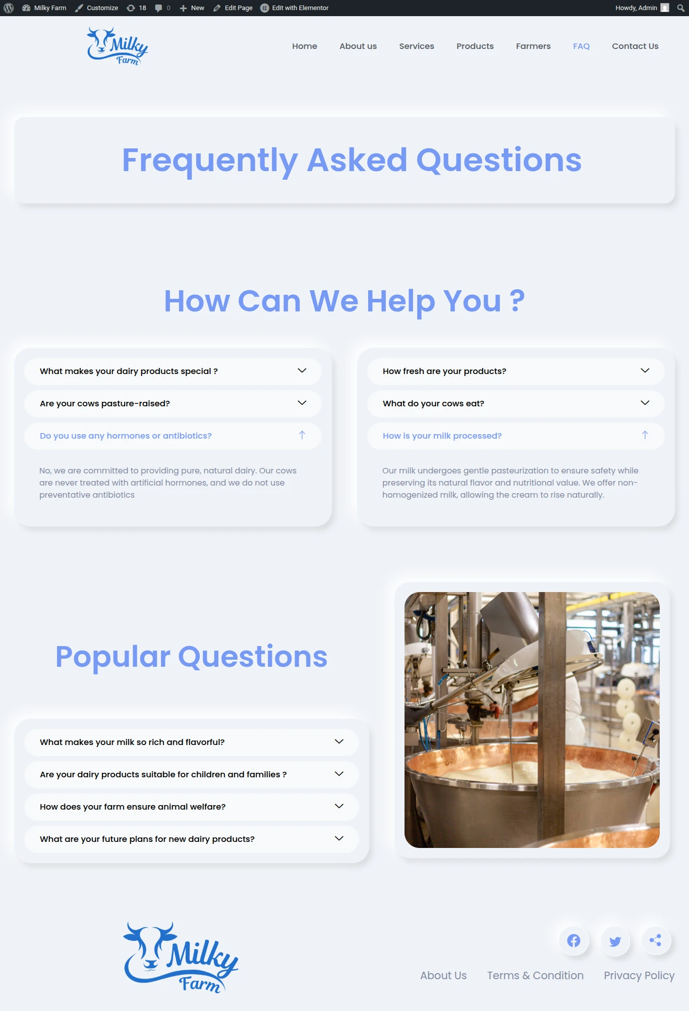 This website was built for Milky Farm, an organic dairy producer specializing in fresh milk, artisanal cheeses and farm-fresh yogurt. The client wanted to highlight their sustainable farming practices, showcase product offerings and enable online wholesale and subscription orders. The goal was to share the farmās story, build customer trust and simplify the ordering process for retailers and direct consumers.