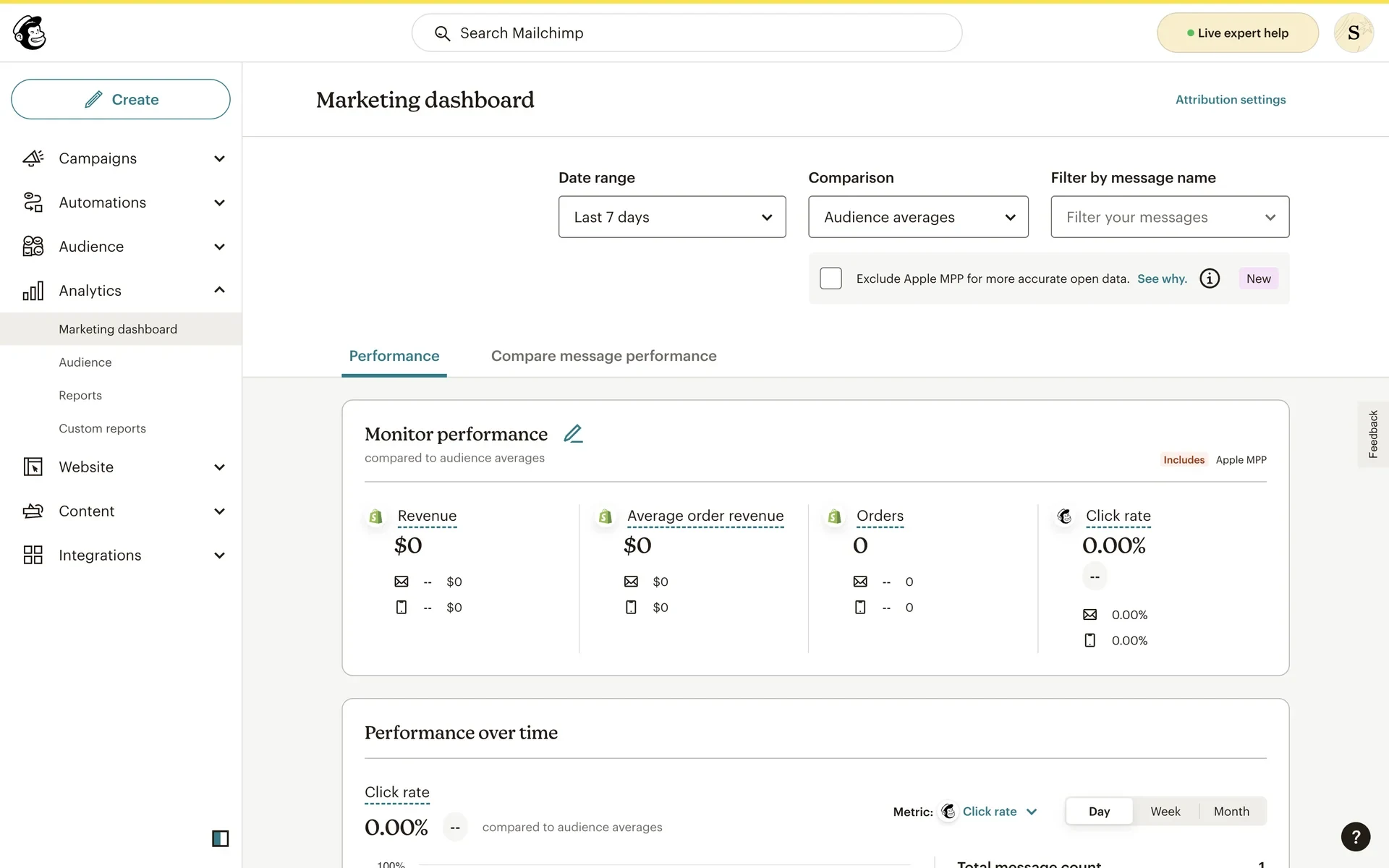 Audience averages: Compare your performance to typical results for your audience size