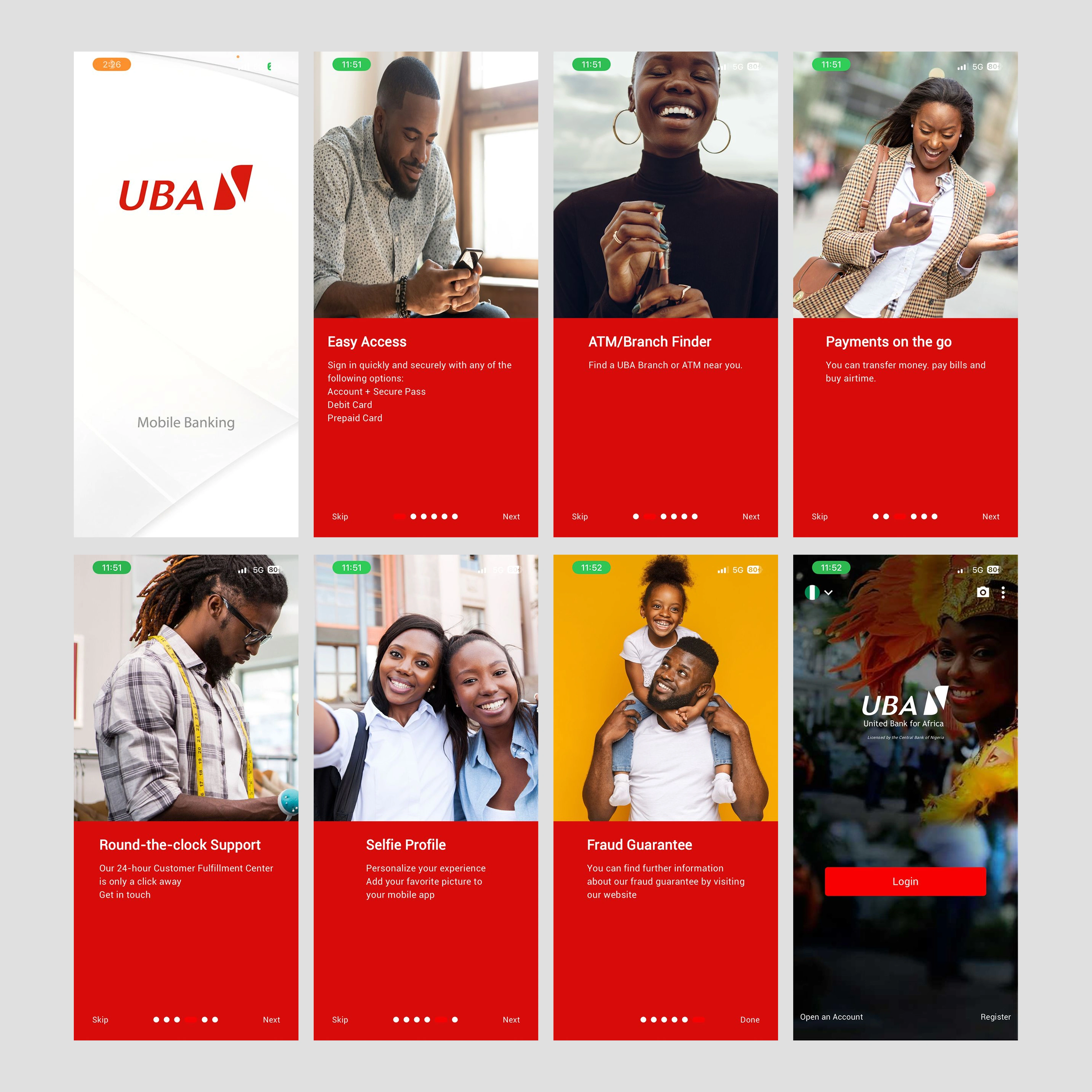 The final outcome is a more focused and engaging onboarding experience that feels modern, approachable, and aligned with UBA’s brand. The redesigned flow helps users quickly understand what the app offers, builds trust from the first interaction, and creates a stronger foundation for continued product use.