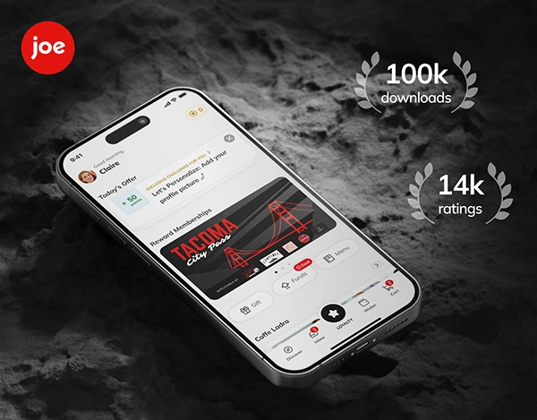Joe Coffee mobile app for seamless ordering, loyalty rewards, and personalized café experiences.