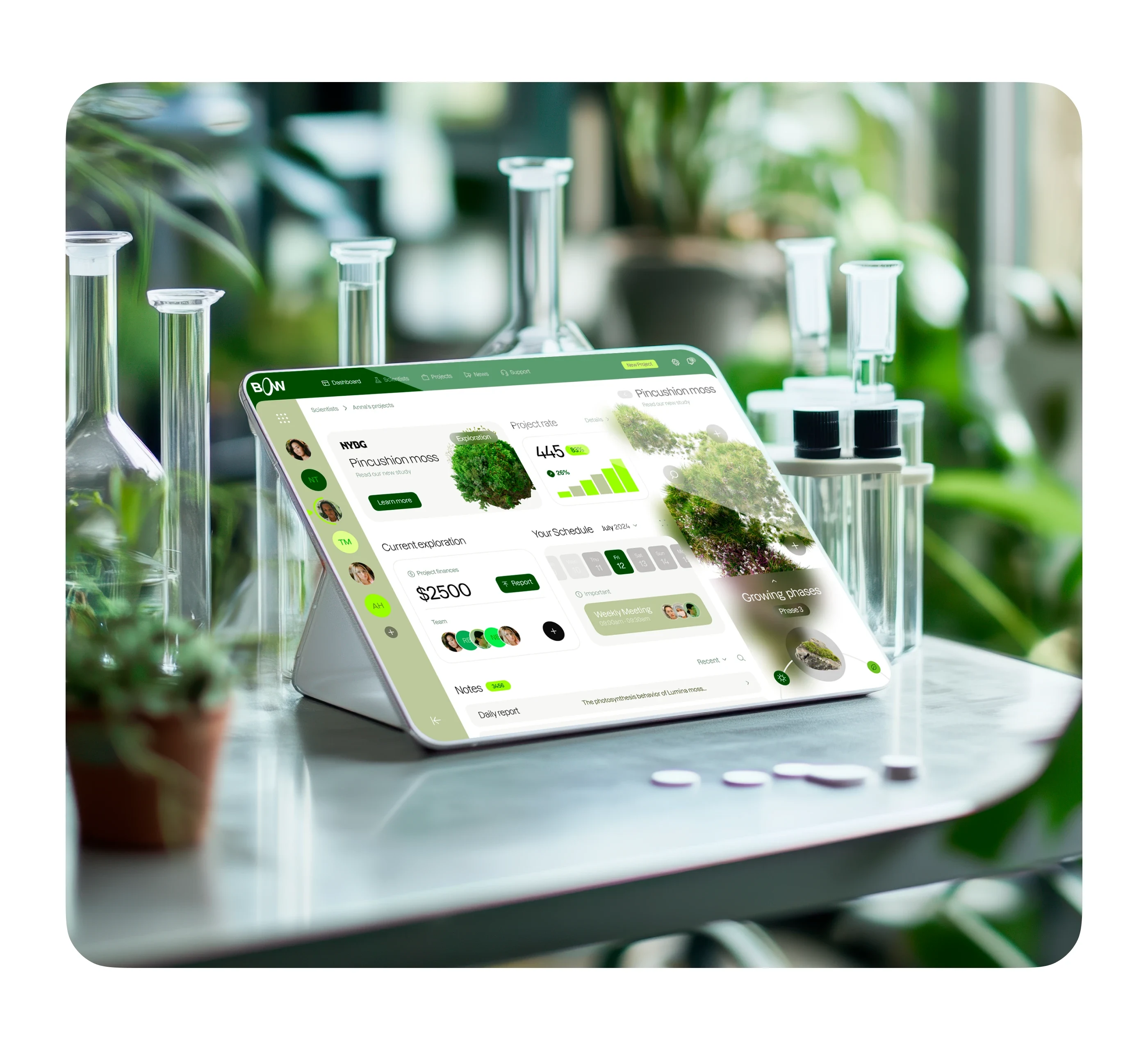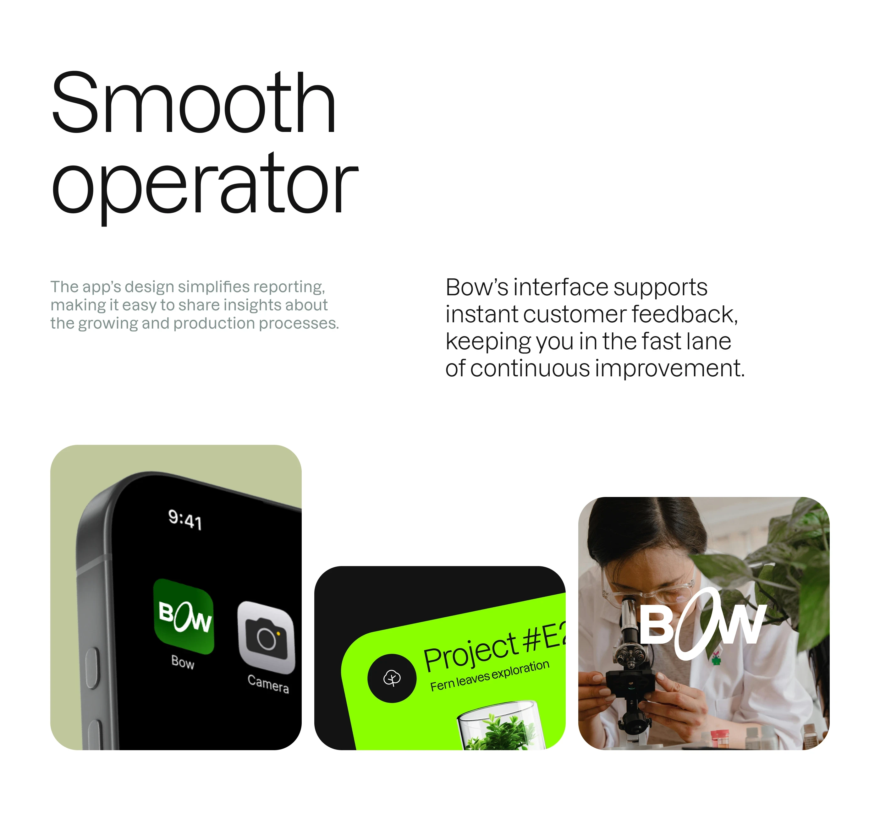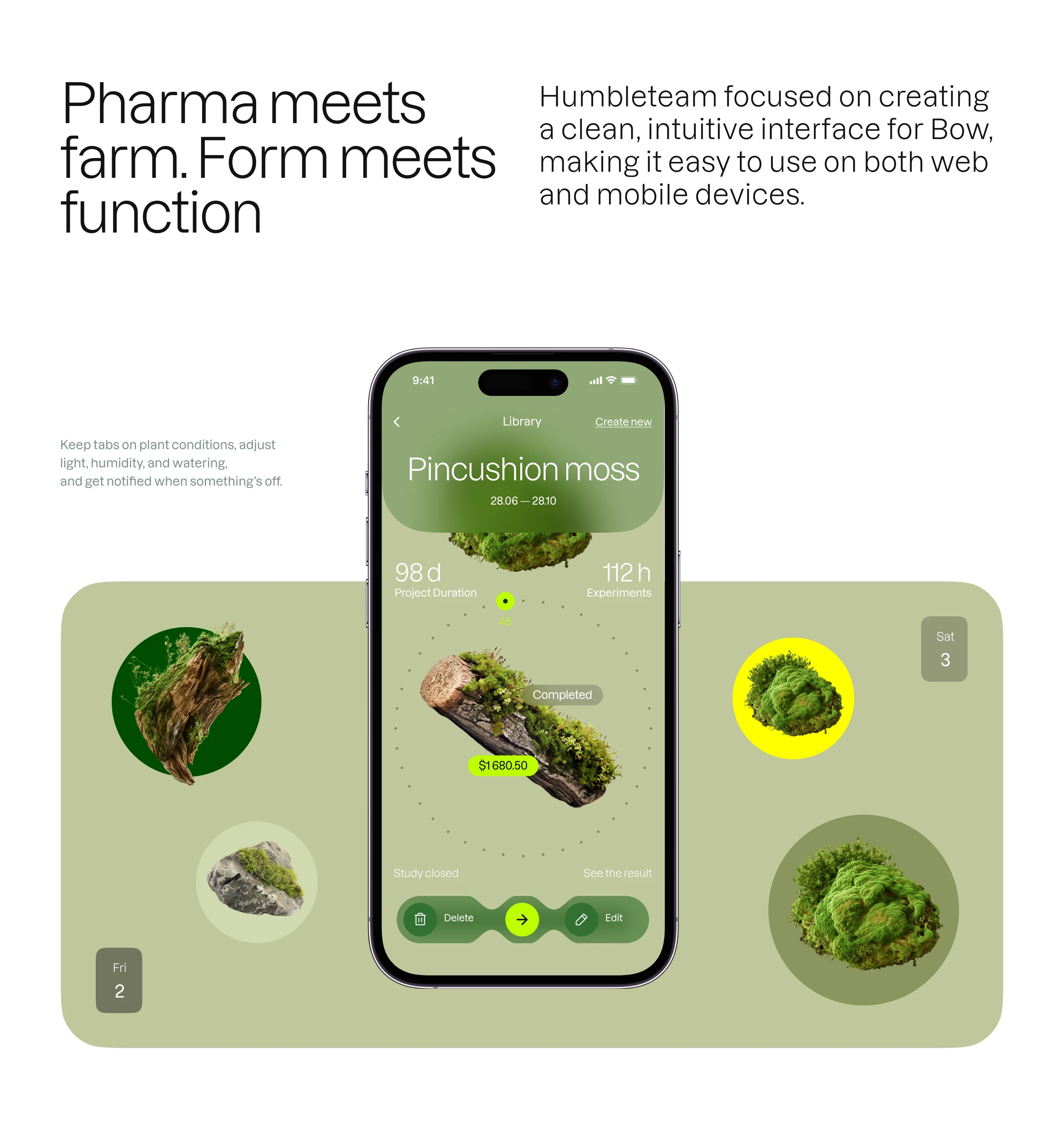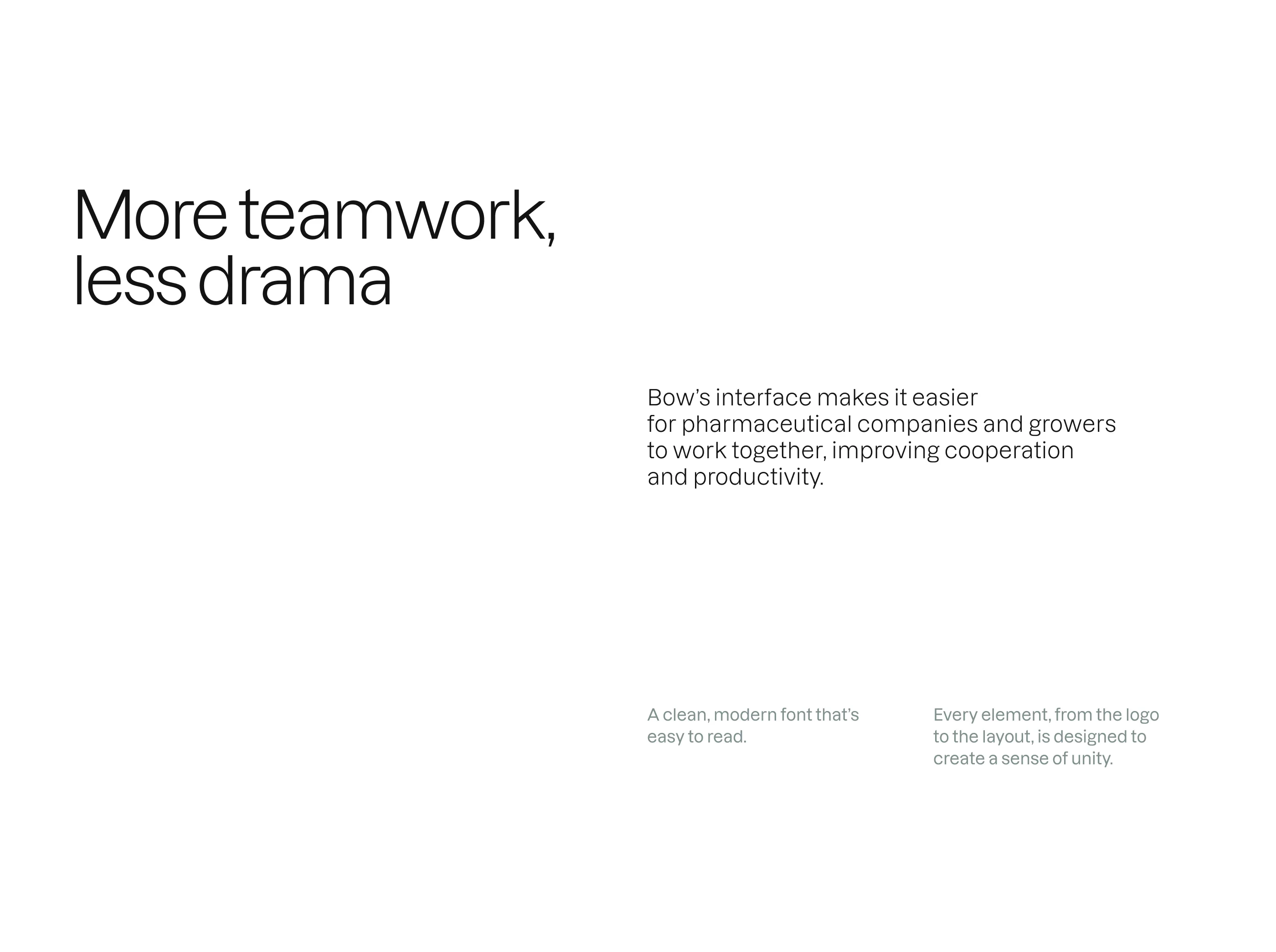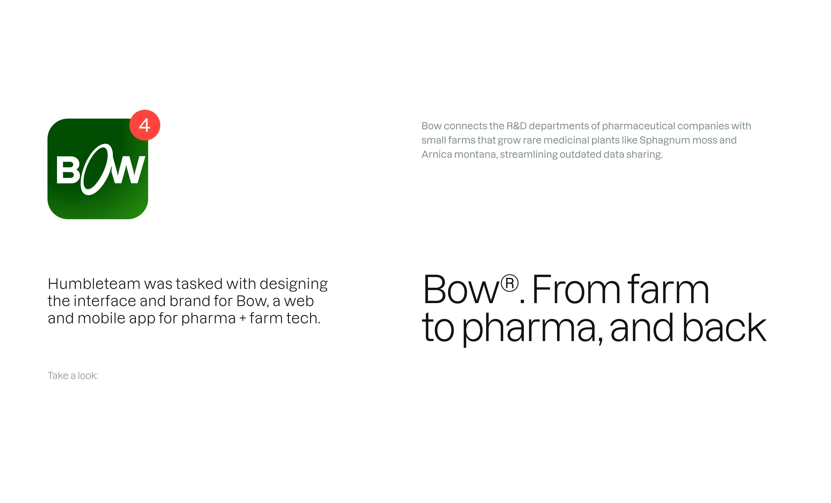 I was tasked with designing the interface and brand for Bow, a web and mobile app for pharma + farm tech.