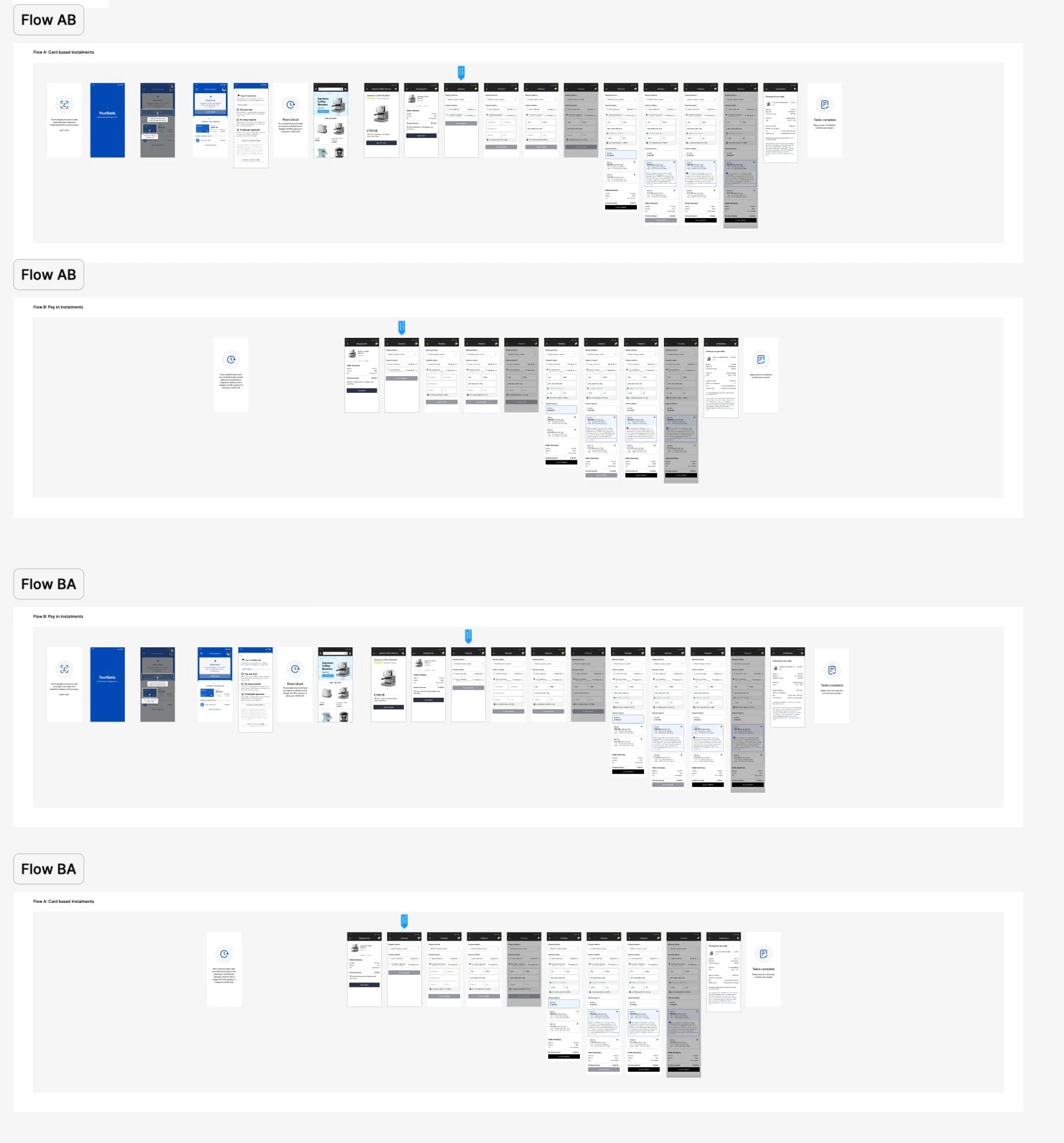 Created four versions of the critical instalment offer screen, each presenting the option in a different way within an identical coffee machine purchase flow.