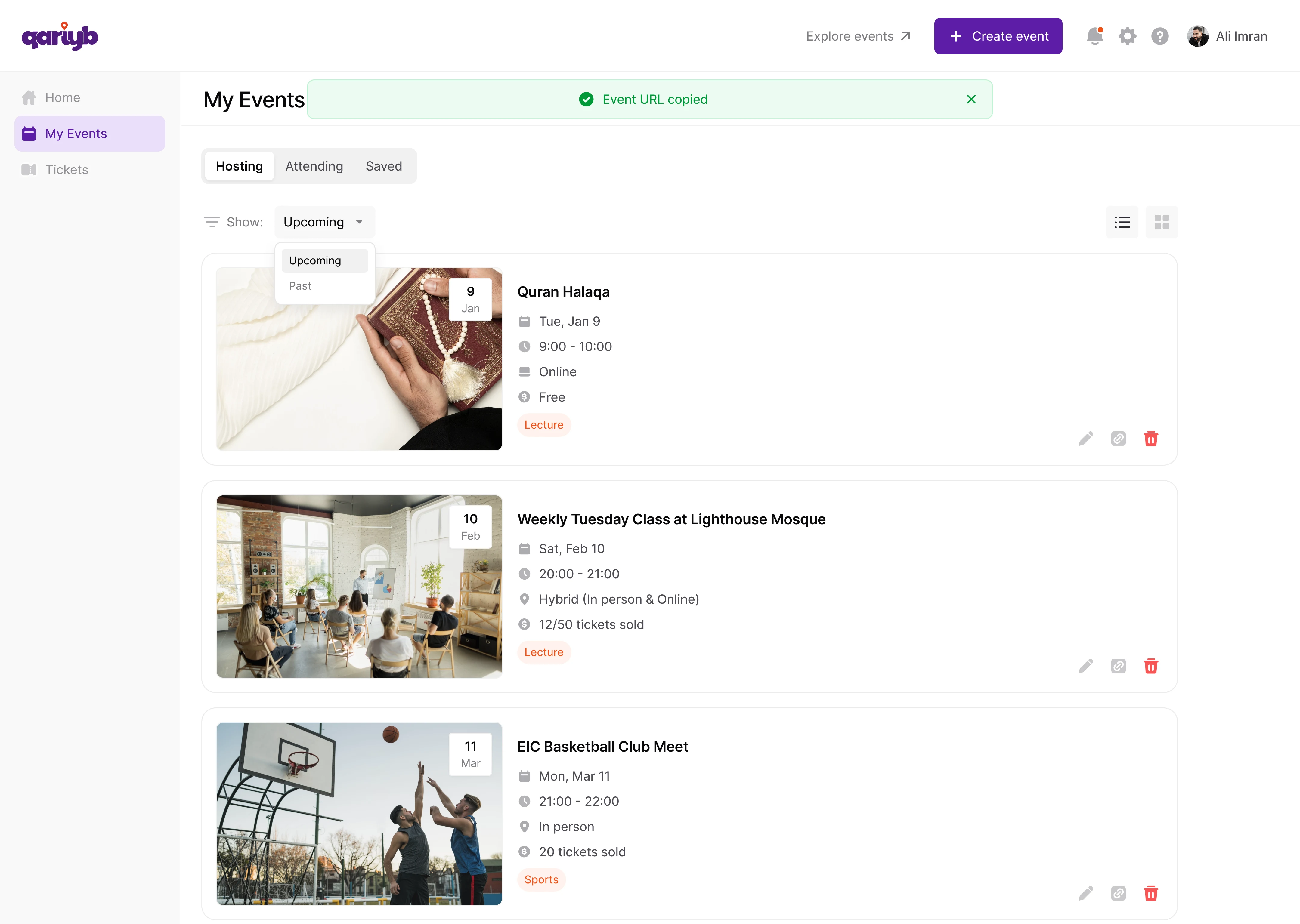 Qariyb is an event management platform for the Muslim community. Its aim is to provide a centralized space for Muslims to search for, host, and promote events within the community. The platform benefits event organizers, enthusiasts, and local businesses by streamlining event management and connecting users to a wider network of Muslims, both locally and globally.