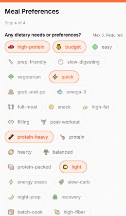 Built a Glide AI meal planner that adapts to preferences, schedules, and calorie goals, with smart scaling and a real-time nutrition chatbot.