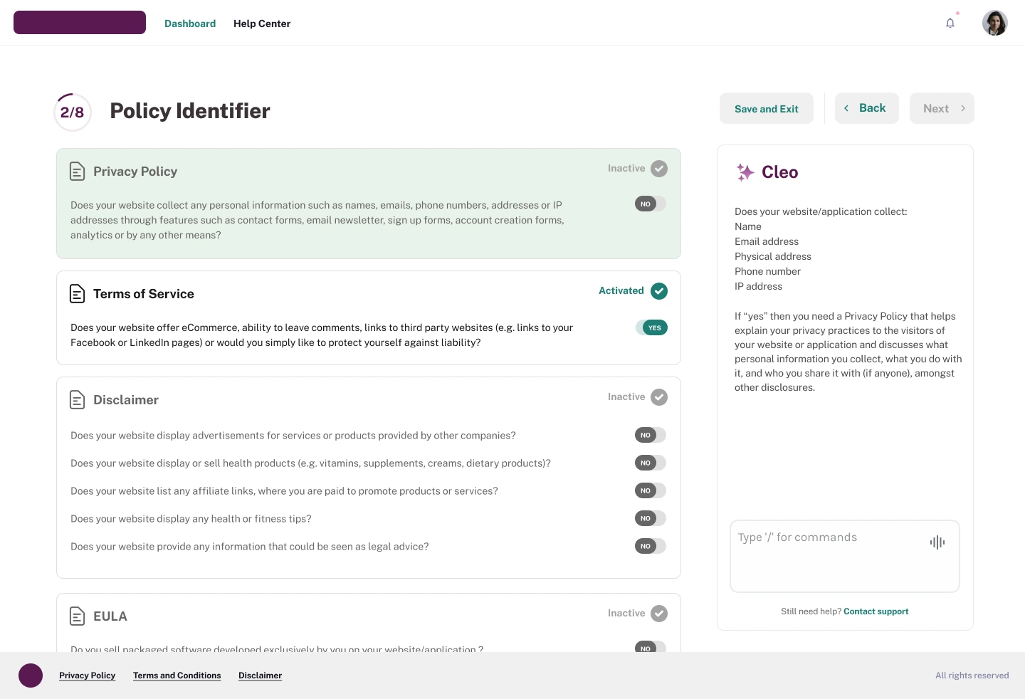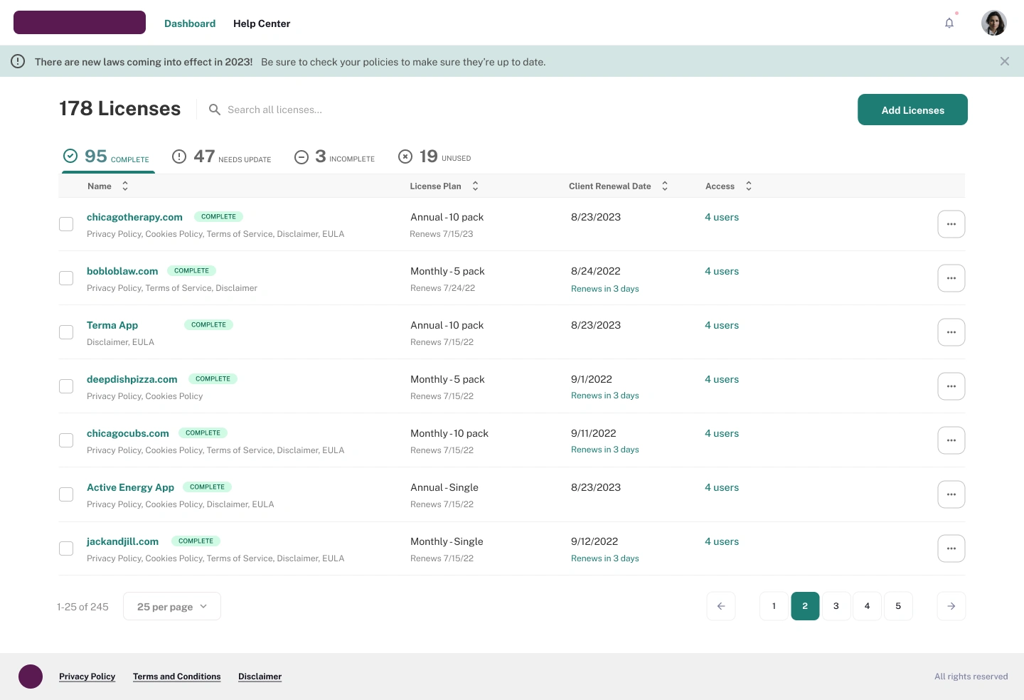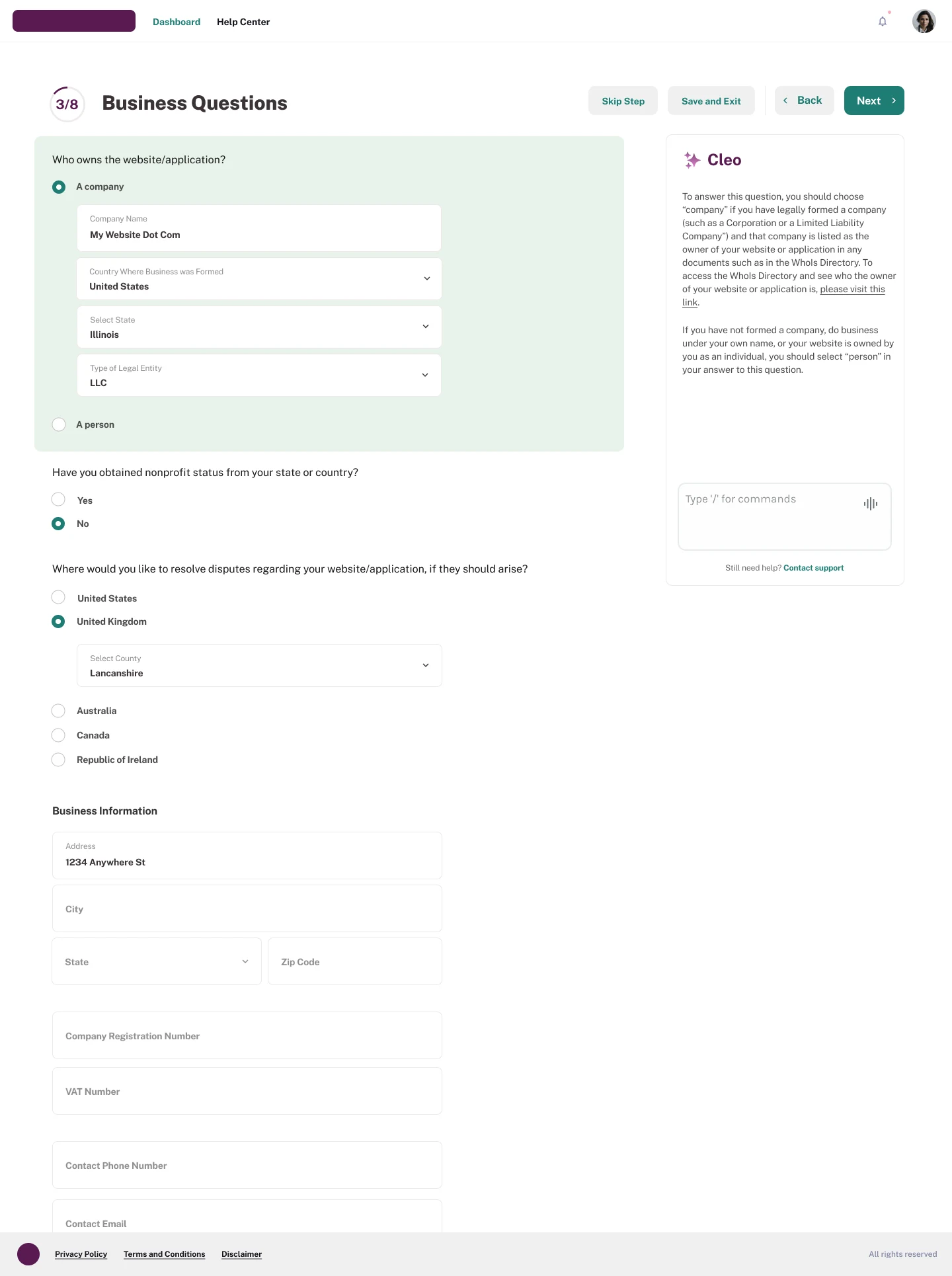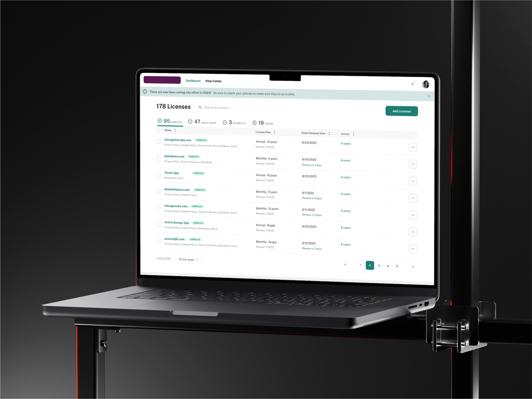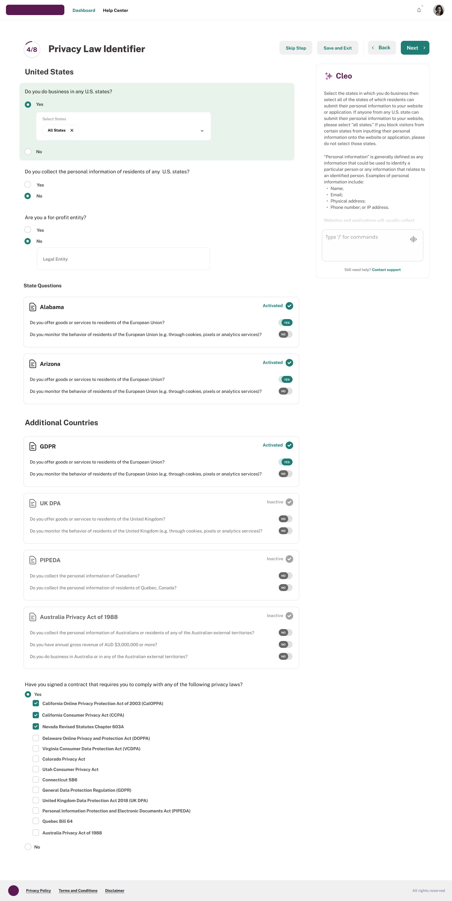 A web platform that helps companies identify what privacy laws apply to them, generate the disclosures required under these laws, and receive updates whenever these laws change (or when new ones go into effect).