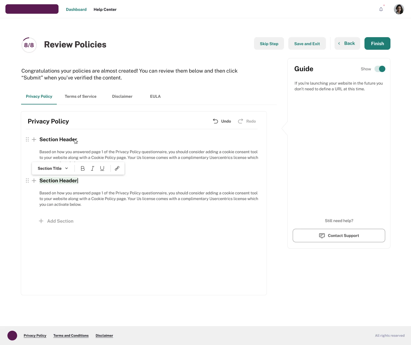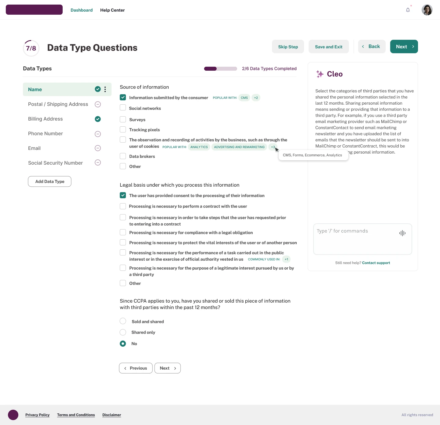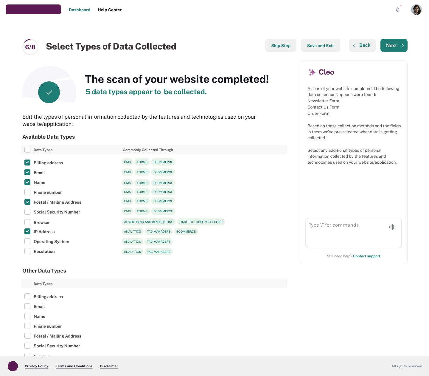 SMB platform with complex AI aided workflows to identify applicable privacy laws, generate required disclosures, and manage updates as laws change.