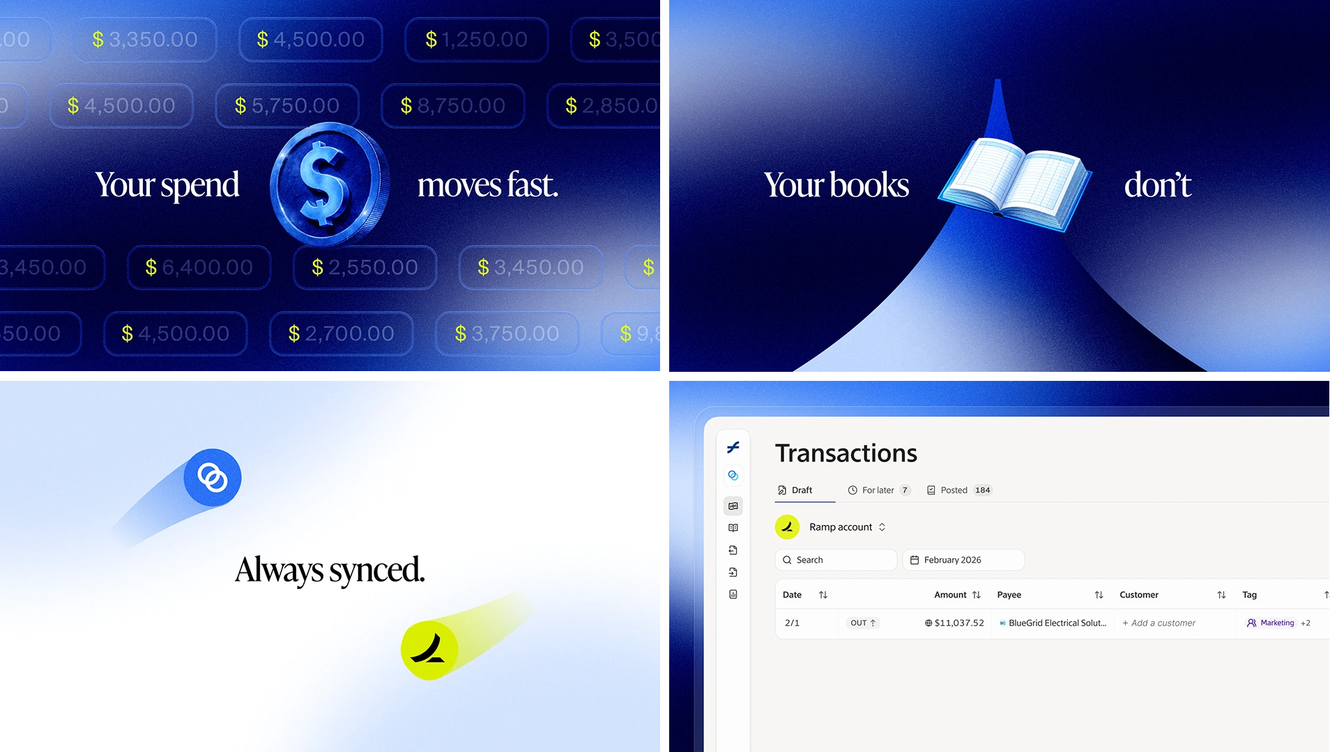 A 60s motion piece announcing the Flow and Ramp integration, using clean UI animation and seamless transitions to clearly show real time expense syncing.