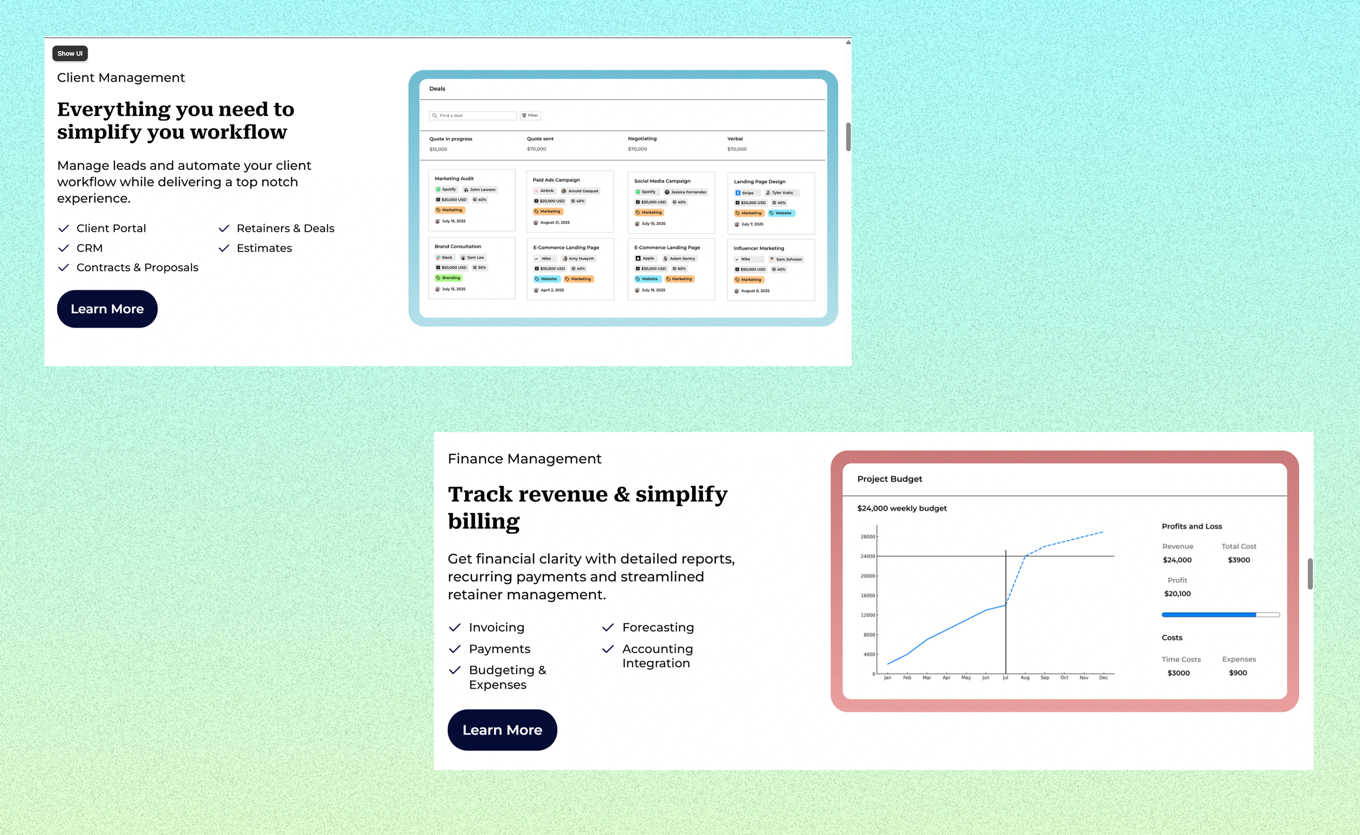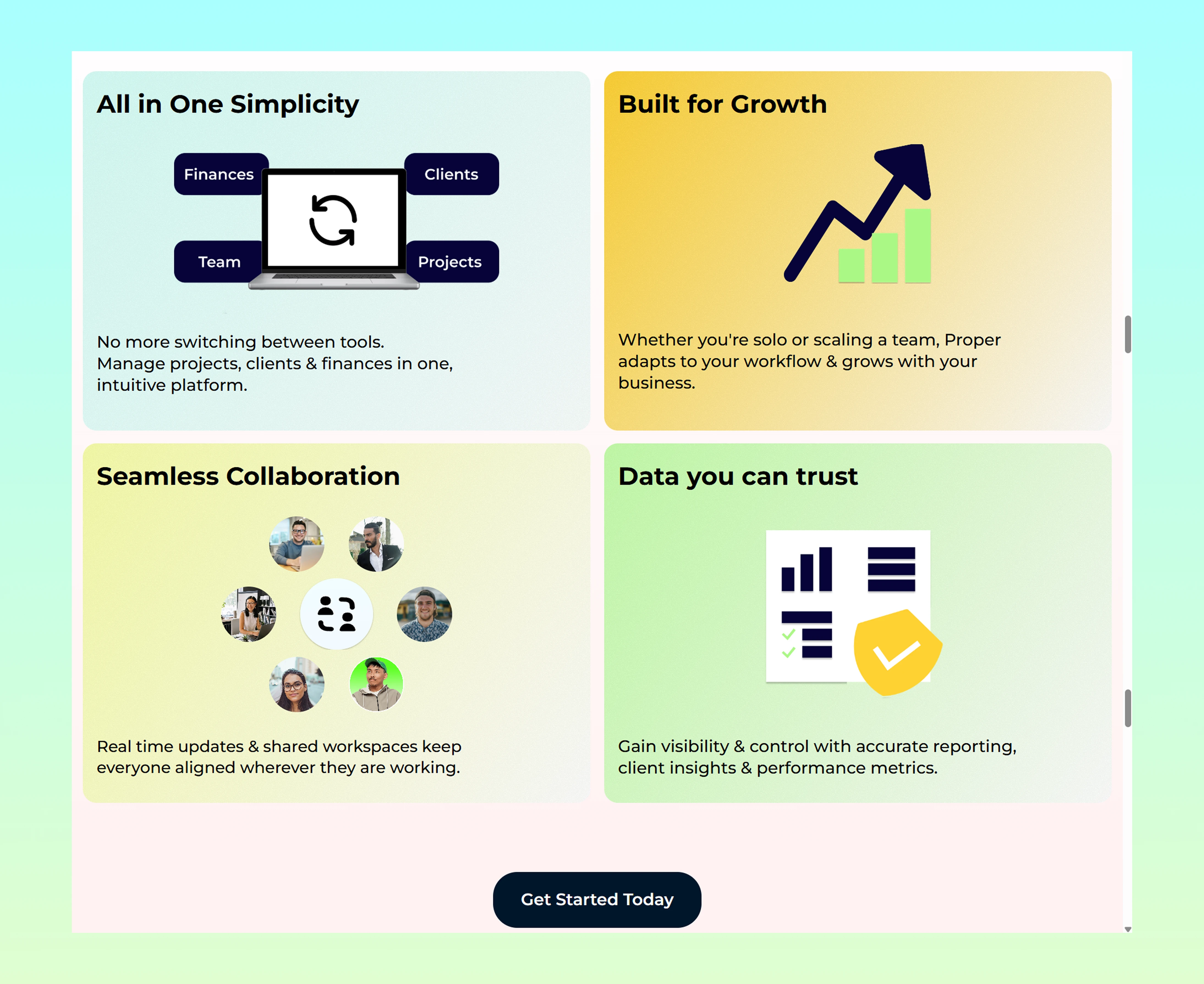 If this was a real client project, I would expand this website to include specific pages for each feature, a blog, case study pages and much more.