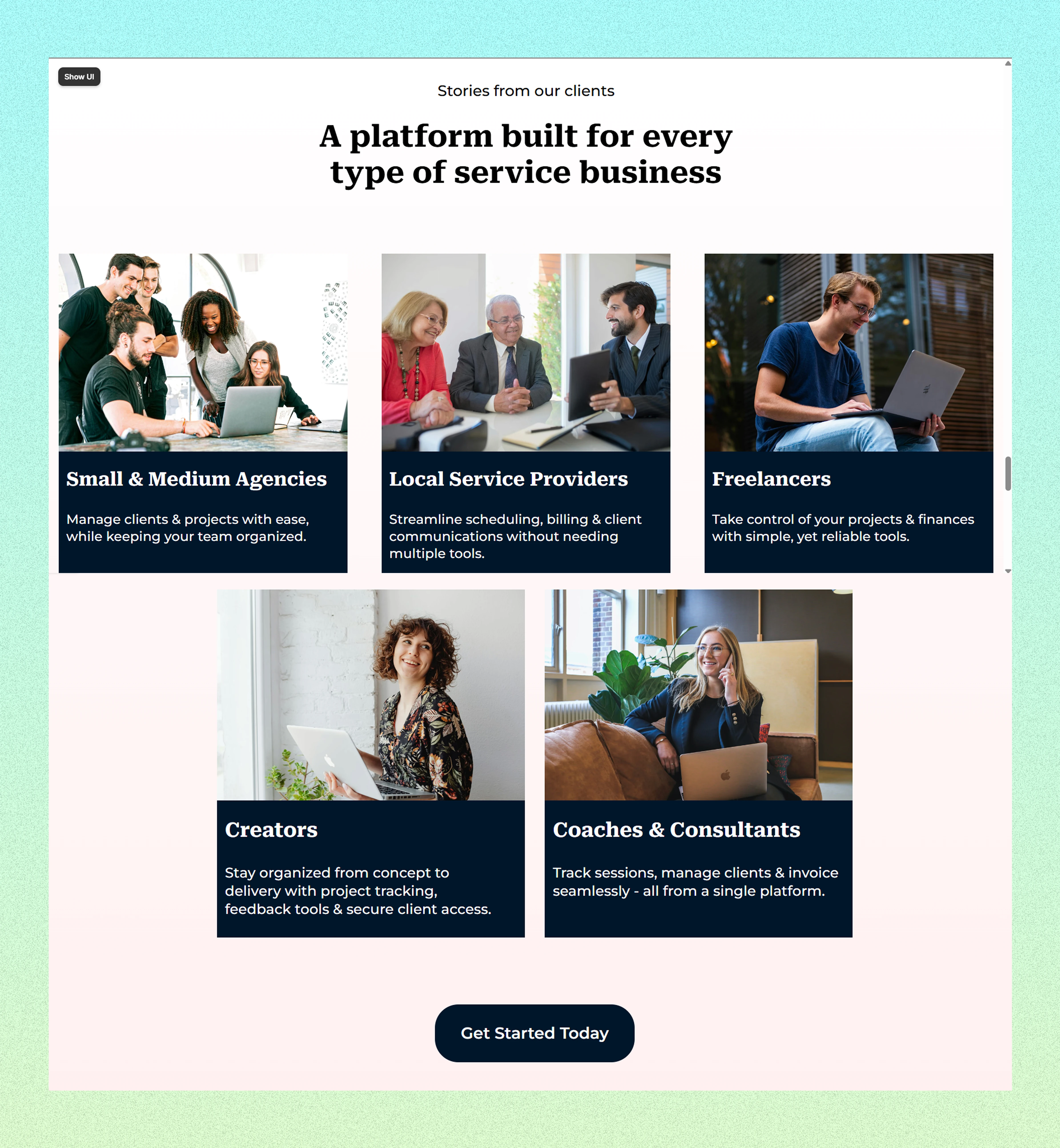 The website will be optimized for conversions, SEO success, high performance and also include integrations of the client's choice.