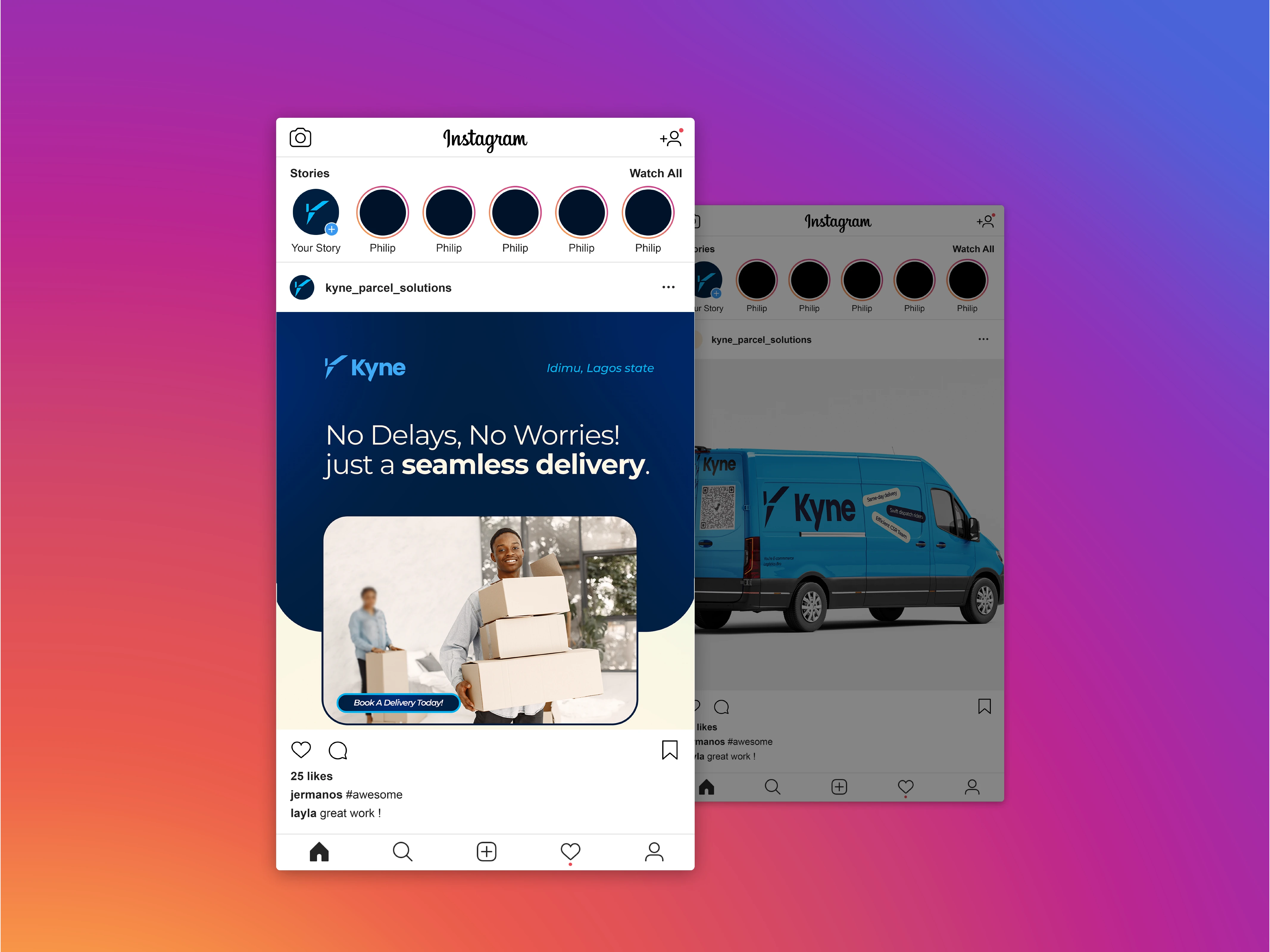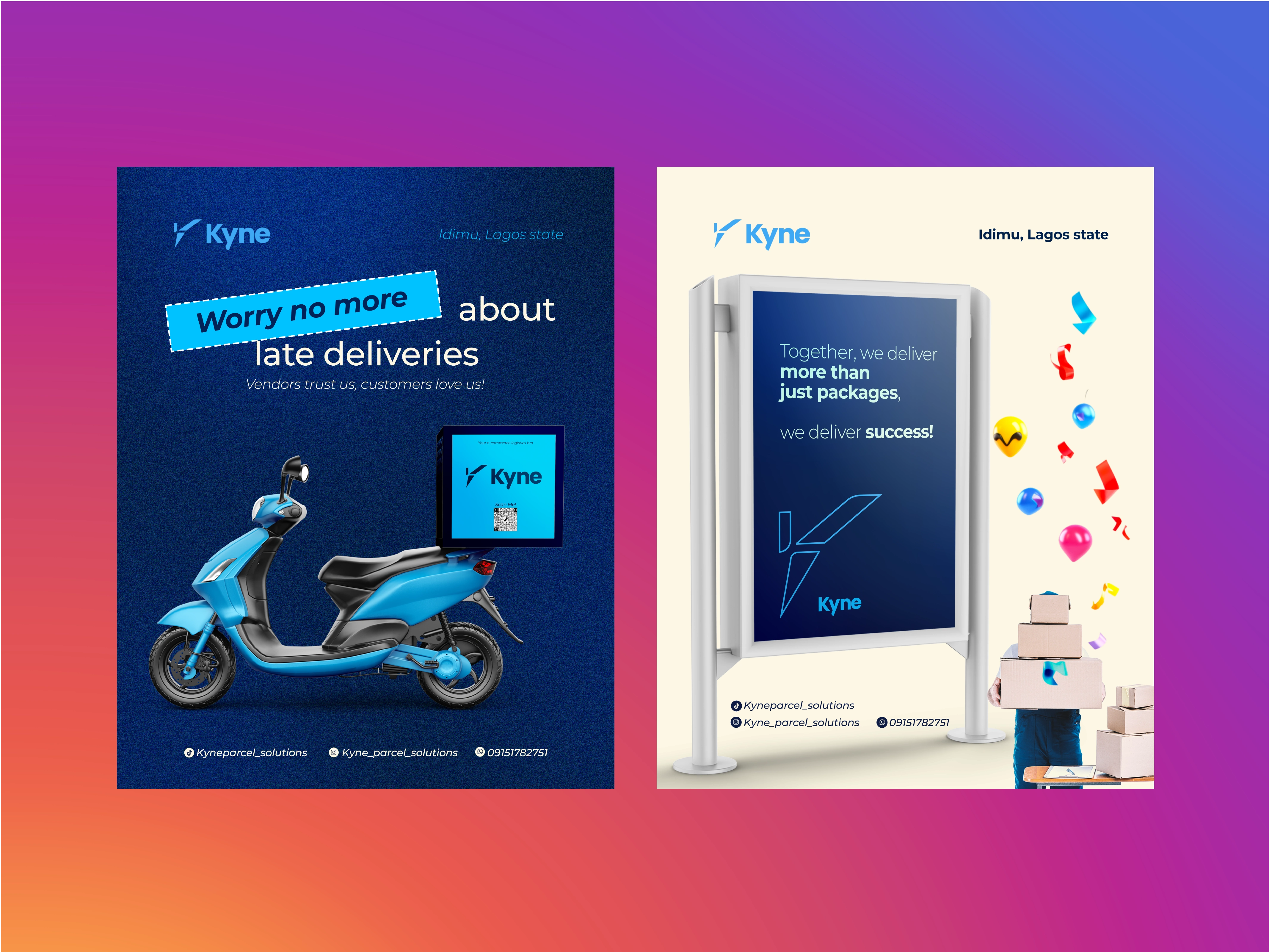 I built Kyne’s bold brand identity, infusing speed & reliability into its visuals, crafted to embody Lagos, Nigeria-wide daily deliveries with trust & style.
