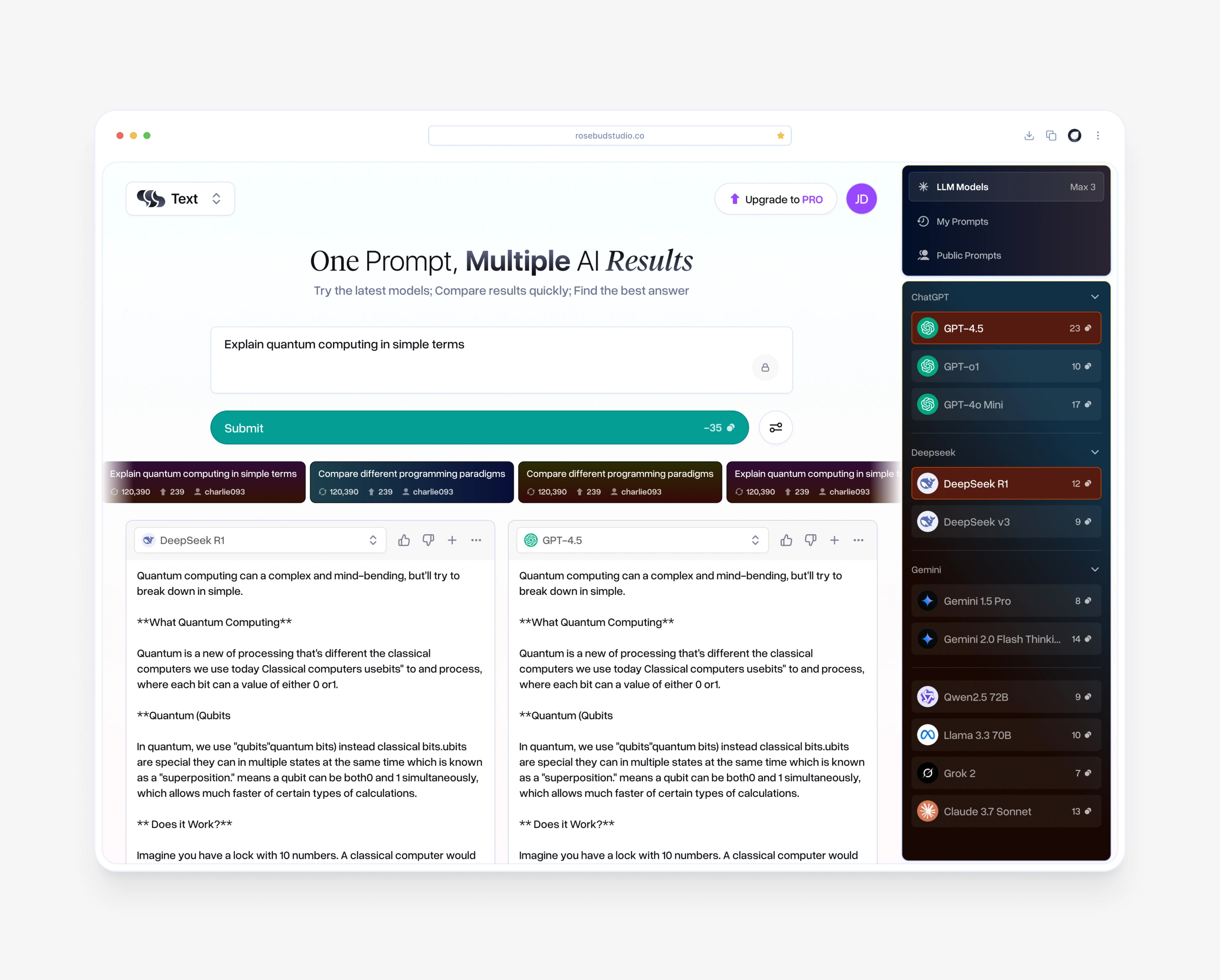 The goal was to make model comparison simple and fast, so users could evaluate outputs without jumping between different tools or tabs.