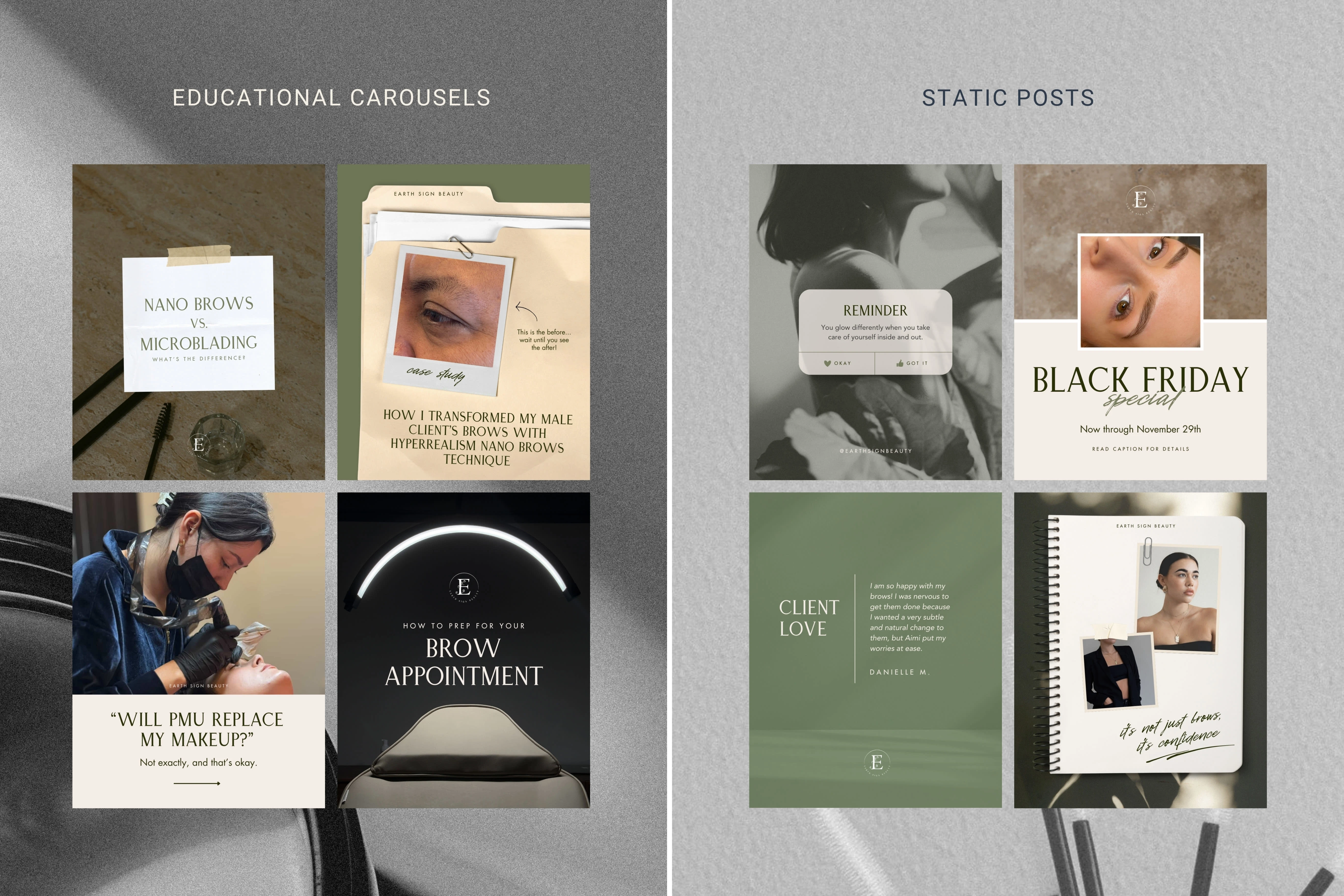 Uphold the brand's signature tone: calm, refined, and confidence-driven to ensure every post communicates Earth Sign Beauty's values of artistry, care, and connection.