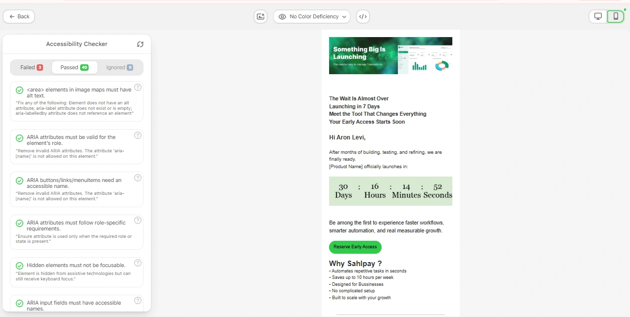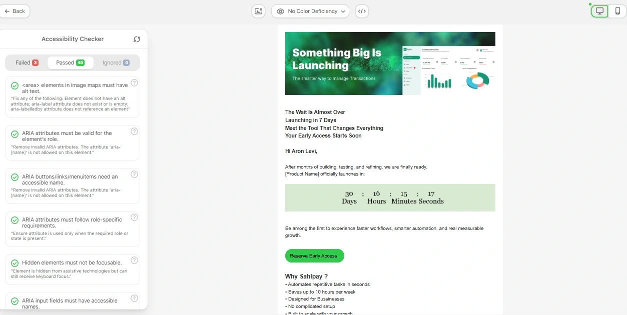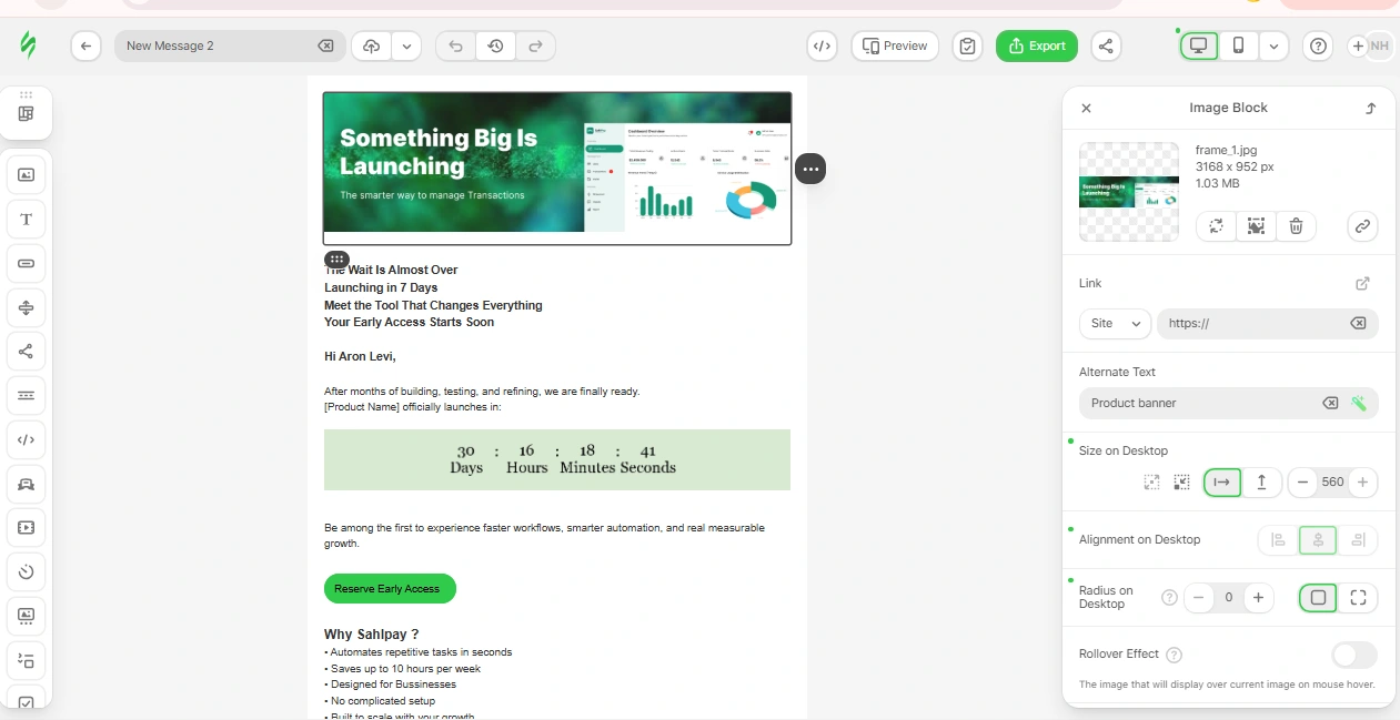 Designed a product launch email for Sahlpay using Stripo, highlighting platform value and urgency with a countdown timer to drive user action.