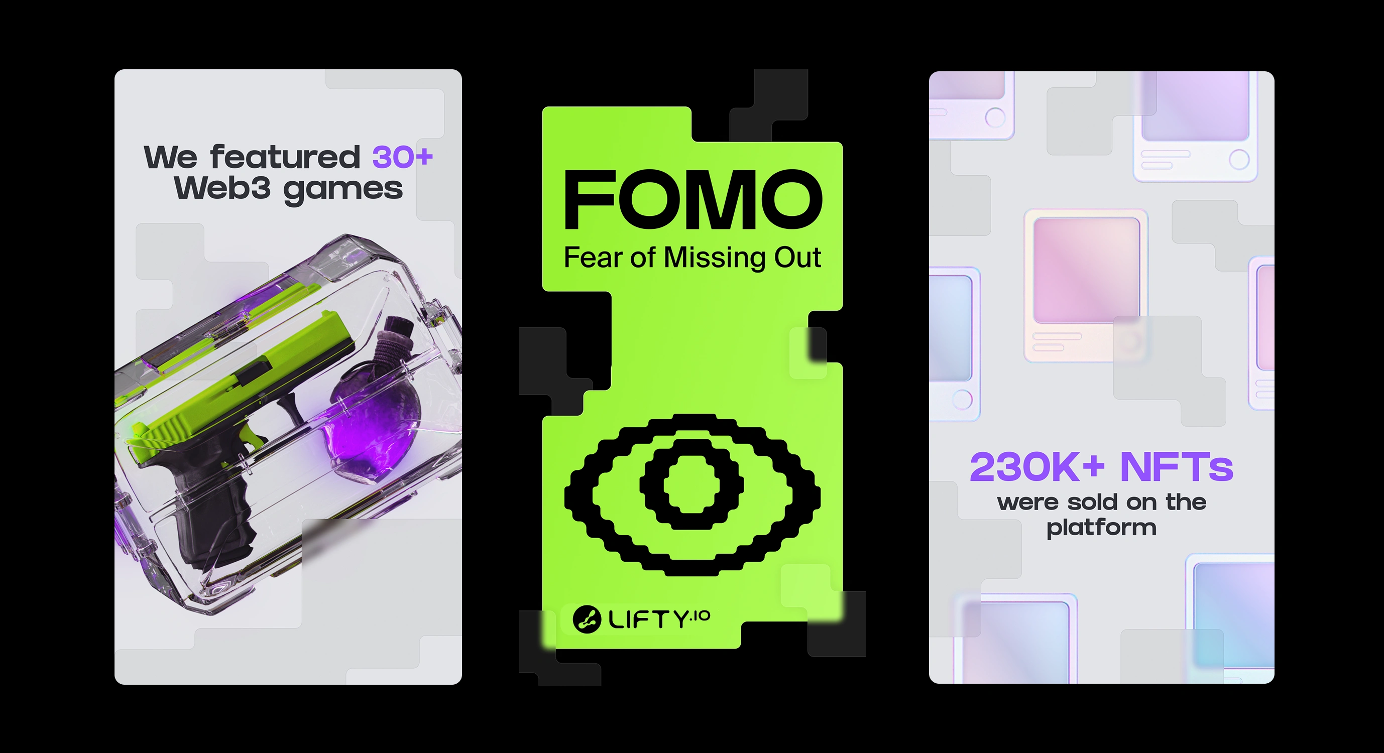 Liquidifty pivoted from an NFT marketplace to a Web3 gaming platform. To keep brand recognition, we refreshed the identity instead of a full rebrand – keeping the [L] emblem, adding playful textures, and shortening the name to Lifty. I led the design team in creating a new brandbook with vibrant colors, pixel patterns, gamer-friendly icons, and 3D assets. We rolled out the new system across all touchpoints: social media, website, merch, video, in-game badges, and more.